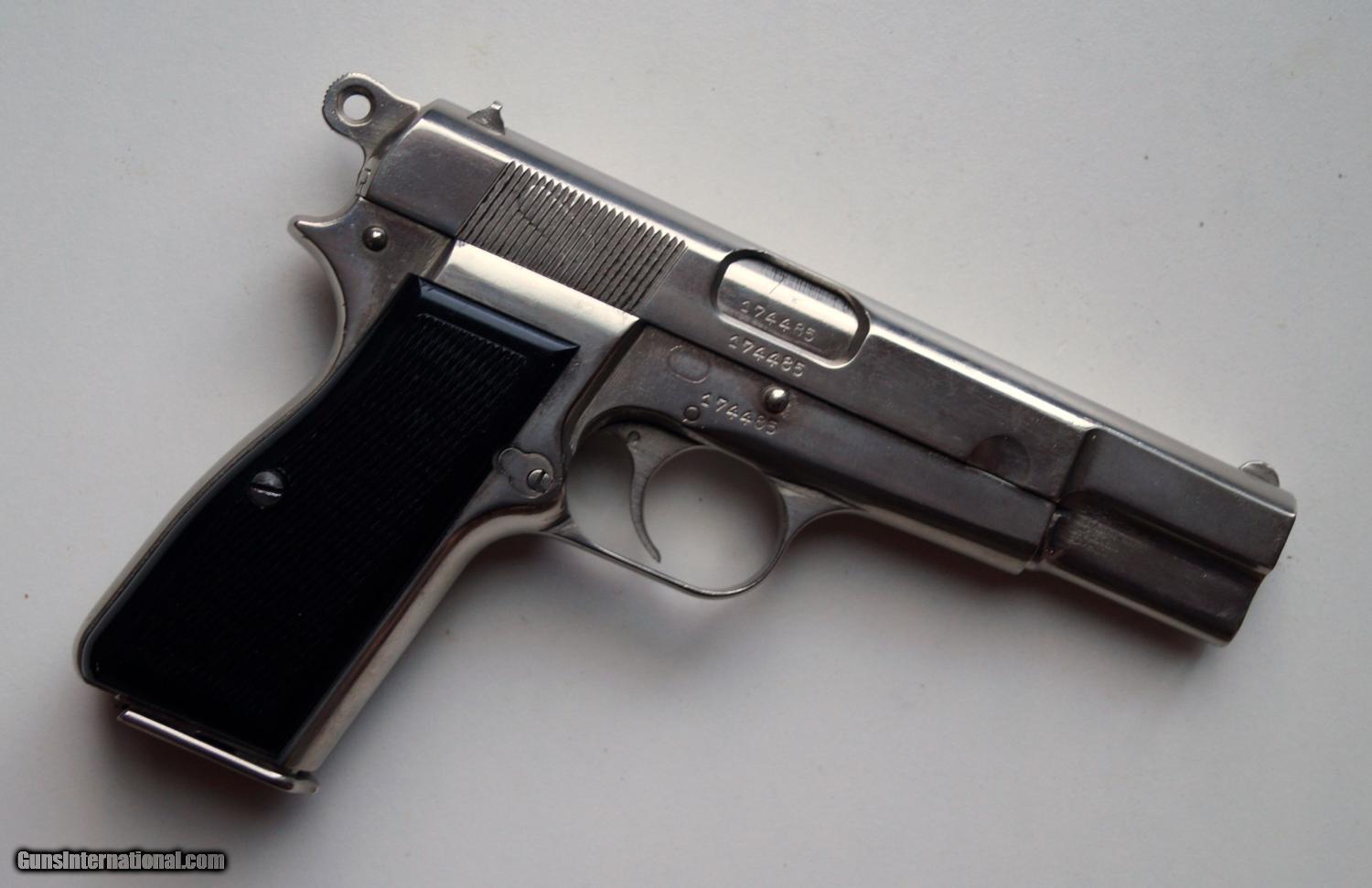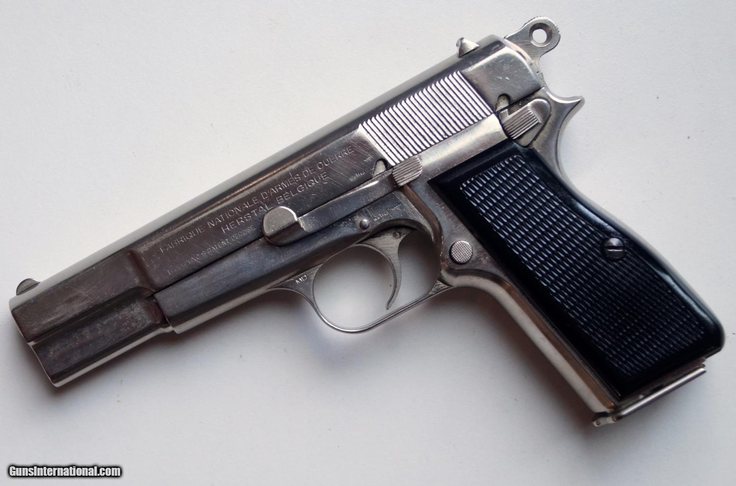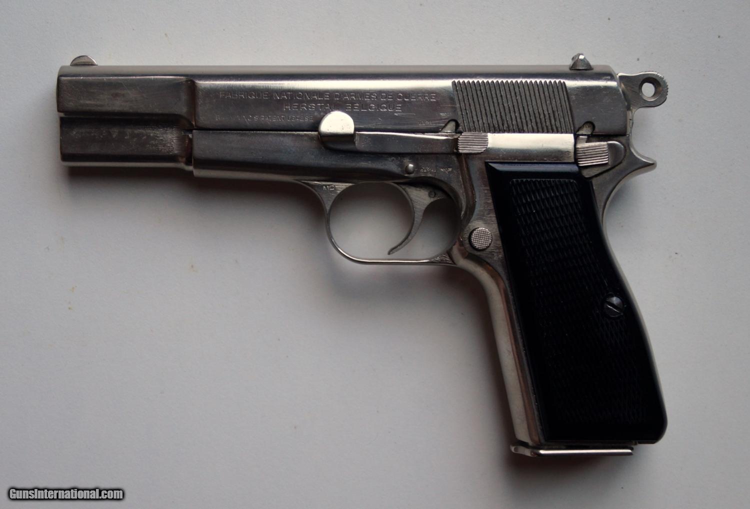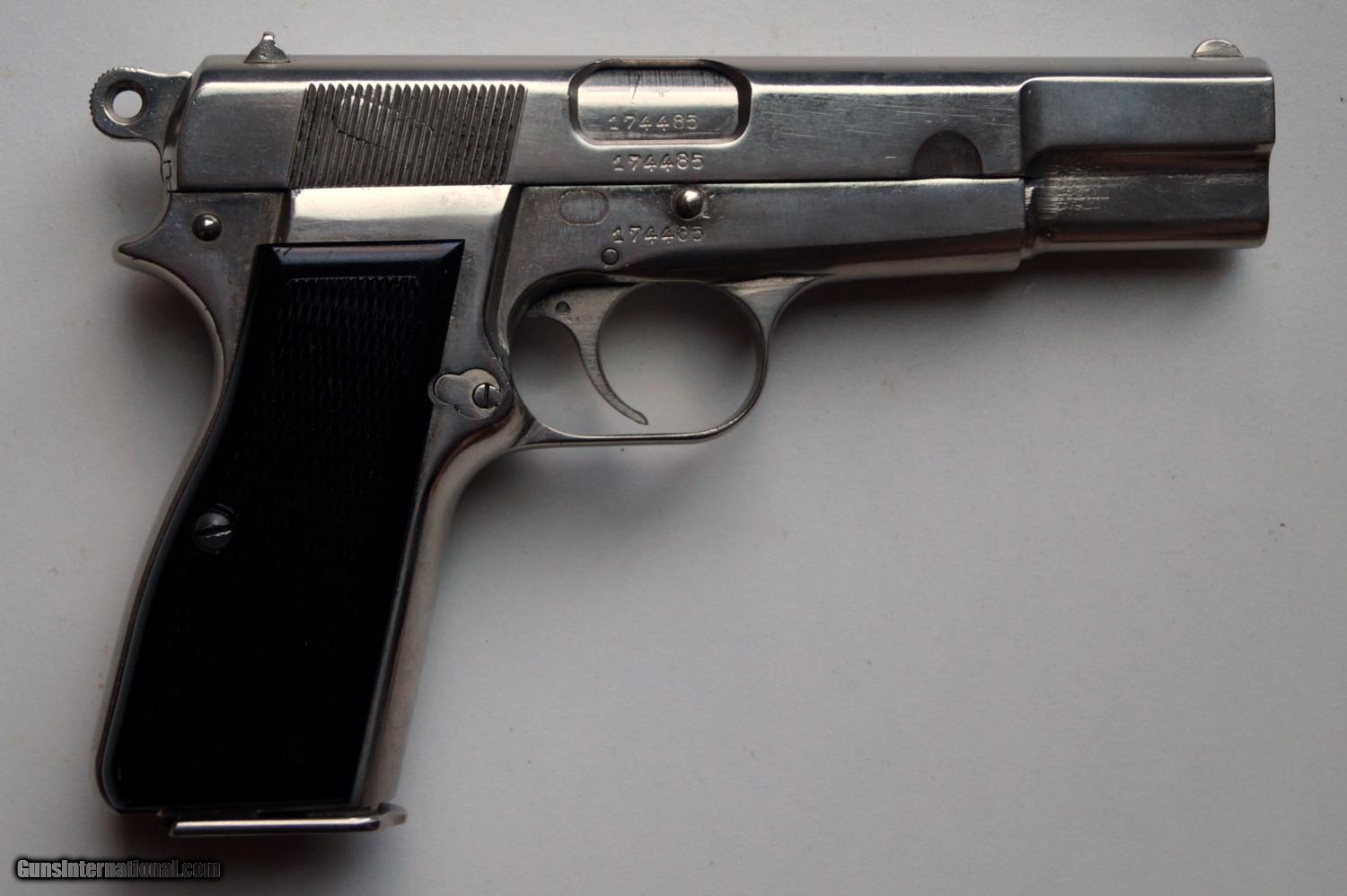 Description: THIS IS A BROWNING (FABRIQUE NATIONALE) NAZI MARKED P35 HI POWER, 9MM. THE PISTOL IS IN VERY GOOD CONDITION, ALL ORIGINAL, MUMBER MATCHING, VERY GOOD BORE AND GRIPS, MECHANICALLY CORRECT AND TIGHT. A VERY NICE ORIGINAL NAZI MARKED BROWNING HI POWER. NOTE: THE PISTOL HAS BEEN PROFESSIONALLY NICKEL PLATED AT SOME POINT. ALL PROOF MARKS ARE VIVID. SOLD Curio/Relic: Yes |