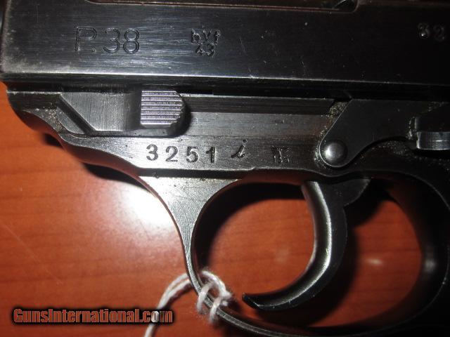 Description: BYF P38 DATE 1943 ALL MATCHING NUMBERS. CALIBER 9MM ALL FACTORY FINISH NO ALTERATIONS, BORE EXCELLENT MECHANICS PERFECT. NEED MORE INFORMATION CALL 716-941-3946 SOLD Curio/Relic: Yes |