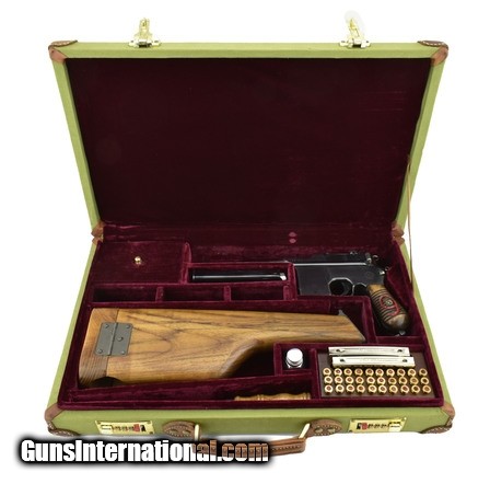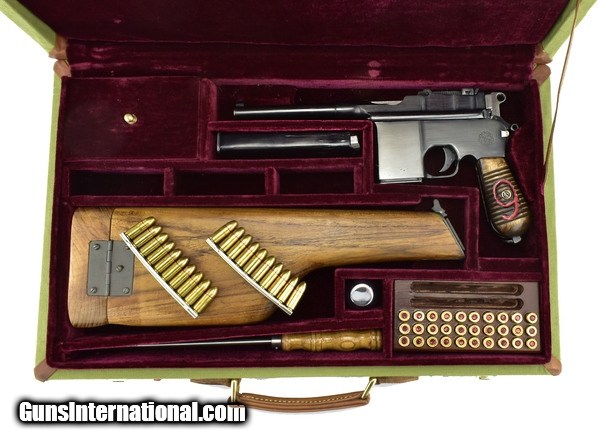 Description: Chinese “Red Nine” Broomhandle 9mm caliber pistol. Detachable magazine red nine broomhandle cased set. Has a buttstock, extra magazine and accessories. A great set, in excellent condition.