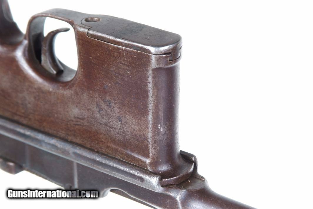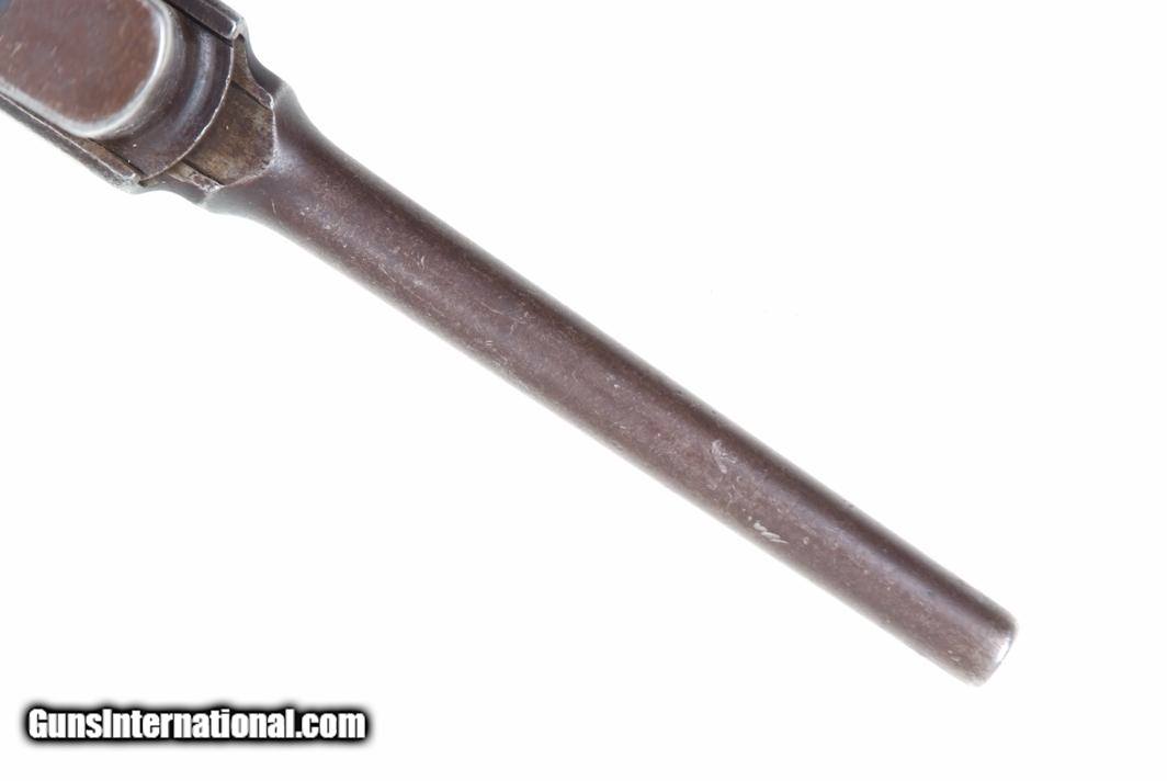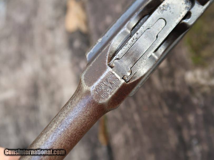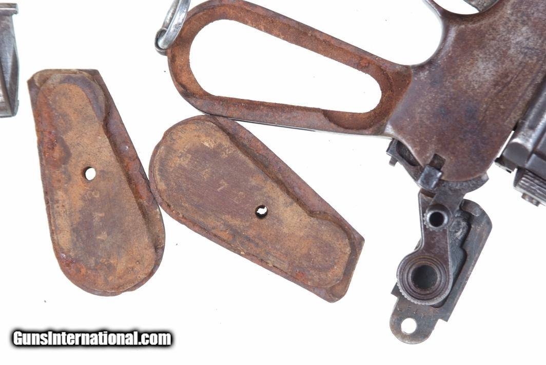 VG with browning of the barrel and frame, a little more blue remaining on the barrel extension. Several components including the bolt, safety, and subframe have been re-dipped and barrel extension lug shows an old repair. Comparable condition original and matching grips. Dark bore with shallow rifling. Perfect manual mechanics. An interesting and largely matching Taku Naval Flatside with an interesting history as conveyed by the accompanying documentation.