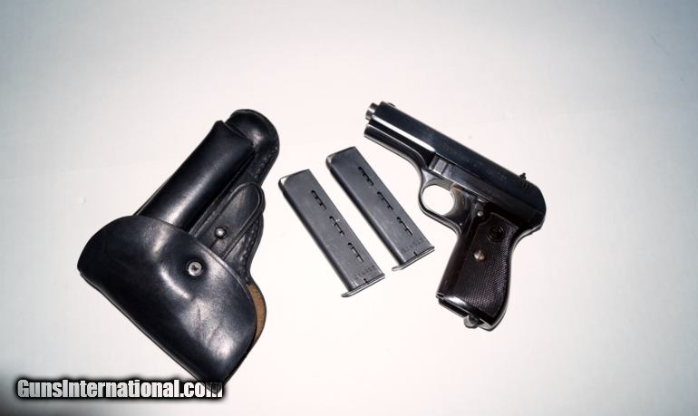 Description: THIS IS A CZ 27 (CZECH GOHMISCHE) NAZI MARKED RIG,7.65MM. THE GUN IS IN EXCELLENT CONDITION,HIGH POLISHED MODEL, ALL ORIGINAL,NUMBER MATCHING (BOTH ORIGINAL MAGAZINES ARE NUMBERED TO THE GUN),VERY GOOD BORE AND GRIPS,MECHANICALLY CORRECT AND TIGHT.THE RIG CONSISTS OF THE CZ 27 PISTOL, 2 ORIGINAL NUMBER MATCHING MAGAZINES AND 1 ORIGINAL NAZI MARKED 1942 DATED HOLSTER. THEY DON'T COME BETTER THAN THIS. SOLD Curio/Relic: Yes |