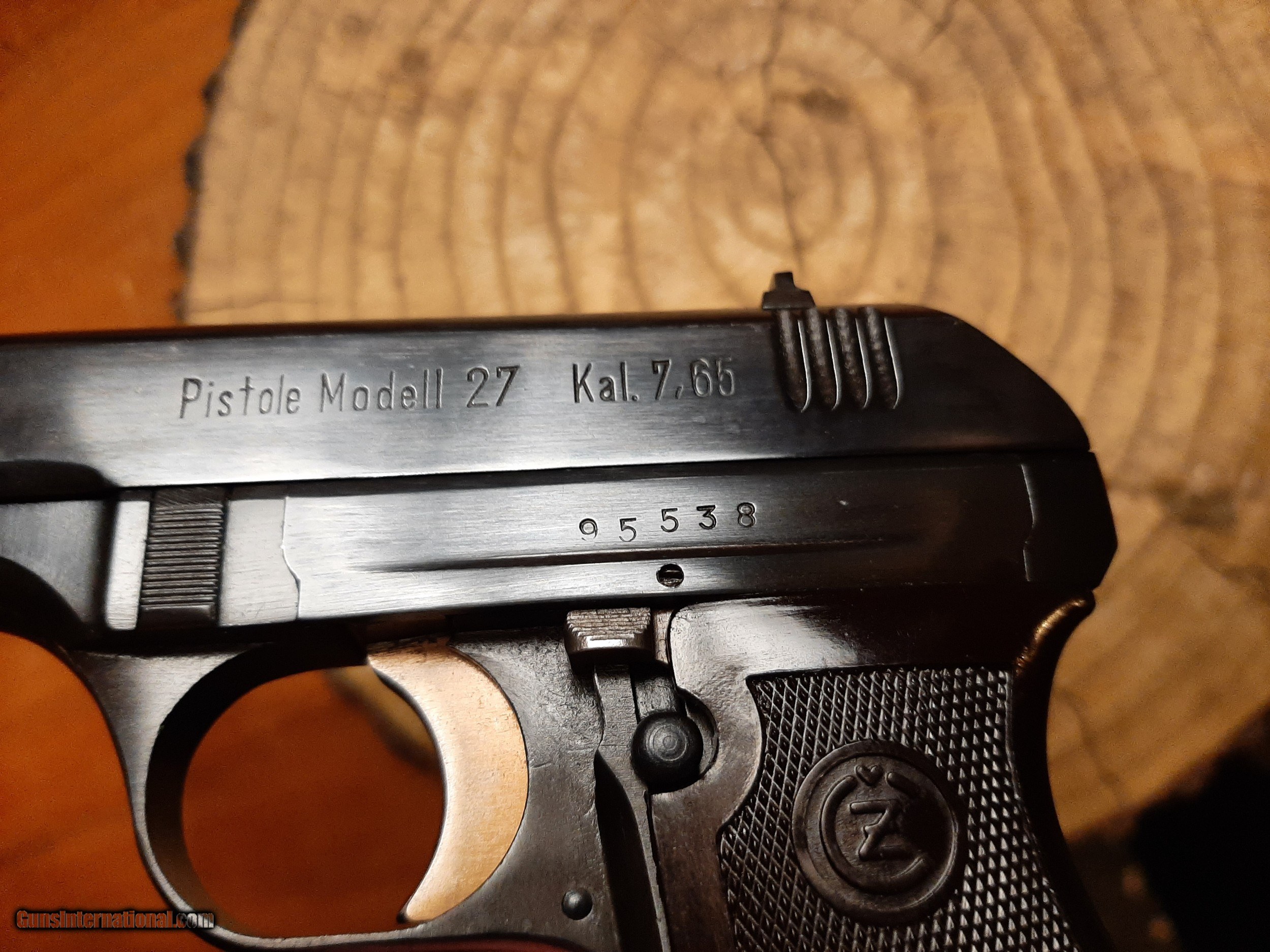 Description: Stunning Minty example of a Nazi issue CZ27. This gun looks absolutely unfired! The grips are perfect with no chips, cracks, etc. The bluing comes in at 99.9% Straw coloring on the trigger is intact and perfect. Harbors the correct CZ 27 magazine The bore is perfect and is like looking down a rifled mirror. There are no import markings on this piece and all serial numbers are matching. If you are a perfectionist this is the piece for you. In order to complete the transaction, we will need a copy of your FFL or C&R for shipping purposes.For payment I will accept personal checks, money orders, certified check or cashiers’ check, all major credit cards. Credit cards are acceptable with a 4% up-charge for processing. Personal checks require 8 business days to clear the bank, all other forms of payment receive same day as received shipment. You are responsible for any state and local laws. By purchase of this item, you release the seller from any liability that may arise due to use or misuse of this firearm. Thanks for looking and if you have any questions give me a call or text 931-303-6739. Thank you for your time and attention to our products. SOLD Curio/Relic: Yes Handgun Caliber: .32 ACP (7.65x17mm Browning SR) Manufacturer: CZ (Czech) Model: 27 Bore: .32 acp Condition: Mint Metal Condition: Perfect Bore Condition: Outstanding Action: Perfect Finish: Blued Manufacture Date: WWII |
