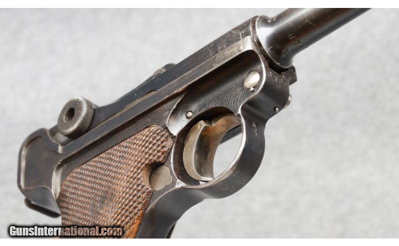 Description: SOLD Manufacturer: 1917 Caliber Info: 9mm Metal Condition: Scratches and wear from handling, use, and holster wear Wood Condition: Right grip panel exhibits further wear from exposure in the holster Bore Condition: Bright with light pitting in the grooves Barrels: 4 Triggers: Single action Stock: Checkered hardwood 2 piece grip panels Weight: 31 oz Sights: Grooved rear sight with dove tailed and serrated front sight blade Extras: Includes leather holster, take down tool, and 2 magazines (one original.) Item Location: Billings, MT |