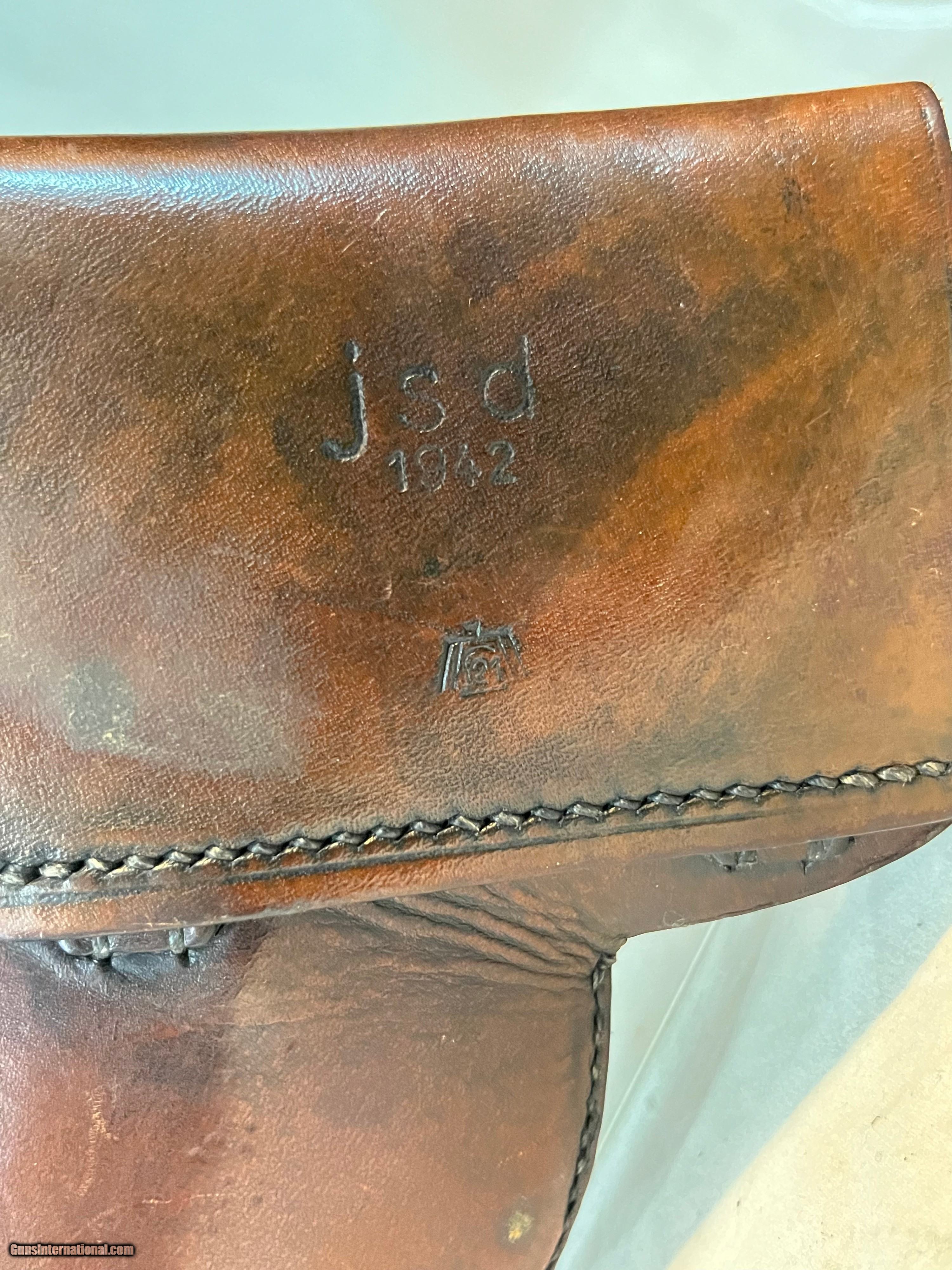 Description: INV. 12294 FANTASTIC RIG, NAZI FEMARU MDL. 37M, "RIG", CAL. .32ACP, SER.48950. THIS LUFTWAFFE "DESK QUEEN " LOOKS AS IF IT HAD NEVER GONE TO WAR. RETAINING ABOUT 99.9+% OF THE ORIGINAL BLUED FINISH. THE VERY SLIGHT LOSS THERE IS, IS FROM THE USUAL SHARP EDGE SILVERING. THERE ARE NO OTHER BLEMISHES ANYWHERE. THE GRIP STRAPS SHOW NO SIGN OF GRAYING THE SLIDE, BARREL, FRAME, AND BOTH MAGAZINES MATCH AND HAVE THE PROPER WAFFENAMTS.** THE STRIATED WOODEN GRIPS ARE FLAWLESS AS IS THE GRIP SCREW. THE SLIDE RAIL, BOLT FACE AND FEED RAMP SHOW NO USE. THE BORE IS PRISTINE LIKE THE REST OF THE GUN, MIRROR BRIGHT WITH RAZOR-SHARP RIFLING NOT A WHISP OF FROST ANYWHERE. IT COMES WITH TWO MATCHING MAGAZINES THAT SHOW NO SIGN OF USE, AND A BEAUTIFUL LUFTWAFFE LEATHER HOLSTER. THE INSIDE OF THE FLAP IS INKED STAMPED "FUR PISTOLE 37M 7.65MM". THE BACK IS STAMPED "JSD/ 1942" AND A LUFTWAFFE EAGLE. THIS COMPLETE RIG WITH TWO MATCHING MAGS AND AN AWESOME LUFTWASSE HOLSTER WOULD SATISFY THE MOST CRITICAL COLLECTOR AND COULD EASILY BE A BRAG-ABOUT CENTERPIECE OF ANY N PISTOL COLLECTION. INVESTMENT PRICED AT..... $3295***. **THE HARMLESS WHITE WAX CRAYON IS TO SHOW THE MARKINGS ARE CORRECT. IT IS EASY TO REMOVE WITH LIGHTER FLUID AND A BRUSH. WE WILL DO IT ON REQUEST. ***100% 0F THE GUN'S PRICE IS SATISFACTION GUARANTEED To purchase this firearm or if you want to request more information contact us at: Email ckguns[at]ymail[dot]com Phone 201-512-0002 Cell 201-575-6838 FAX 201-215-4759 We accept most major credit cards. Prices shown are Discounted 3% for Cash or Check. The buyer must be familiar with all the laws governing the purchase and the ownership of firearms in their own city and state. The Yankee Armorer, Inc is not responsible for any failure to comply with or observe these laws. The Yankee Armorer, Inc will only ship after full payment and receipt of all required documents. Shipping: Add $35.00 for handguns, $45.00 for long guns. New Jersey buyers are subject to a 7% sales tax. The Yankee Armorer, Inc offers a 3 day inspection period with full refund upon return of intact firearm and in the original condition. The Yankee Armorer, Inc offers a no interest lay away program - 25% down; 25% in 30 days; 25% in 60 days; and full payment in 90 days. Any violation of this policy is subject to restocking and forfeiture of all payments. Any variation from this policy must be agreed to in advance. Unshipped Cancelled sales are subject to a 20% restocking fee. Be advised that all firearms sold by The Yankee Armorer, Inc. or the Gun Exchange, LLC (SELLER) are sold as collector’s items. They have not been fired or tested for safety and must be examined by a license gunsmith prior to use. By purchasing any item from the (SELLER), you are agreeing to hold the (SELLER) free from any damages or lawsuits of any nature. Any item left for transfer or storage will be charged to $25.00 per month, per item from the day of its receipt. Any variation from this policy must be agreed to in advance. Store hours 10:00 am to 5:00 pm Tuesday -Saturday. It's always best to call for appointment. Store 201-512-0002, cell 201-575-6838. SOLD |