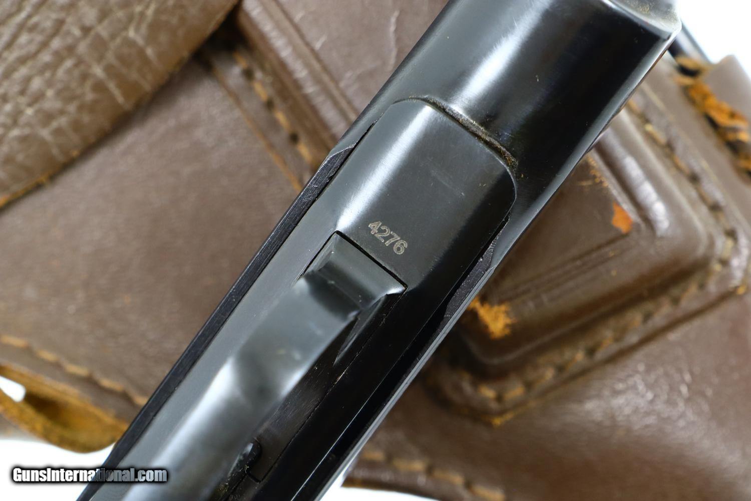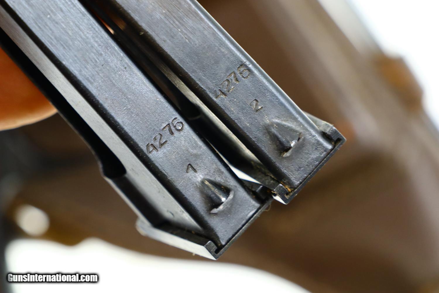 Fantastic 99+% original arsenal blue with comparable condition magazines. Mirror bore. Perfect manual mechanics with each magazine. Excellent holster with a few scuffs, cleaning rod and lanyard strap, dated 93.