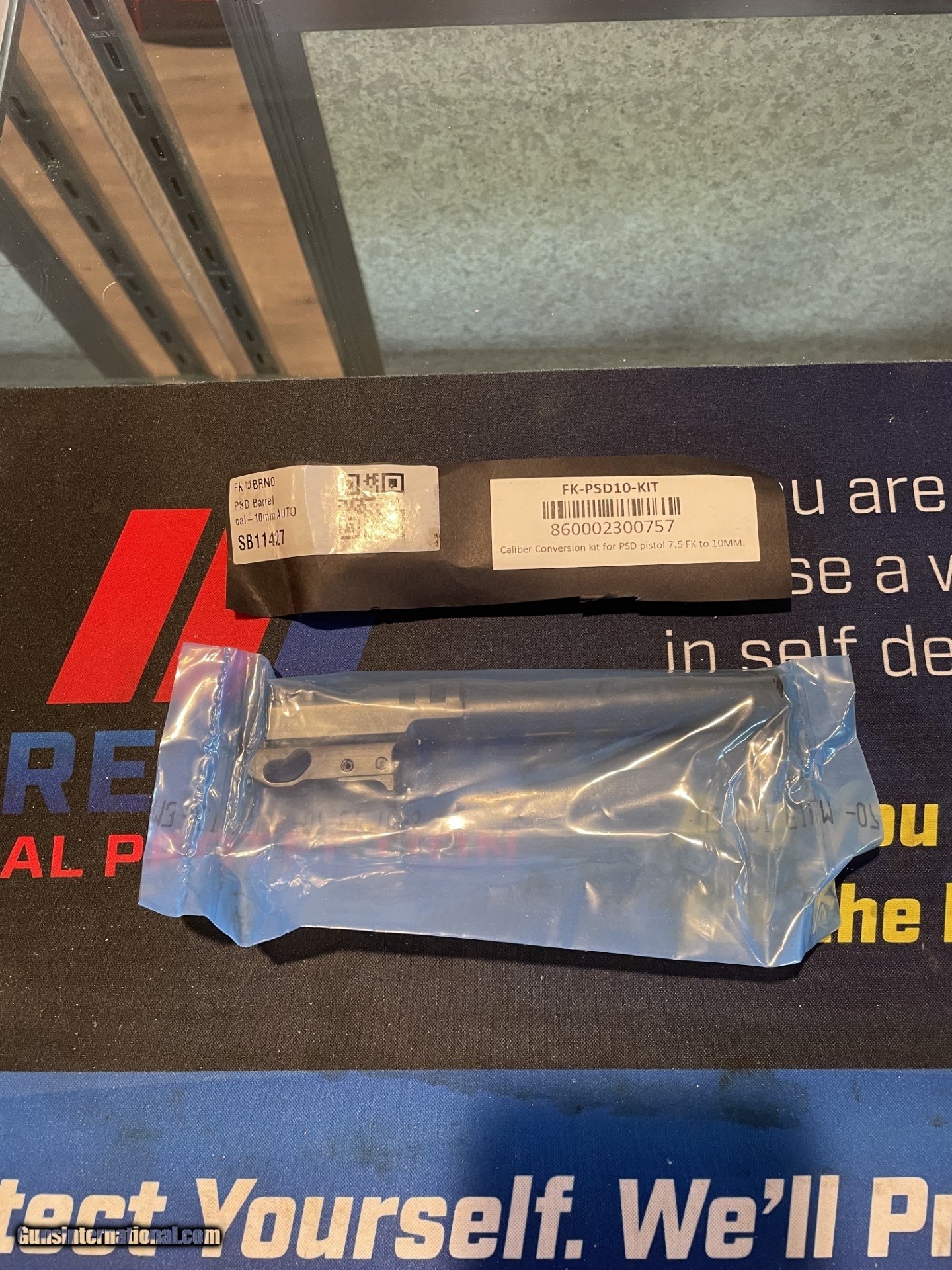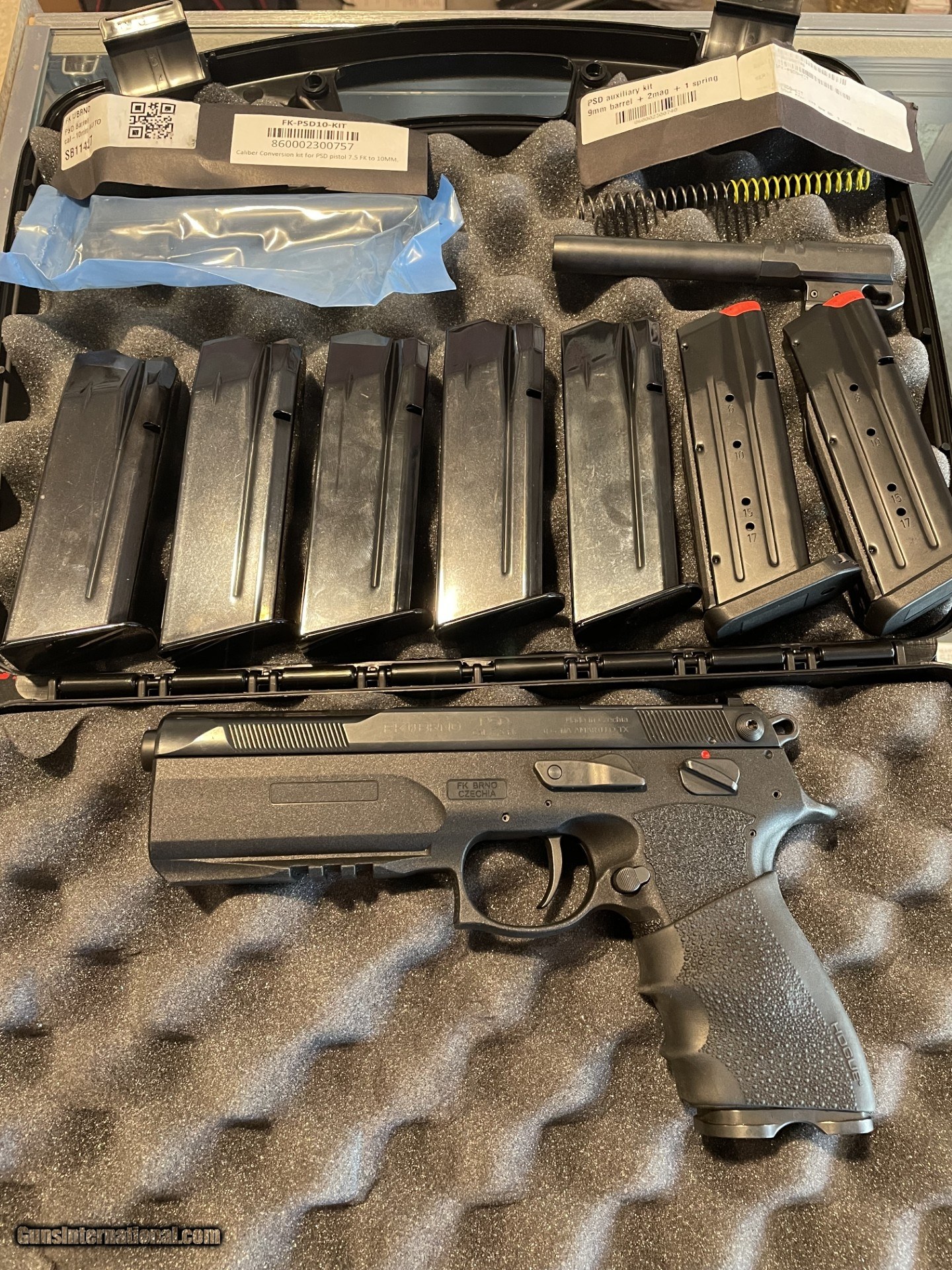 Description: Guns Listing ID: 1379485 FK BRNO, PSDFS-75, Semi-automatic, Single Action, Polymer Frame Pistol, 7.5 FK, 5.3\" Barrel, Nitride Finish, Black, Optics Ready, FK Diamond Front and Ring Rear Sight, Thumb Safety, 14 Rounds, 2 Magazines. Single action, tilting barrel, positive-lock mechanism pistol with a patented recoil attenuating system developed specifically to handle the potent and highly terminal 7.5 FK cartridge. Following items are included: FK BRNO, FK Bruno, Conversion Kit, 9MM, Black, Two 17 Round Magazines, Fits FK Brno PSD FK BRNO, Conversion Barrel, 10MM, 5.3\", Black, Fits FK Brno PSD, Matte 3 Extra FK BRNO, Magazine, 40S&W/10MM/7.5 FK, 14 Rounds, Black, Fits FK Brno PSD Range Bag Original box Ammunition comes with the firearm to be shipped separately (customer to pay for shipping if they want ammunition) SOLD Manufacturer: FK BRNO Model: US PSD Caliber Info: 7.5 FK BRNO Condition: Used - Non-Certified Barrels: 5.3 BARREL Finish: BLACK |