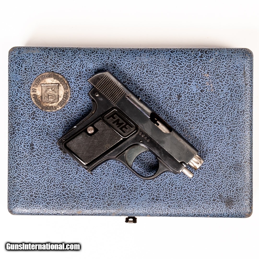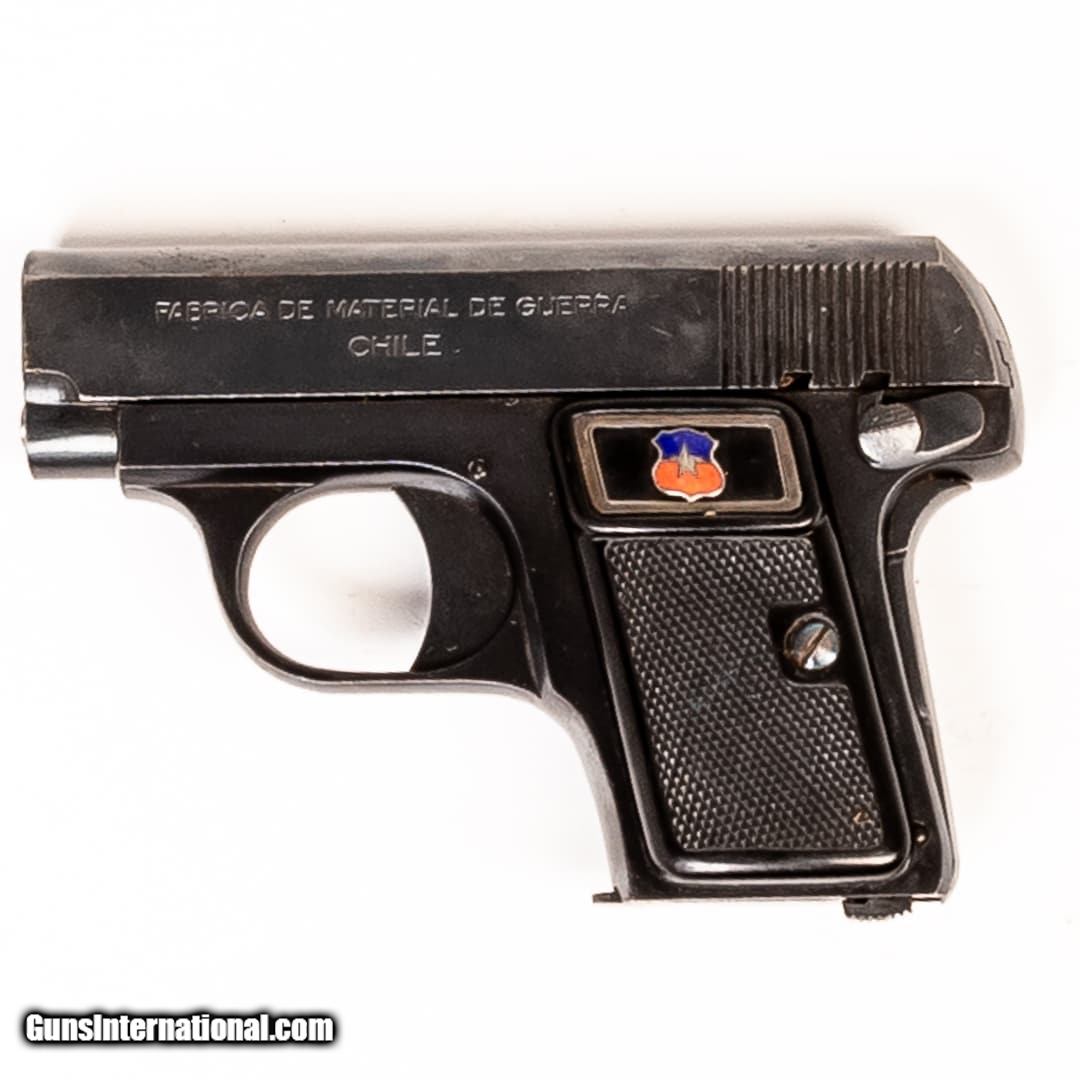 Description: Guns Listing ID: 439069 For sale is a Chilean 1908 Pistola Automatica pocket pistol chambered in .25 ACP. It comes with the original case and manual. This design is very reminiscent of the Colt 1908 Vest Pocket Pistol and will make a neat little addition to your collection. SOLD Manufacturer: FME Model: 1908 PISTOLA AUTOMATICA Caliber Info: .25 ACP Condition: Used - Certified Barrels: 2 BARREL Finish: BLACK |