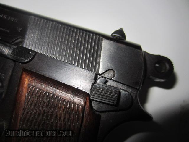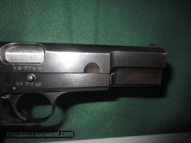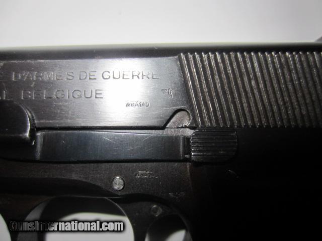 Description: FN HI POWER GERMAN PROOFS ((140)) ALL MATCHING NUMBERS, BORE EXCELLENT GRIPS VERY GOOD MADE IN BELIUM DURING GERMAN OCCUPATION DURING WORLD WAR 2. NO IMPORT MARKS, FACTORY BLUE ALL OF 95%. MECHANICS PERFECT. NEED MORE INFORMATION ALWAYS BEST TO CALL OUR OFFICE 716-941-3946 SOLD Curio/Relic: Yes |