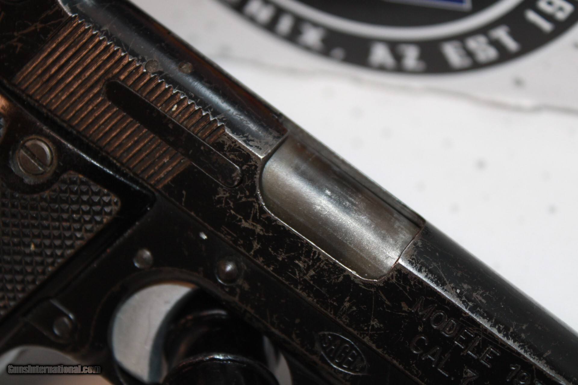 Description: French Sagem 1935S in 7.65x20 Longue, 4.29" barrel, blued finish, Pistol shows a fair amount of cosmetic wear, no rust, bore is good. Comes with 1 mag. *Legendary Guns in Phoenix AZ 602-242-1195 Hours of operation Tuesday-Friday 10-6 Sat 10-5 Closed Sundays & Mondays *We accept all Major credit cards. We DO NOT charge an additional fee for Credit Cards. We also accept Postal Money orders or Certified Bank Checks{Check & Money order payments must arrive within 7 days of initial agreement and will be held for 3 days before items are shipped} *Shipping is $50 for rifles/shotguns {AK & HI Extra} and $35 for handguns. Arizona Residents Must Pay Sales Tax. We DO NOT ship Internationally. *We offer a 60 day layaway on purchases of $500 or more. Items require 1/3 of the total price as down payment which is NON-REFUNDABLE and you have 60 days to pay off the balance. *Please call or email with any questions and to confirm availability before buying. We are happy to answer all questions. All items listed are also for sale at our Phoenix, AZ location *We offer a 3 day inspection period on USED FIREARMS ONLY, We accept returns within the 3 day inspection period with NO REFUNDS ON SHIPPING CHARGES and a 10% restocking fee. *Trades are welcome for customers who can visit our Phoenix, AZ location, We DO NOT engage in online or mail in trades. Handgun Caliber: 7.65mm Longue (7.65mm MAS, 7.65mm Long) Condition: Used Price: $395.00 Shipping: $35.00 Contact Seller |