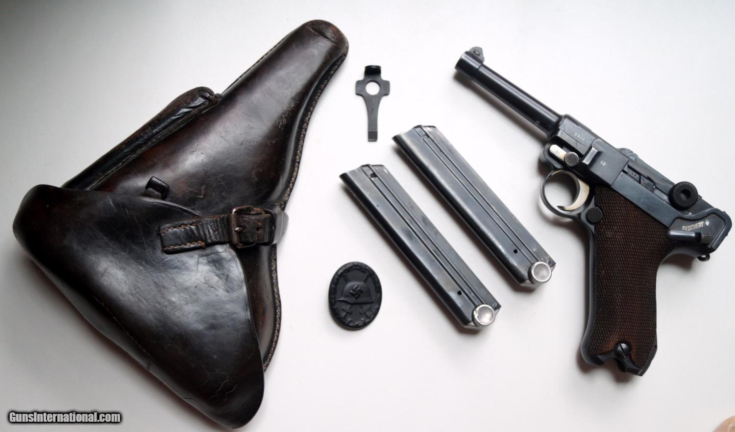 G DATE (1935) NAZI GERMAN LUGER RIG W/ WOUND BADGE