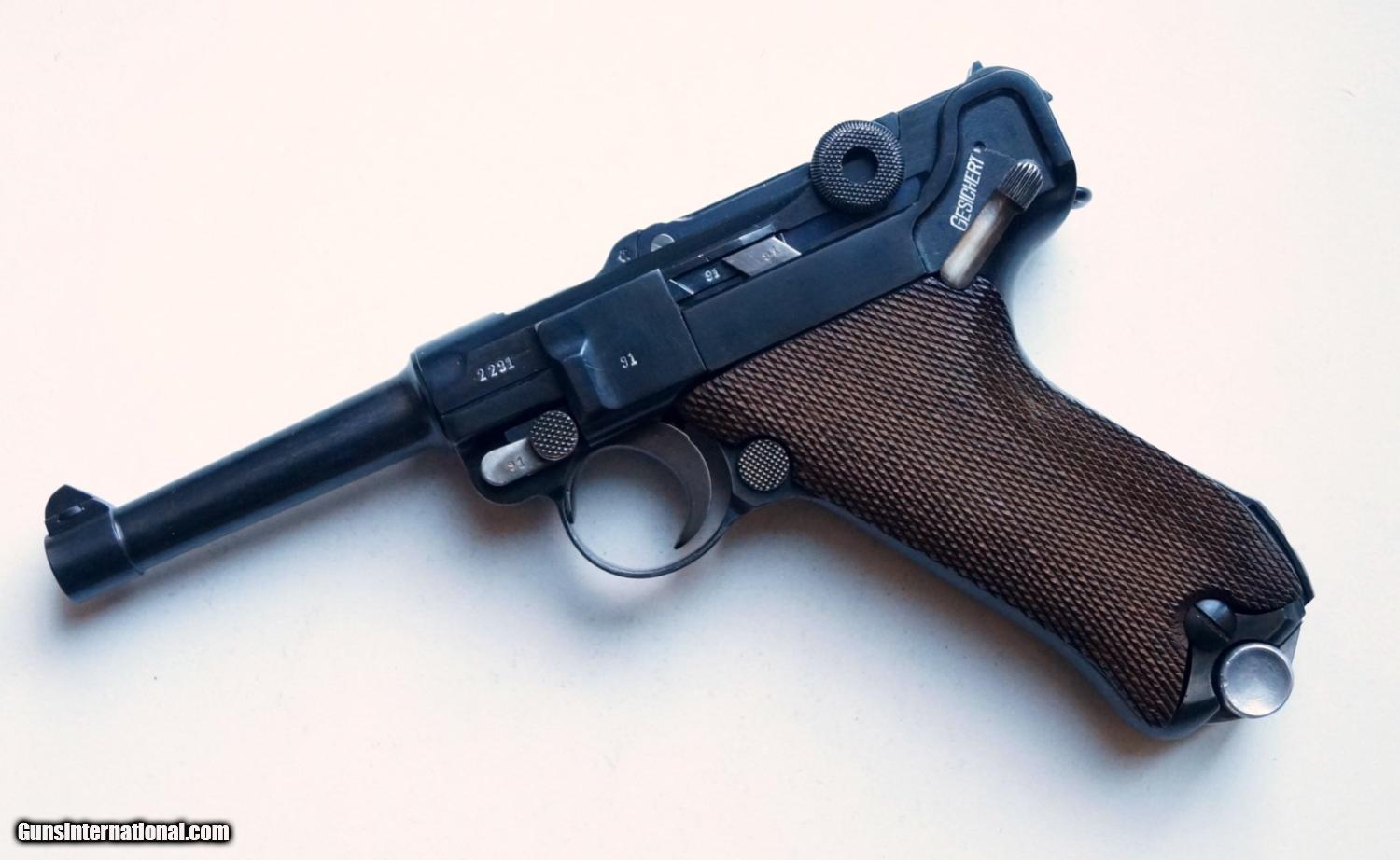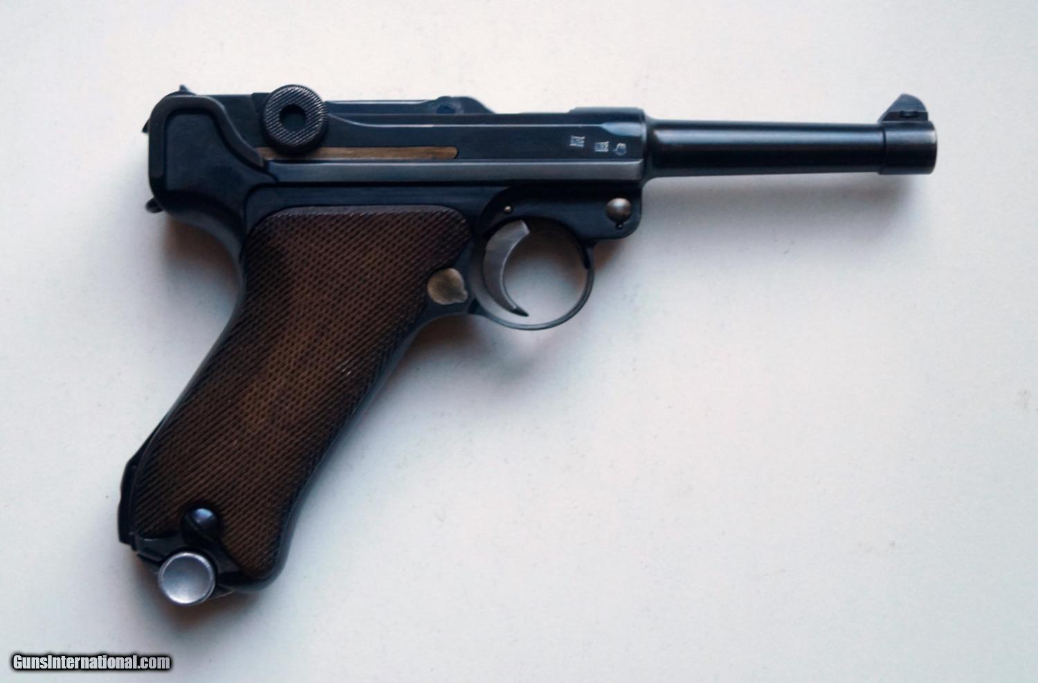 Description: THIS IS A G DATE (1935) NAZI GERMAN LUGER, 9MM. THE LUGER IS IN VERY GOOD CONDITION (OVER 90% FINISH), ALL ORIGINAL, NUMBER MATCHING (INCLUDES THE GRIPS AND MAGAZINE), VERY GOOD BORE AND GRIPS, MECHANICALLY CORRECT AND TIGHT. A VERY NICE ORIGINAL NAZI G DATE GERMAN LUGER. SOLD Curio/Relic: Yes |