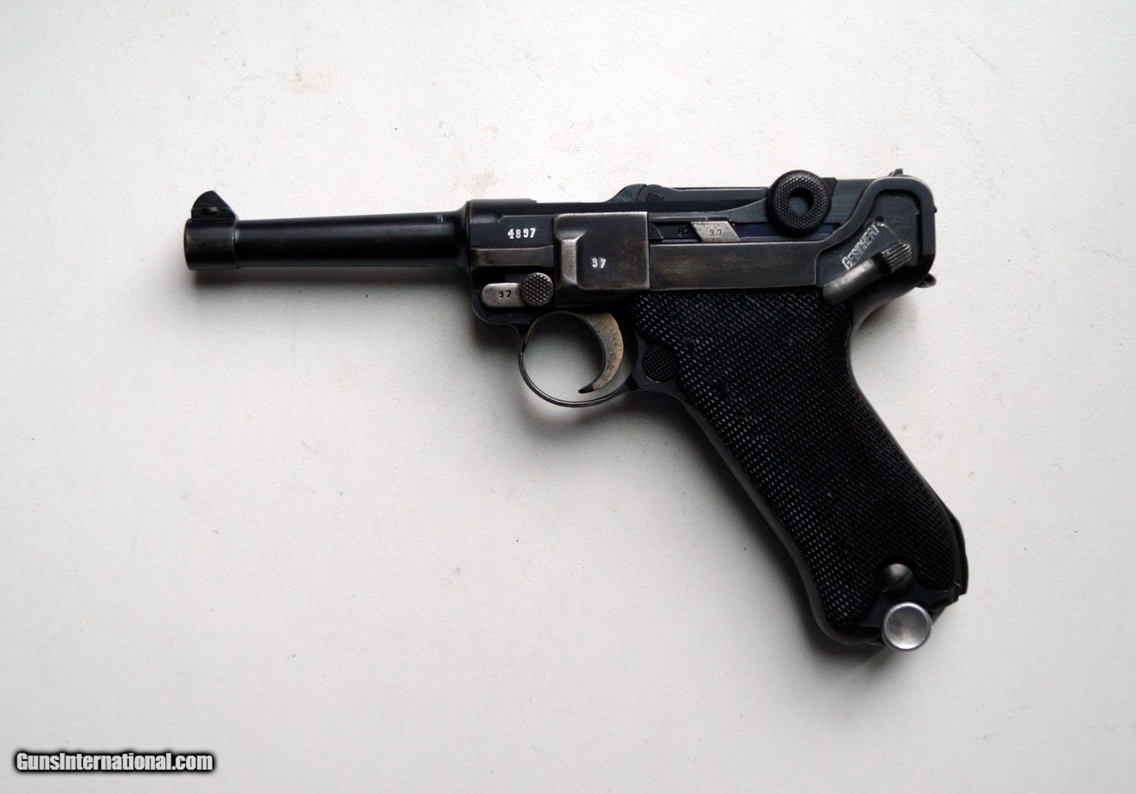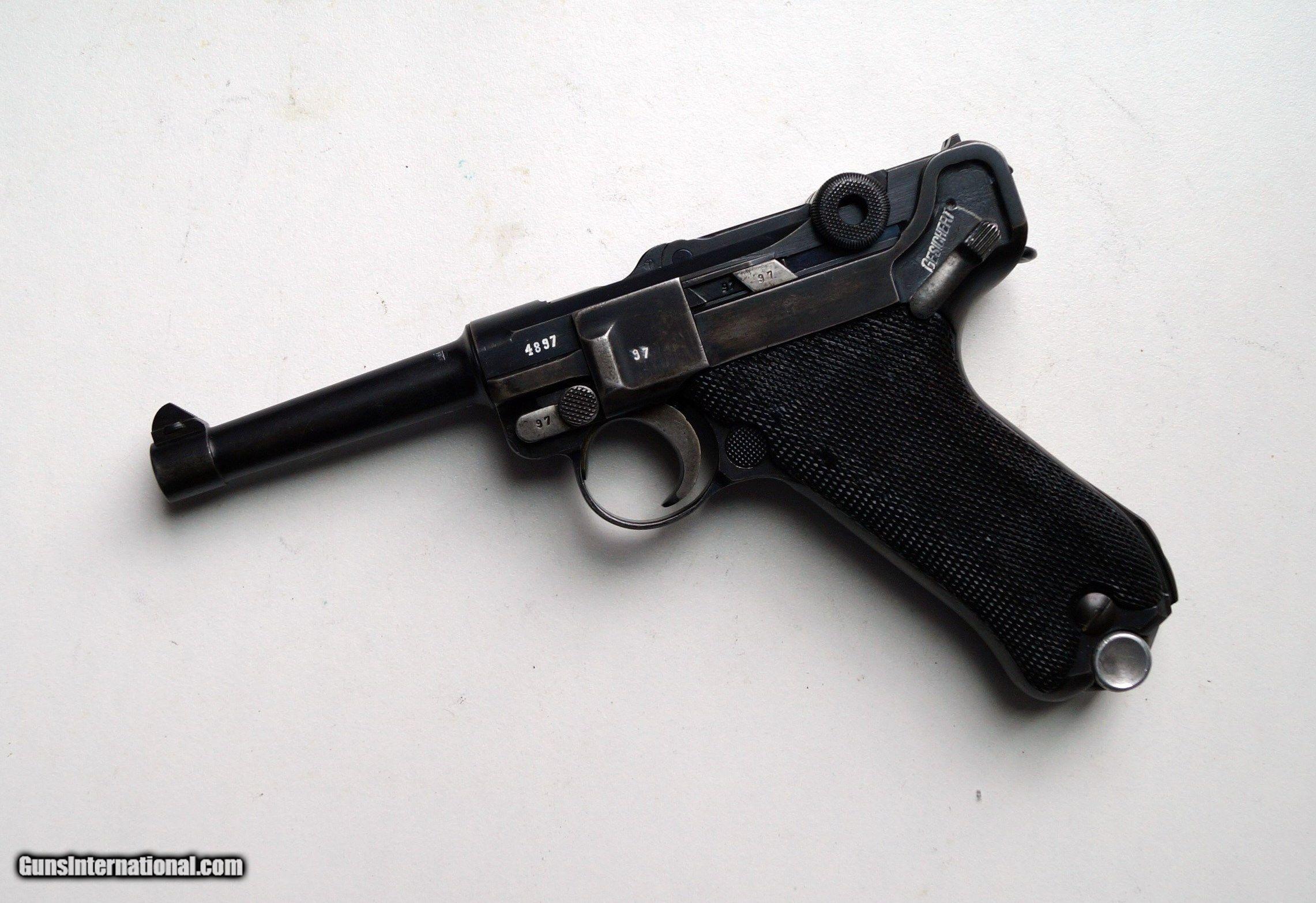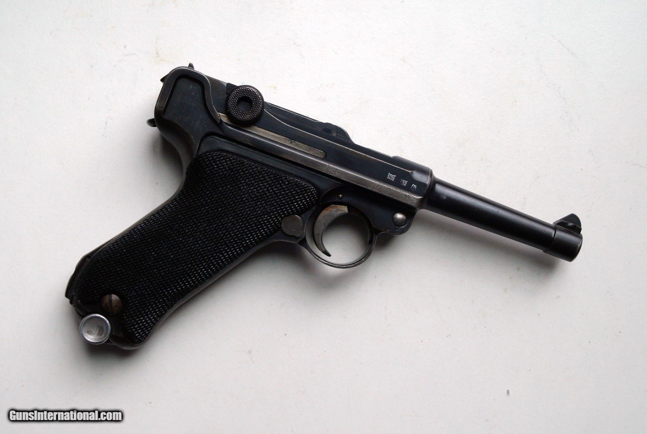 Description: THIS IS A G DATE (1935 MAUSER) NAZI GERMAN LUGER, 9MM. THE LUGER IS IN GOOD CONDITON. NUMBER MATCHING (THIS INCLUDES THE MAGAZINE), VERY GOOD BORE AND GRIPS, MECHANICALLY CORRECT AND TIGHT (IT WILL SHOOT). A VERY NICE RARER WWII NAZI GERMAN LUGER. SOLD Curio/Relic: Yes |