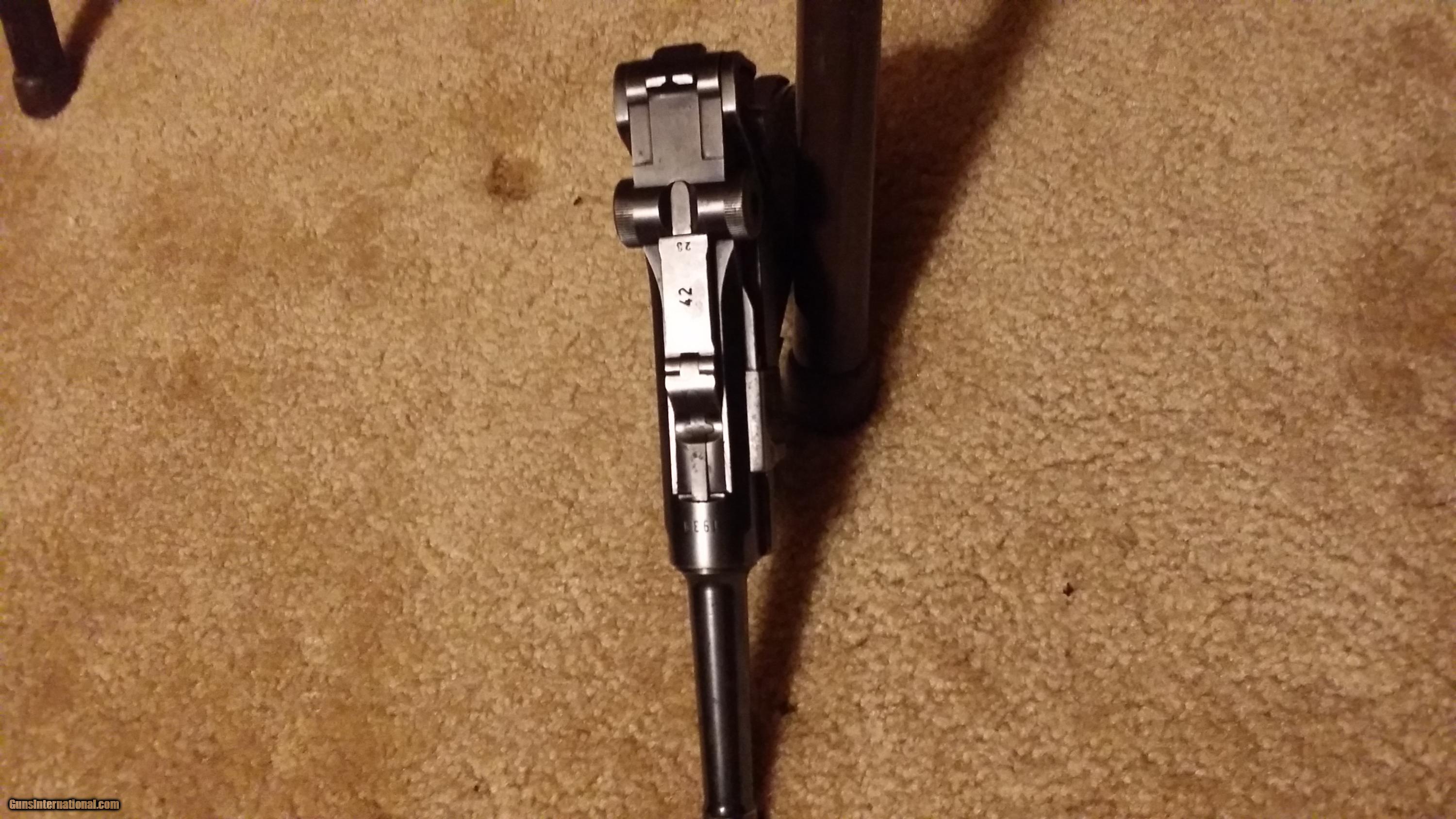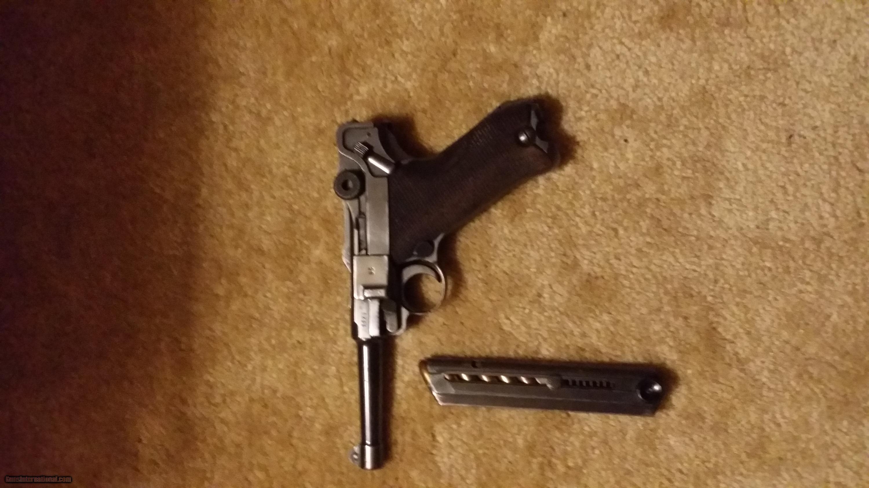 Description: GERMAN LUGER CODE #42 MADE IN 1939. ALL MATCHING SERIAL NUMBERS W CLIP INCLUDED. VERY NICE CONDITION PISTOL. GRIPS SHOWING LITTLE WEAR WITH FREE SHIPPING. SOLD Curio/Relic: Yes |
