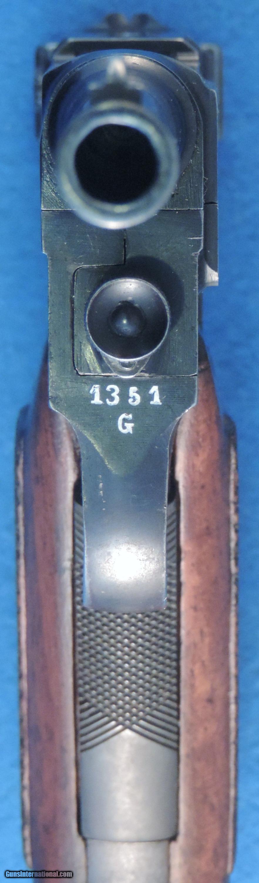 Description: Inv. 6548 Glisenti Mdl. 1910 Army, Cal. 9 mm Glisenti, Ser. G 13XX. Scarce, awesome condition and the full rig. Doesn't get much better than that. The original remaining is at least 97-98%. The usual sharp edge silvering, light scattered pinpricks and some very slight surface flaking. All serial number match. The nickel-plated trigger and bolt are about 100% original finish. The hardwood grips are almost as perfect as the rest of the gun. There is a very small chip missing from the toe of the left grip and that's it. Further examination shows that the grips are indeed numbered to the gun and the very rare take down tool is still present inside of the left grip panel. No splits gouges or flattened points. The bore is rather bright with well-defined rifling with a slight overall frosting. It comes with an original magazines and the rare take down tool. What a centerpiece for the serious collector.....$1195. To purchase this firearm or if you want to request more information contact us at: Email ckgunsymail Phone 201-512-0002 Cell 201-575-6838 FAX 201-215-4759 We accept most major credit cards. Prices shown are Discounted 3% for Cash or Check. The buyer must be familiar with all the laws governing the purchase and the ownership of firearms in their own city and state. The Yankee Armorer, Inc is not responsible for any failure to comply with or observe these laws. The Yankee Armorer, Inc will only ship after full payment and receipt of all required documents. Shipping: Add $35.00 for handguns, $45.00 for long guns. New Jersey buyers are subject to a 7% sales tax. The Yankee Armorer, Inc offers a 3 day inspection period with full refund upon return of intact firearm and in the original condition. The Yankee Armorer, Inc offers a no interest lay away program - 25% down; 25% in 30 days; 25% in 60 days; and full payment in 90 days. Any violation of this policy is subject to restocking and forfeiture of all payments. Any variation from this policy must be agreed to in advance. Unshipped Cancelled sales are subject to a 20% restocking fee. Be advised that all firearms sold by The Yankee Armorer, Inc. or the Gun Exchange, LLC (SELLER) are sold as collector’s items. They have not been fired or tested for safety and must be examined by a license gunsmith prior to use. By purchasing any item from the (SELLER), you are agreeing to hold the (SELLER) free from any damages or lawsuits of any nature. Any item left for transfer or storage will be charged to $25.00 per month, per item from the day of its receipt. Any variation from this policy must be agreed to in advance. Store hours 10:00 am to 5:00 pm Tuesday -Saturday. It's always best to call for appointment. Store 201-512-0002, cell 201-575-6838. SOLD Curio/Relic: Yes Manufacturer: Glisenti Model: 1910 Serial Number: G 13XX Caliber Info: 9 mm Glisenti |