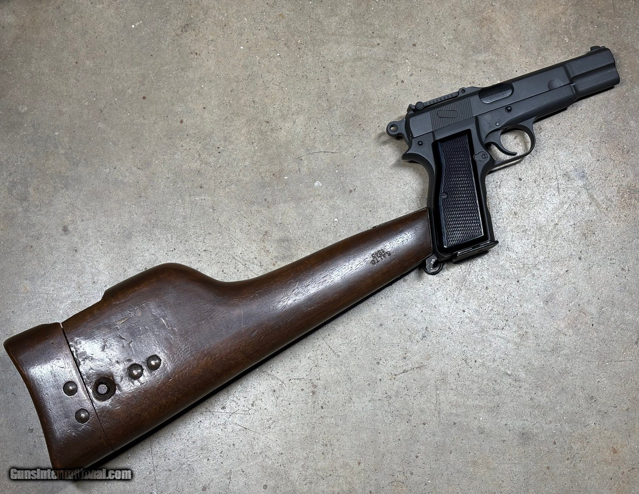 Description: Guns Listing ID: 507037 For sale is a Canadian Chinese Contract Ingles Hi Power in 9mm with 1 13rd magazine and the original holster/stock. This gun is in good working shape but shows signs of use as it is surplus. This gun features the Chinese sticker on the grip commonly but not always seen on these guns. This gun is NFA exempt so there is no problem installing the stock. The bore is fair with strong rifling. These are pretty rare pieces so don’t miss out! SOLD Manufacturer: INGLIS HI-POWERS Model: p35 hi power chinese contract Caliber Info: 9MM LUGER (9x19 PARA) Condition: Used - Non-Certified Barrels: 4.65 Action: SEMI AUTOMATIC Finish: parkerized |
