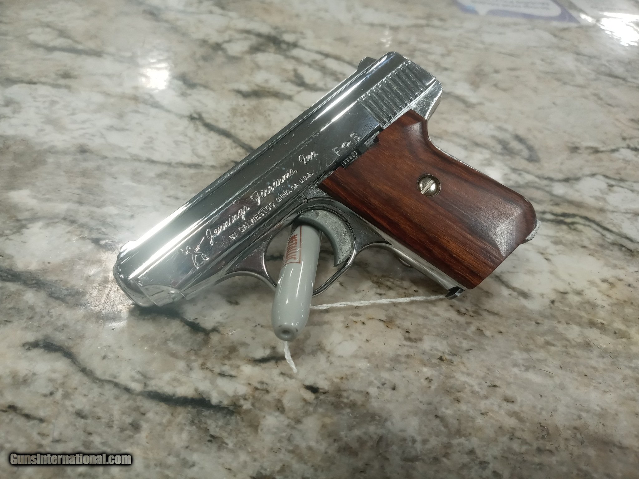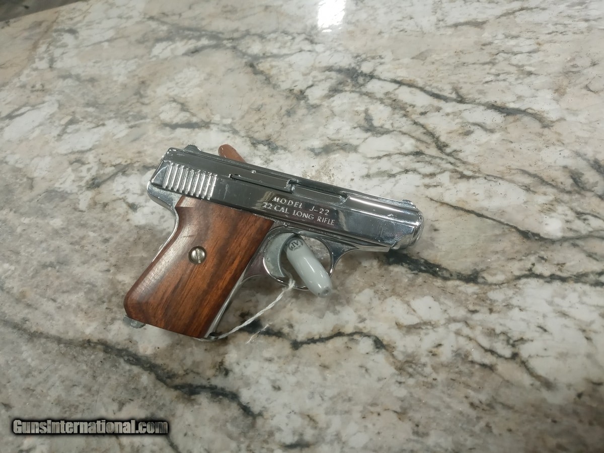 Description: Guns Listing ID: 912586 jennings j-22 pisctol with magazine see photos SOLD Manufacturer: JENNINGS FIREARMS Model: J-22 Caliber Info: .22 LR Condition: Used - Non-Certified Barrels: 2.5 BARREL Finish: NICKEL |