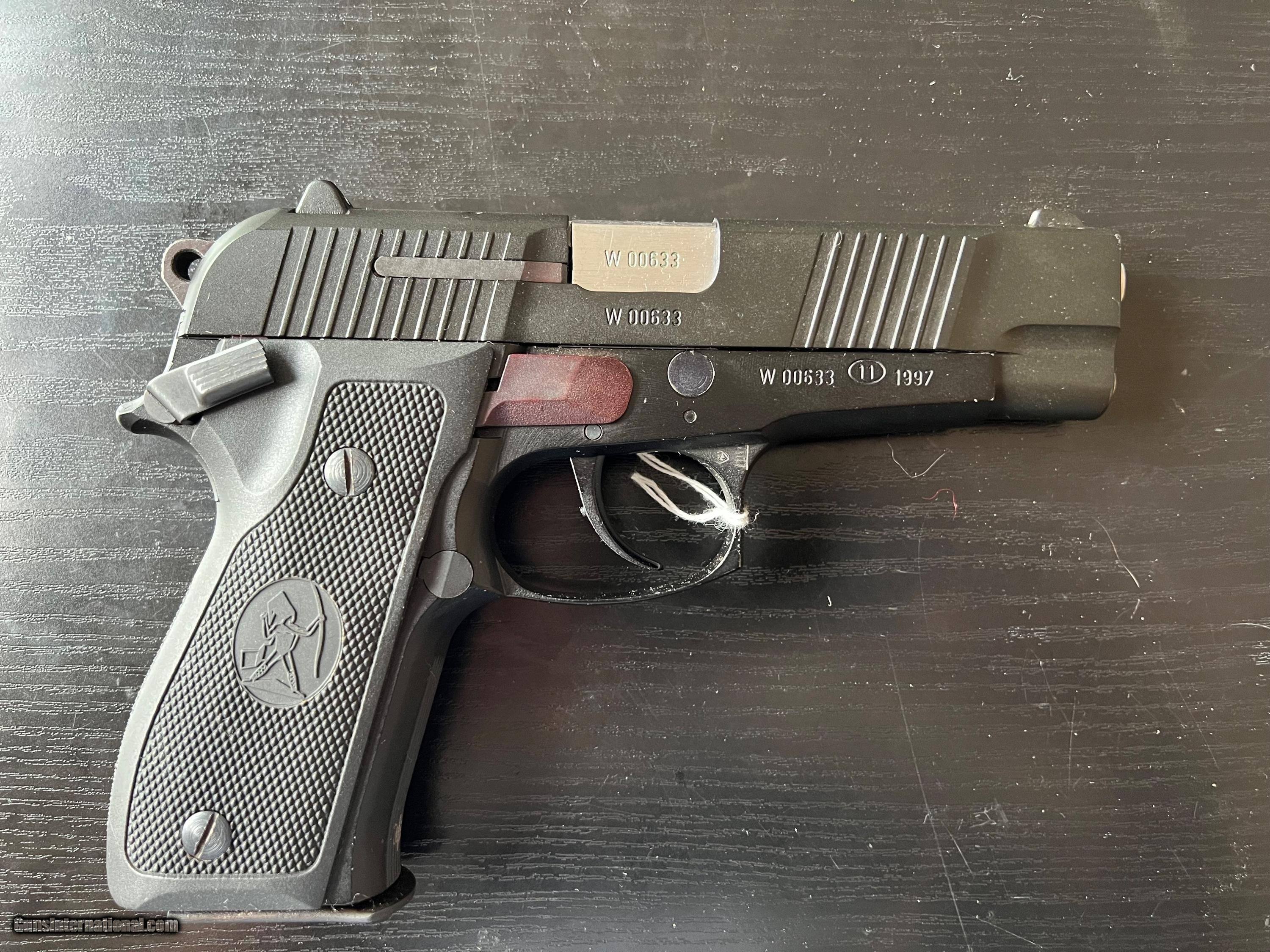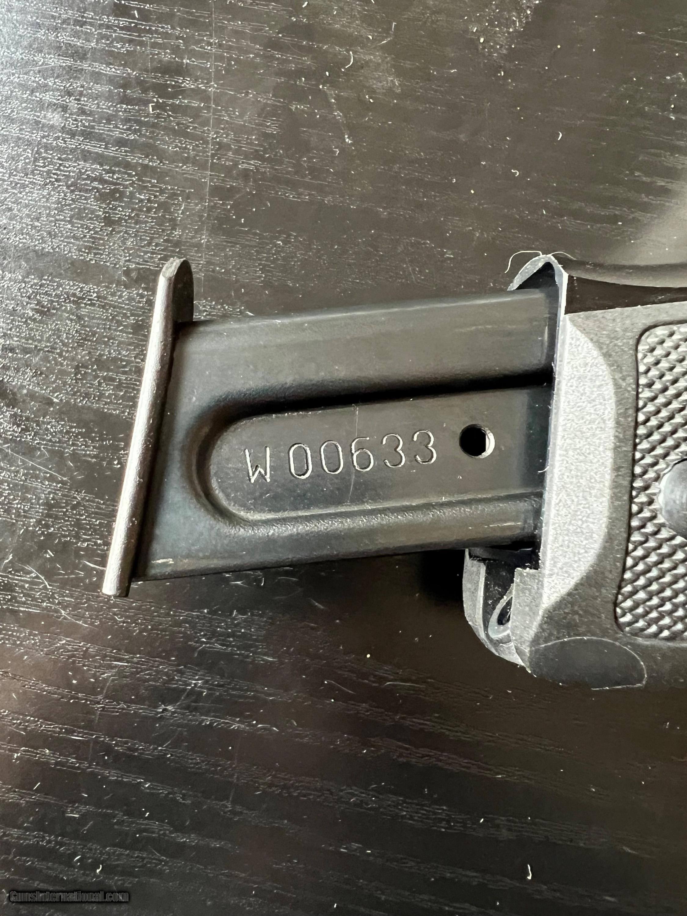 Description: SOLD! Arguably, this is the rarest post war Polish semi-auto with only about 25 of these being imported into US in the late 90s. Designed for Polish army trials, this all steel 9mm pistol never went into the full production and was finally superceeded by a MAG 98 which had a dural frame. Only about 1200 pistols were made as it lost its army adoptionto another competitor. This particular gun is near new with just a tiny spot of wear - on the front grip strap. Perfect bore and grips. Polish eagle impressed on the left side of the slide. Matching magazine. This is a full size military style pistol that is next to impossible to find. 3-day inspection. FFL required. $50 shipping in CONUS. Layaway available. SOLD Handgun Caliber: 9x19mm Parabellum (9mm Luger, 9x19mm NATO) |
