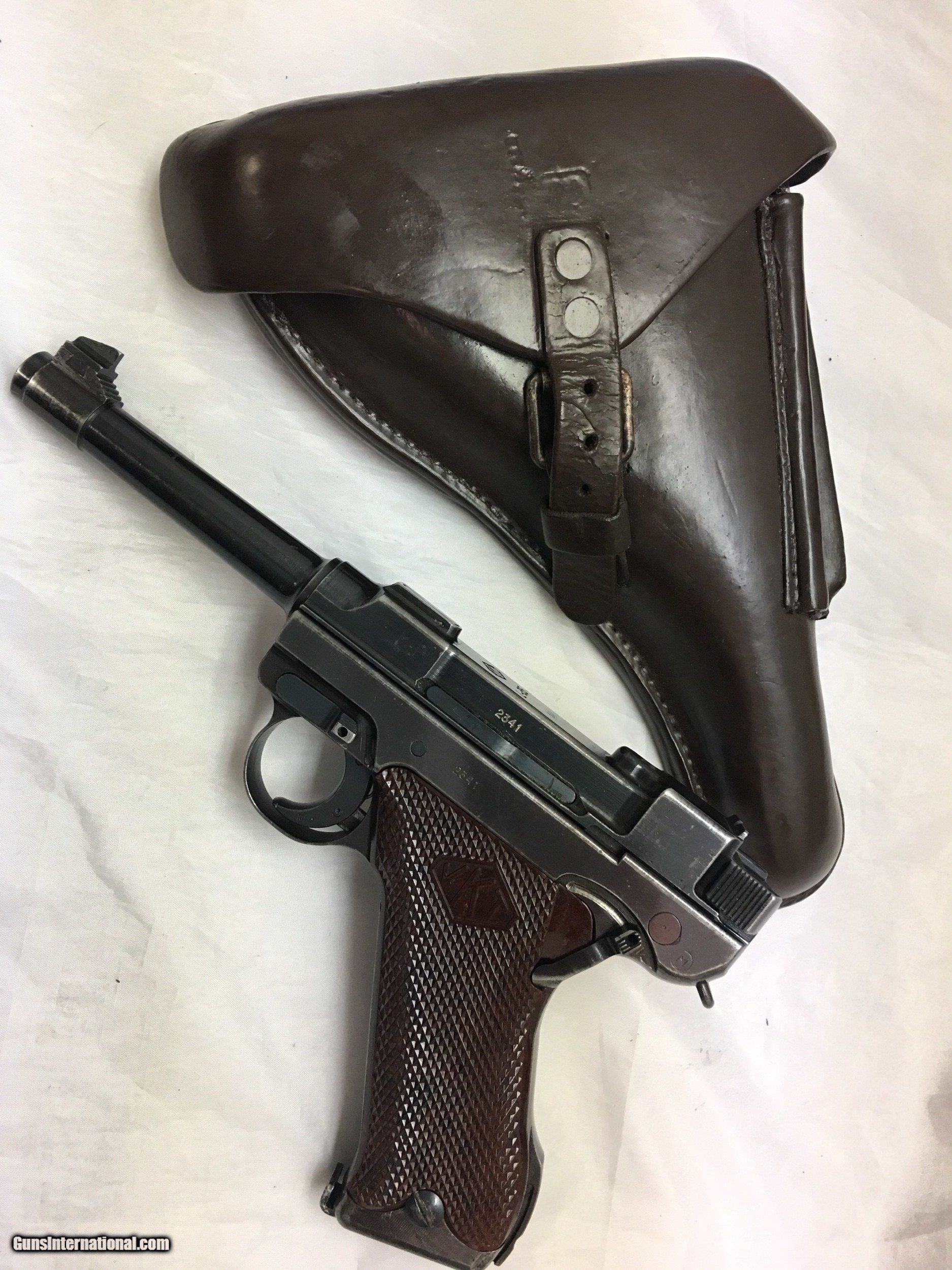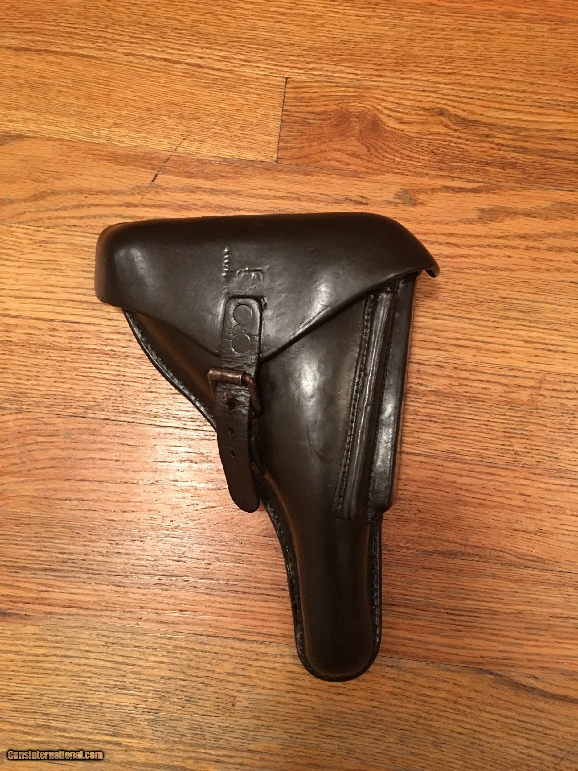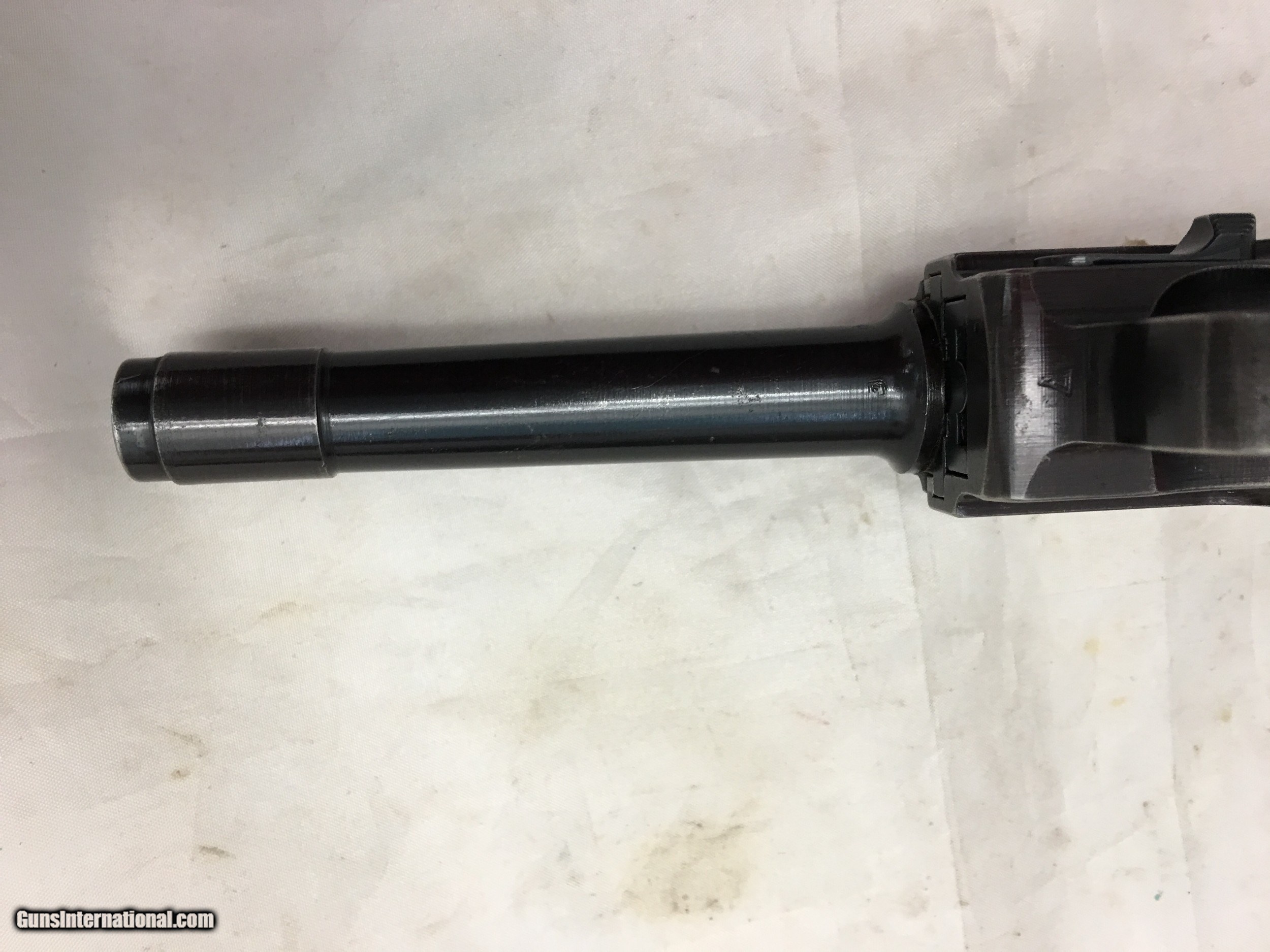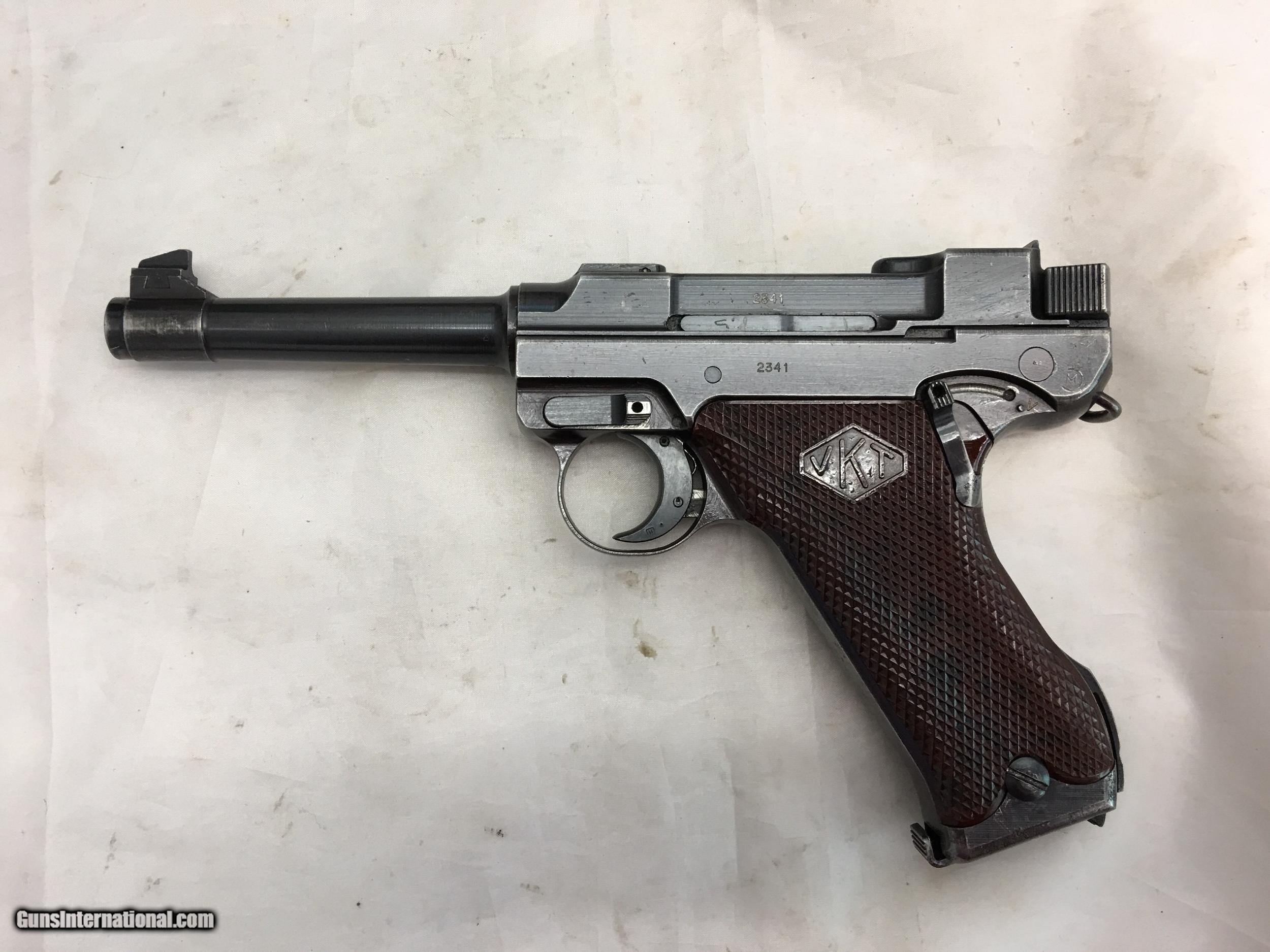 Description: This is one rare pistol. A first variation, military Finnish Lahti VKT L-35 pistol in excellent original condition. Only about 2000 of these rare guns were produced by the Finns in 1939-1940, with just a few being issued to the Finnish Army in time for the Winter War with the Soviet Union. This particular gun remains in its original "as issued" condition with about 90% of its original blueing remaining, with most of the wear limitied to the grip straps and to the high edges. It is an all matching gun with the frame, slide and the bolt having the same serial number. The VKT marked grips and the bore are mint. The top of the slide is stamped with the Finnish Army property mark - SA(SUOMI ARMEA) inside a rectangle. The floorplate of the magazine is stamped with the same marking as well. The gun comes with an original excellent brown holster, marked SA on the lid. The L-35 Lahti pistol was designed to withstand the temperatures of the Northern winters and was built like a tank. It is a heavy gun with very light felt recoil and has a grip angle similar to a Luger pistol. The first variation guns had a very distinctively shaped, curved rear slide bridge, that was eliminated on the subsequent production pistols. Only a handful of these guns exist in US, and near all of them reside in collections. This is a great opportunity to acquire an all original example in very good condition. FFL or C&R where allowed. SOLD Curio/Relic: Yes |