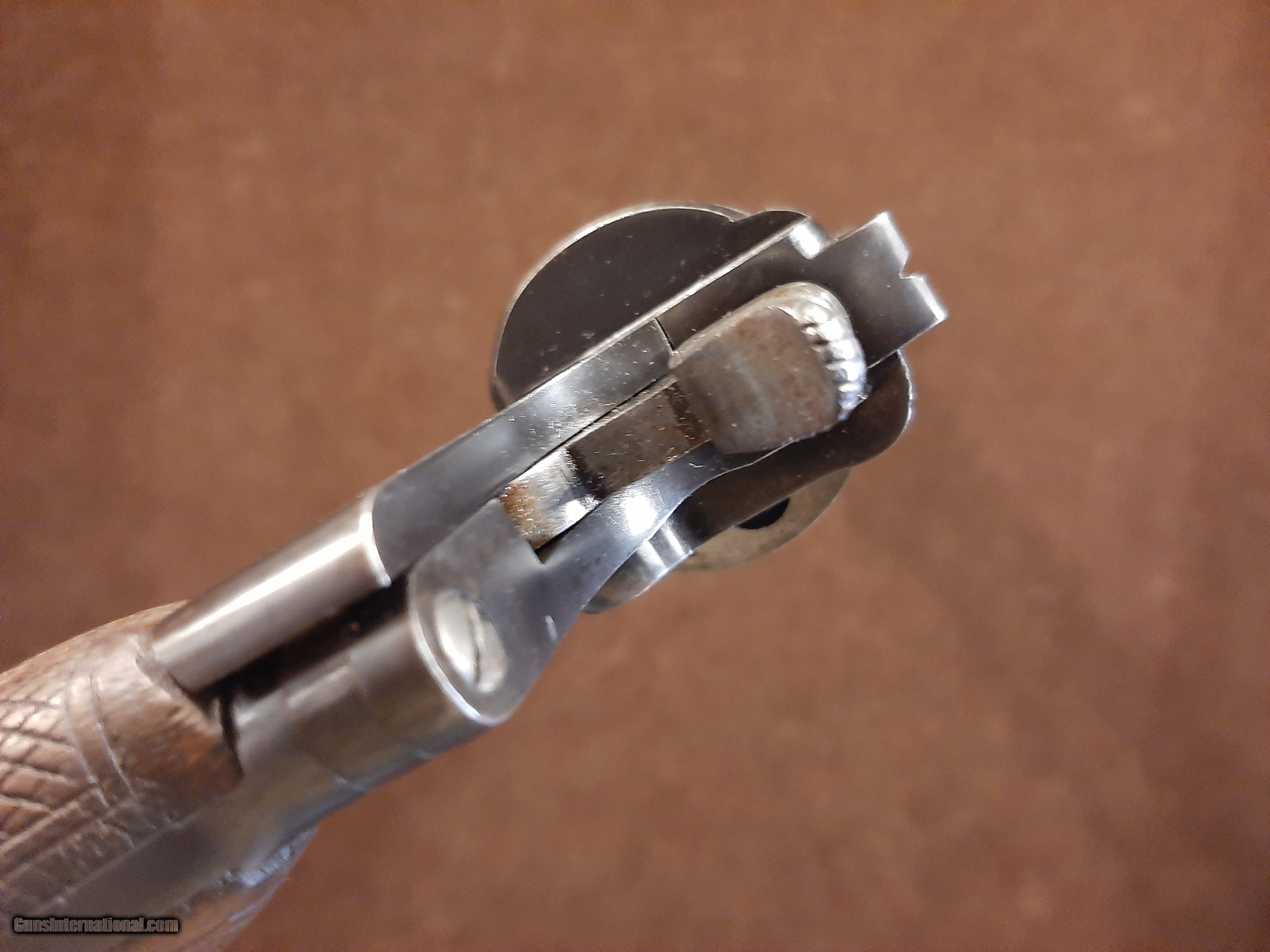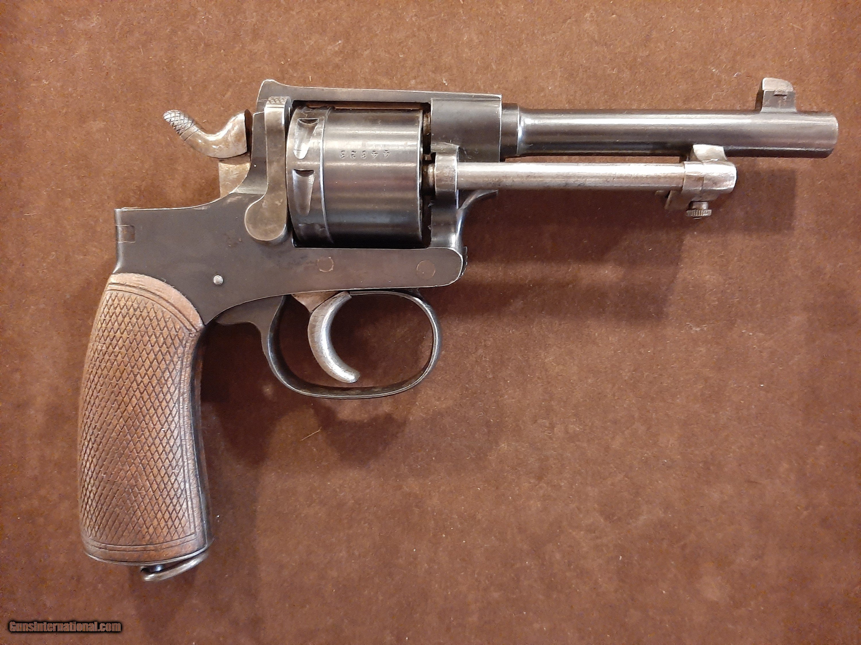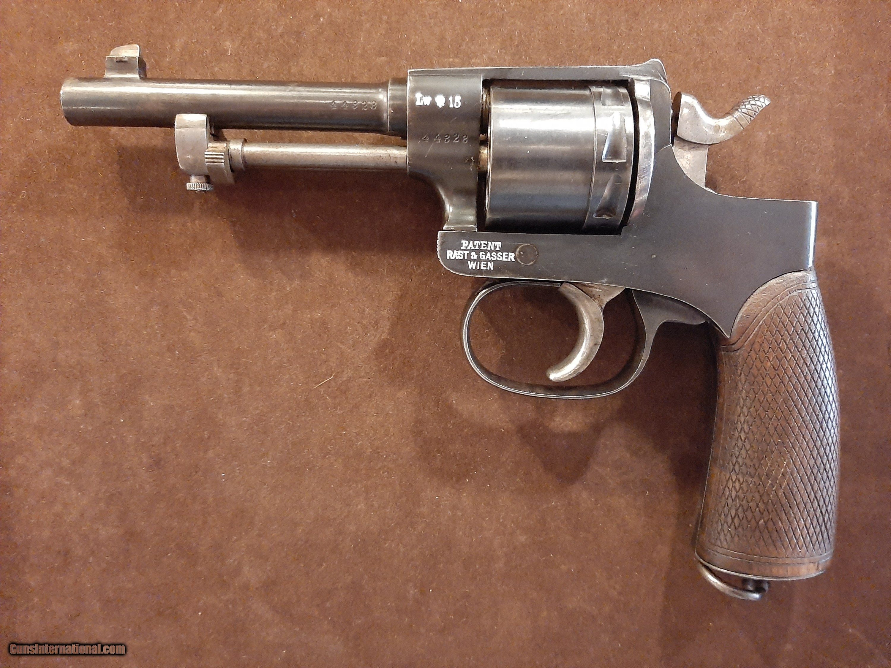 Description: The Rast & Gasser Model 1898 was a service revolver used by the Austro-Hungarian Army during World War I and various armies in World War II. These were produced by the firm Leopold Gasser Waffenfabrik in Vienna from 1898 to 1912. Prior to the outbreak of the First World War, the M1898 was planned to be replaced in the Austro-Hungarian cavalry with the Roth–Steyr M1907, and in the infantry with the Steyr M1912. However production of newer pistols was insufficient and the weapon remained in service. It was specially-issued to NCOs, officers, and also as a secondary weapons for machine-gunners. In some armies it was used up through the Second World War, including Italy and Yugoslavia. The manufacturing quality and the strength of the solid-frame design made it a reliable and consistent military weapon. This one has all matching serial numbers and bears the unit markings on the left side of the frame. The original finish rates 99% and the bore is . Given the excellent condition of this piece it would be extremely hard to upgrade. To complete the transaction, we will need a copy of your FFL or C&R of choice for shipping purposes. For payment we will accept personal checks, money orders, certified check or cashiers’ check, all major credit cards. Personal checks require 8 business days to clear the bank, all other forms of payment receive same day as received shipment. Credit card fees, shipping and full coverage insurance is included in the price. By purchase of this item, you release the seller from any liability that may arise due to use or misuse of this firearm. If you are in the Middle Tennessee area, please visit us at “Jones Antiques / The Bunker” 6 South Washington on the Court House square in Cookeville TN. SOLD Curio/Relic: Yes Handgun Caliber: 8mm Gasser Manufacturer: Leopold Gasser Model: 1898 Bore: 8mm Condition: Minty Metal Condition: Excellent Wood Condition: Excellent Action: Revolver Finish: Blued Manufacture Date: 1898-1912 Item Location: Tennessee USA |