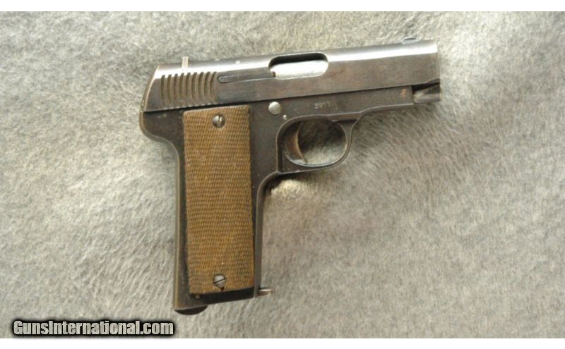 Description: The self-loading Ruby pistol is best known as a French World War I sidearm, the Pistolet Automatique de 7 millim.65 genre "Ruby". A very international piece of weaponry, it was closely modeled after John Browning's M1903 design produced by the Belgian Fabrique Nationale de Herstal, and was produced by over 50 Spanish companies, but primarily by the Spanish Gabilondo y Urresti firm (the official "Gabilondo Ruby"). It was decommissioned in 1958, more than a decade after World War II was brought to an end, and was subsequently replaced. SOLD Curio/Relic: Yes Caliber Info: .32 ACP Metal Condition: Very Good, Some Finish Wear, Small Nicks & Scratches Wood Condition: Grips are in Very Good Condition Barrels: 3 1/4 Triggers: Single Action b Stock: Factory Grips Weight: 1 Lb 14 ozs Sights: Fixed Iron Sights Extras: With one mag Item Location: La Vista, NE |