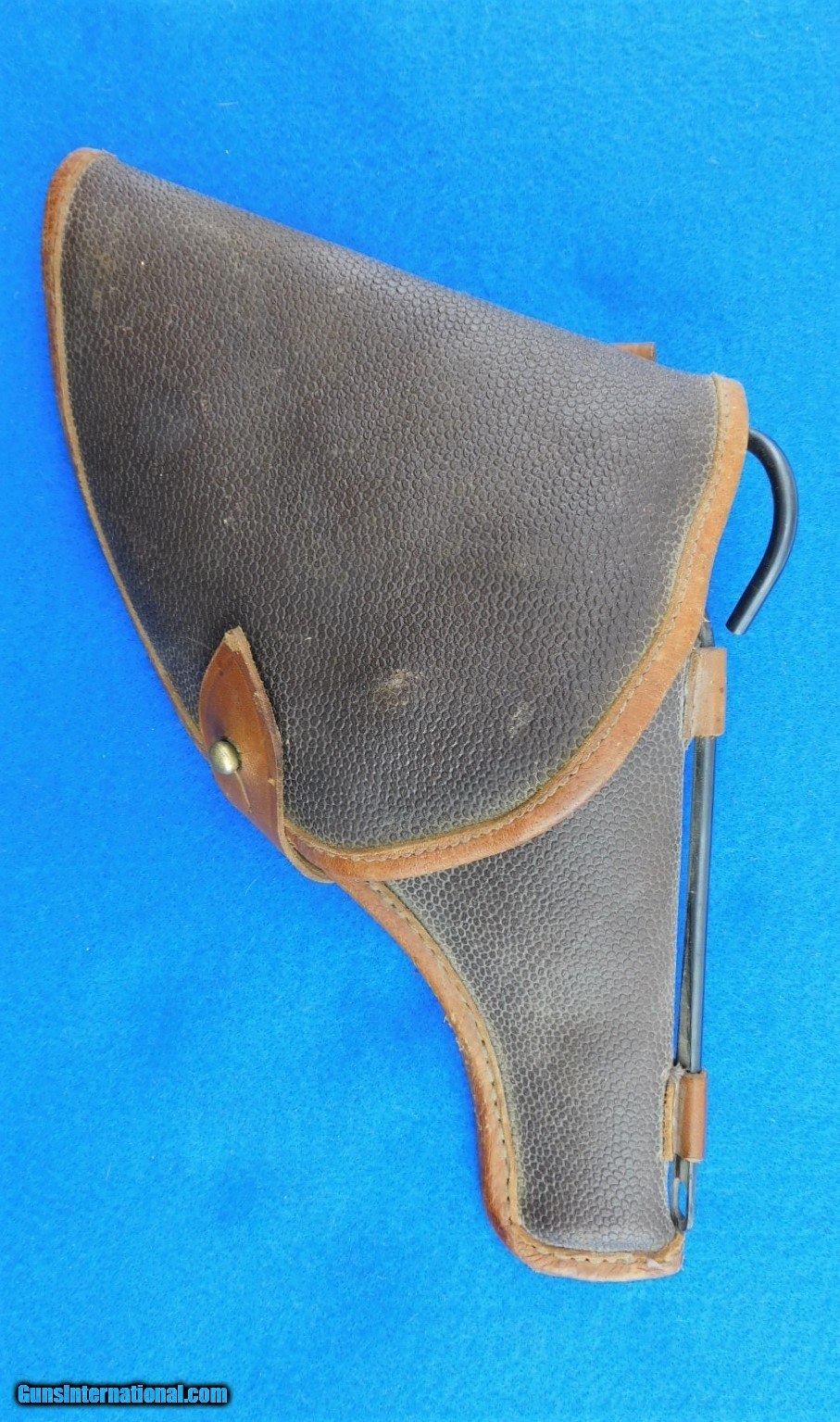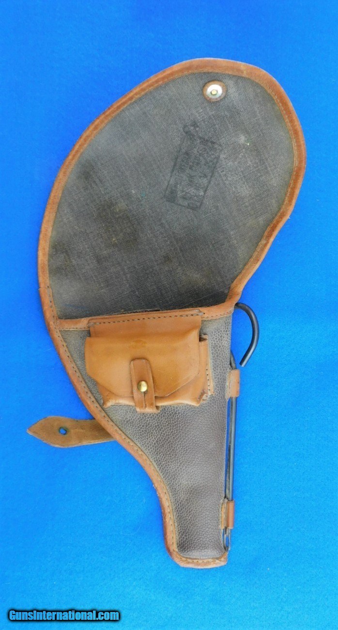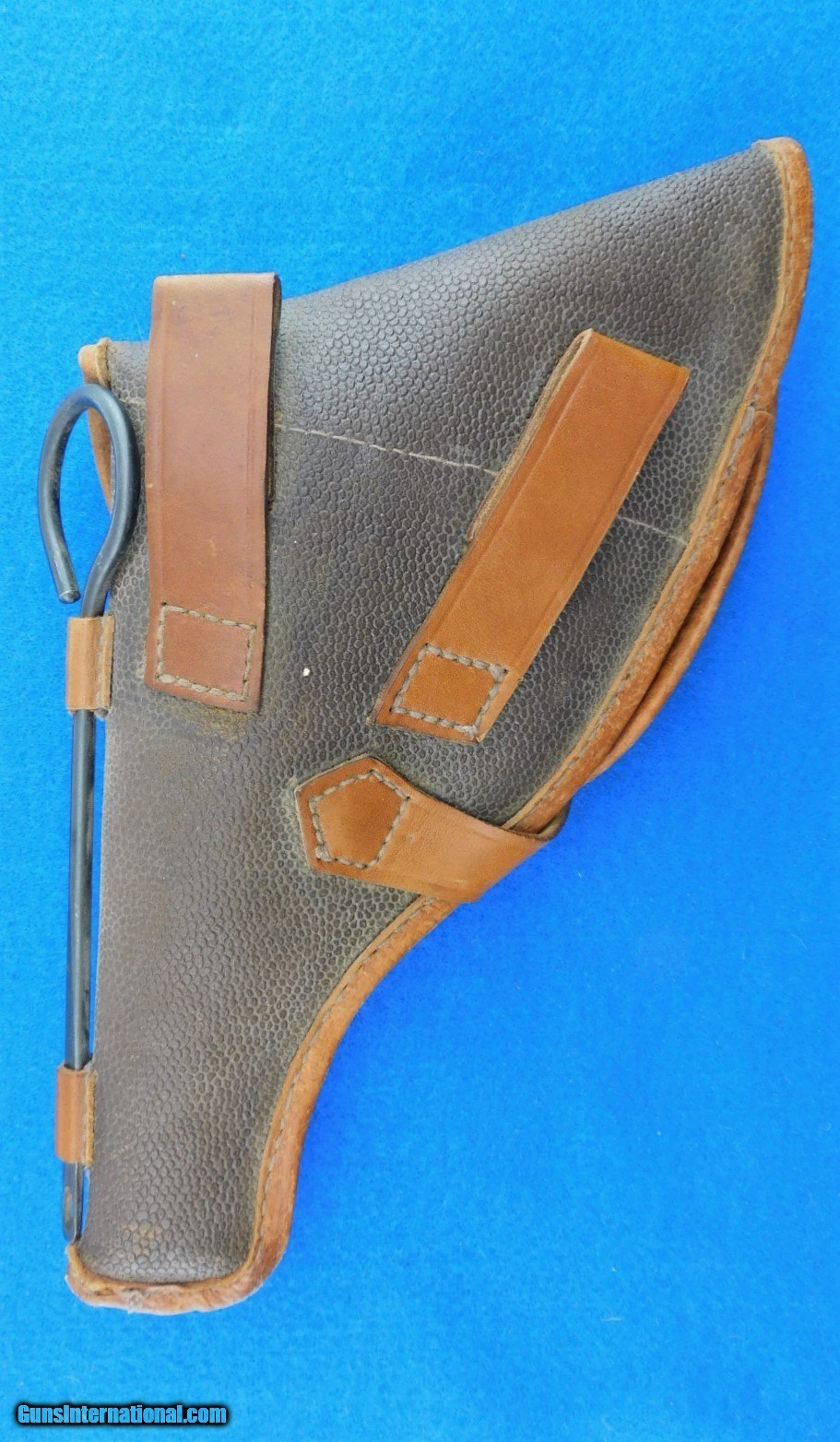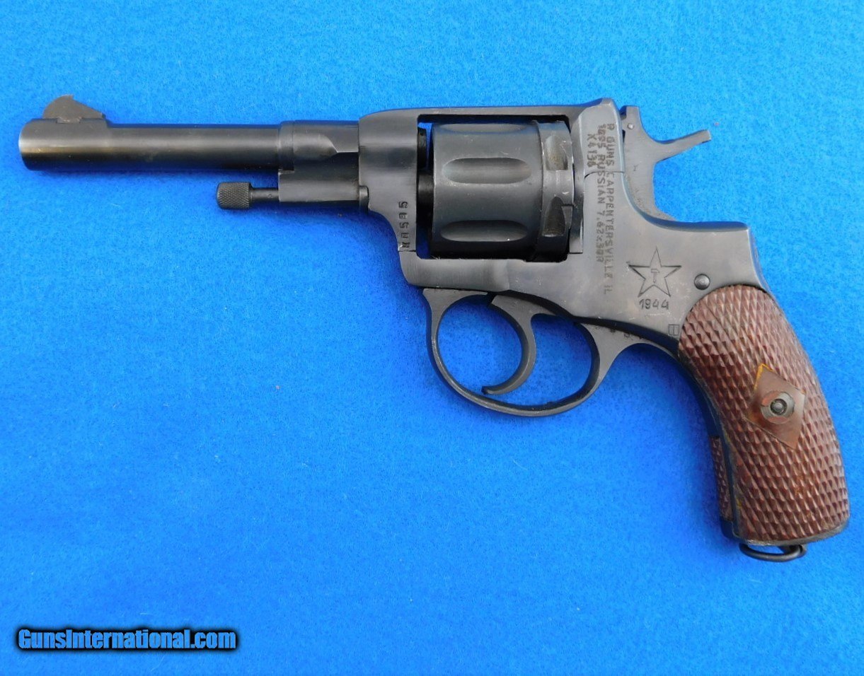 Description: Russian 1895 Nagant DA 7 Shot MFG 1944 7.62X38R WHolster, 4 1/2" bbl, bright shiny bore, good rifling, fixed sights, blued finish, matching numbers on cylinder - frame, checkered grips - front strap - back strap, and lanyard loop. Add 3% for Credit Card Shipping $25.00 Originally designed by Nagant and manufactured by the Russians during the reign of the Czars. This revolver was used in WWI, WWII, by police forces and security forces around the world. Manufacturing ceased around 1950. SOLD Curio/Relic: Yes |
