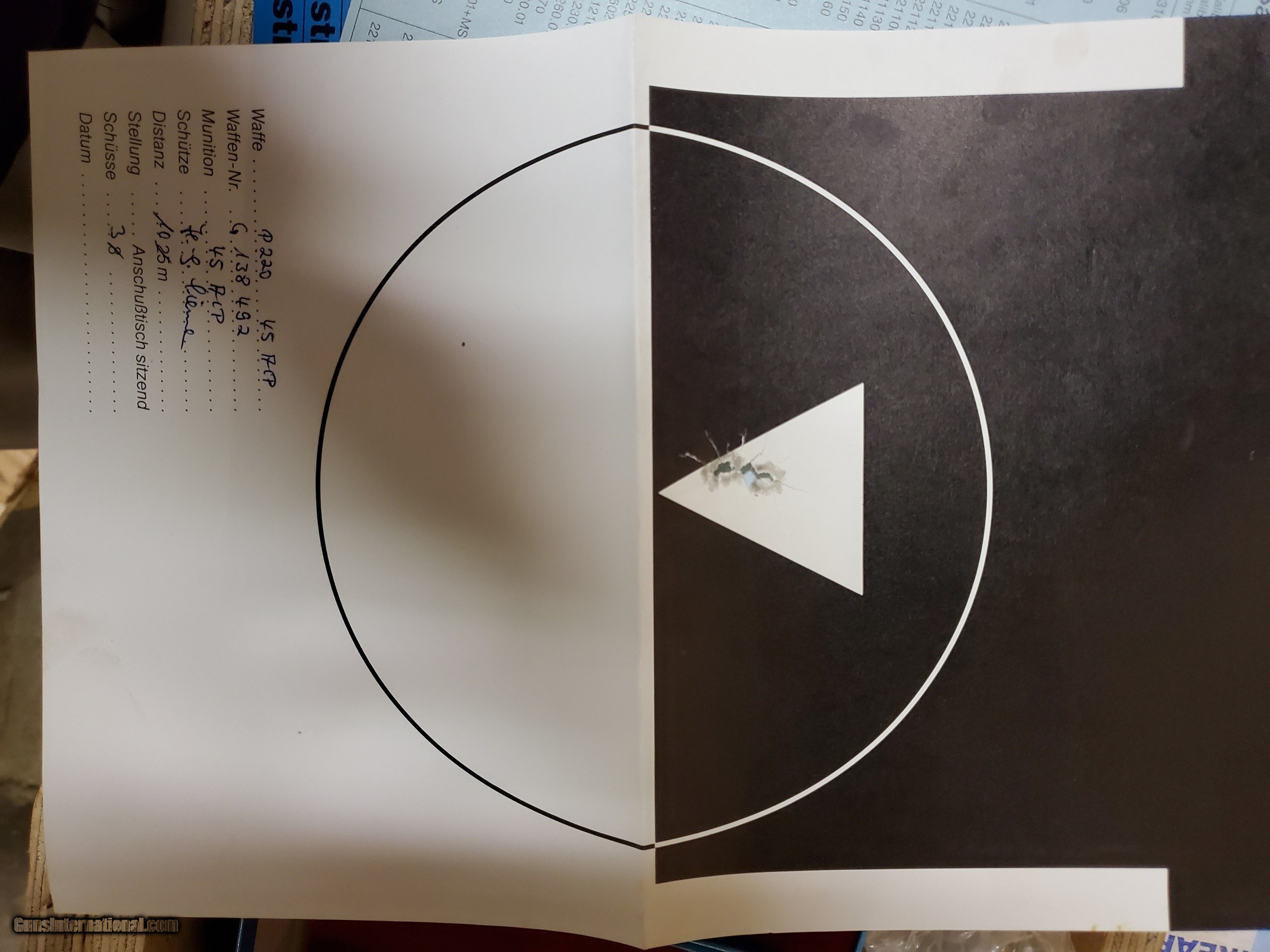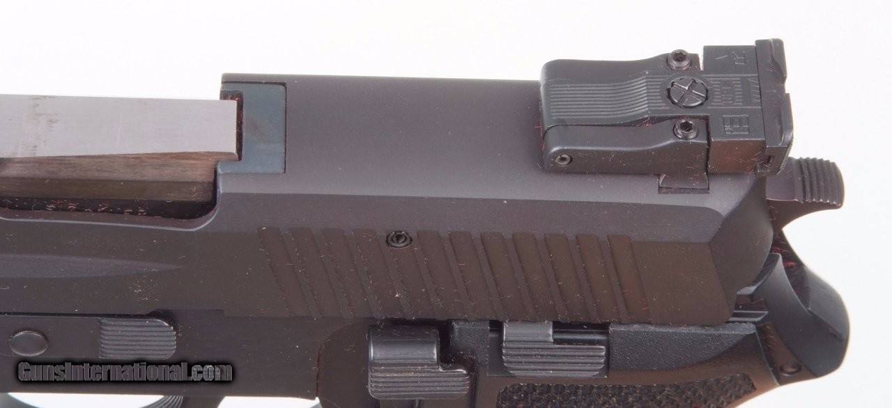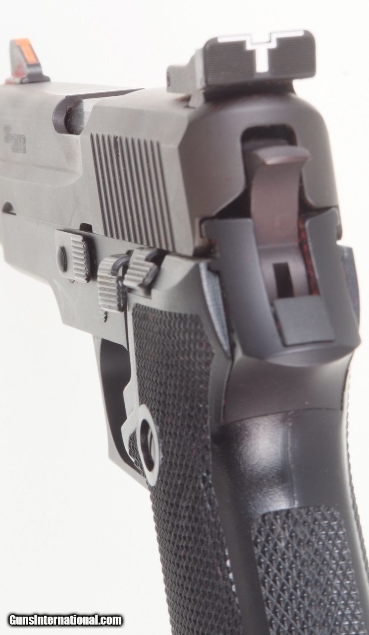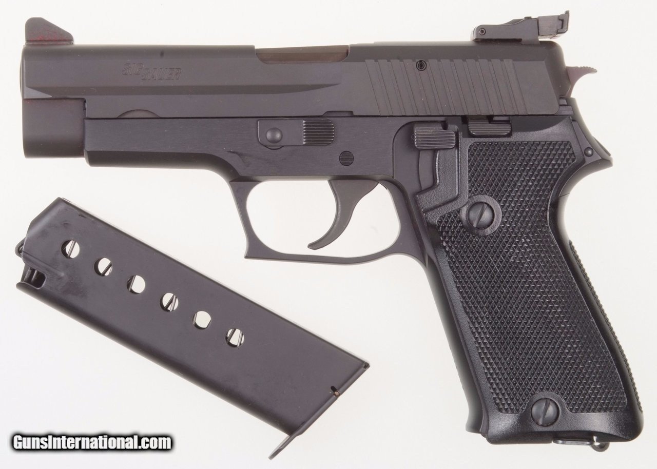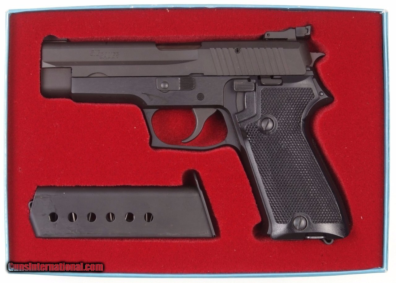 Description: SIG SAUER P220 Sport in .45 ACP, early configuration with European heel-mounted magazine release, NIB with test target and booklet. SN: G138492. Cal: .45ACP. Standard configuration SIG P220 made for sport/informal competition shooting, now with red insert front sight and microadjustable white highlighted rear sight. Slide with standard marking.45 Auto marked on right side of chamber. Full serial number on right side of slide and repeated on the front strap. Two piece checkered black plastic grips with three panels of checkering. Heel mounted magazine release. Magazine with six indicator holes and floorplate marked “.45 Auto.” Complete in crisp original factory box with instruction booklet, test target, and Allen head wrench for rear sight adjustment. Model, serial number and caliber marked on end label. Condition: Virtually new with only the most minute marks consistent with disassembly. There is no leading edge wear, the front strap, screws and even the magazine are virtually new. Comparable condition instruction booklet that has no staining or dog ears. A great, early, SIG SAUER P220 Sport with heel magazine release, nearly as shipped from the factory! A HISTORIC INVESTMENT! Buyer responsible for a flat shipping fee of $55 (Fed Ex 2nd day). SOLD Curio/Relic: Yes |