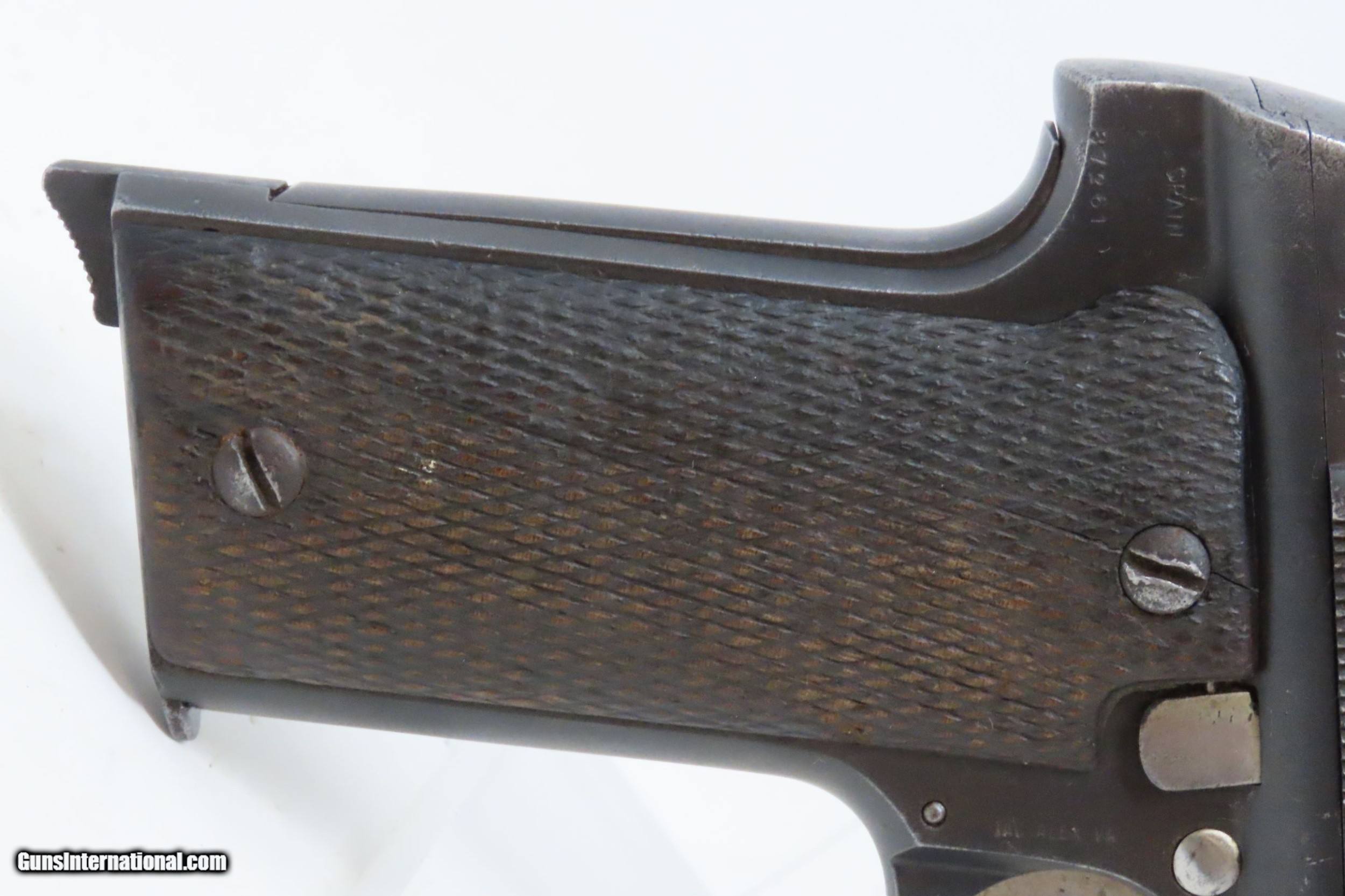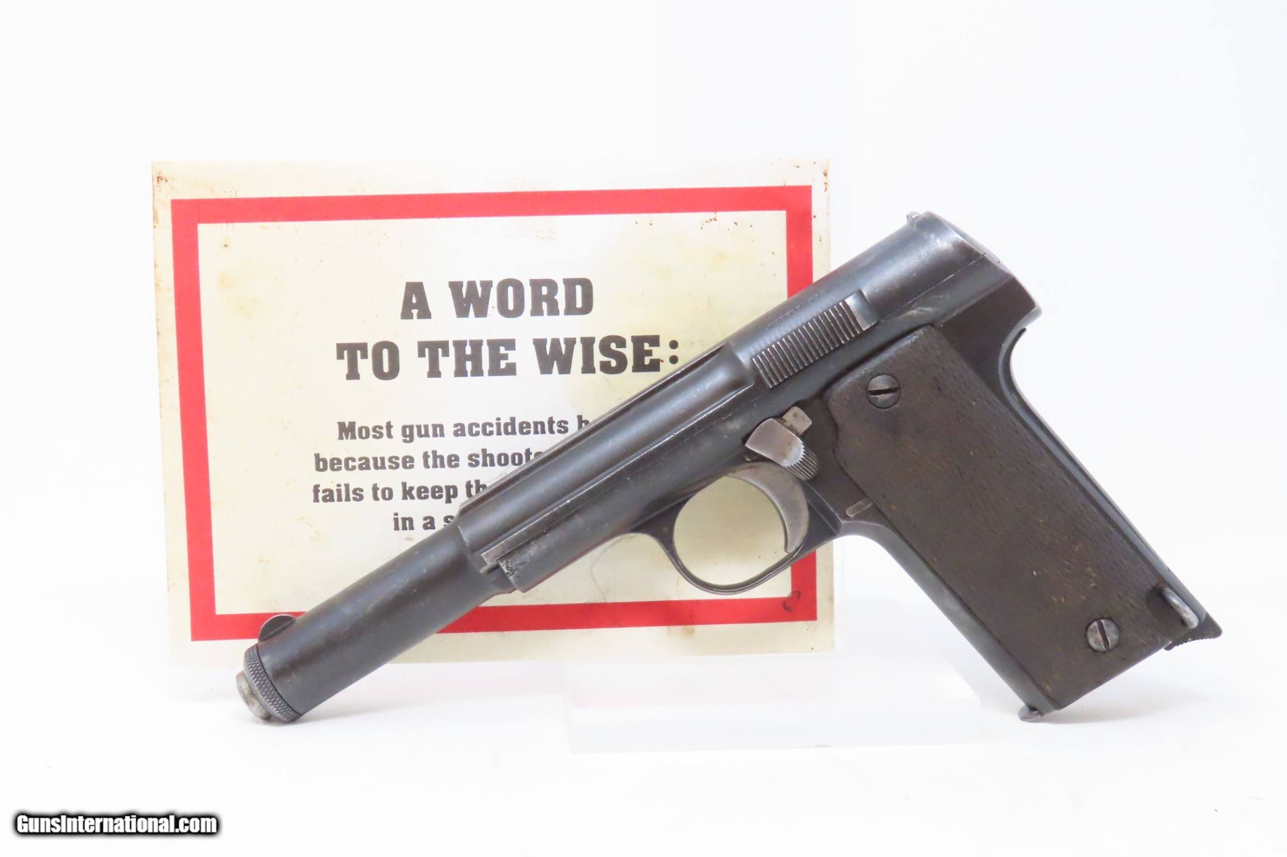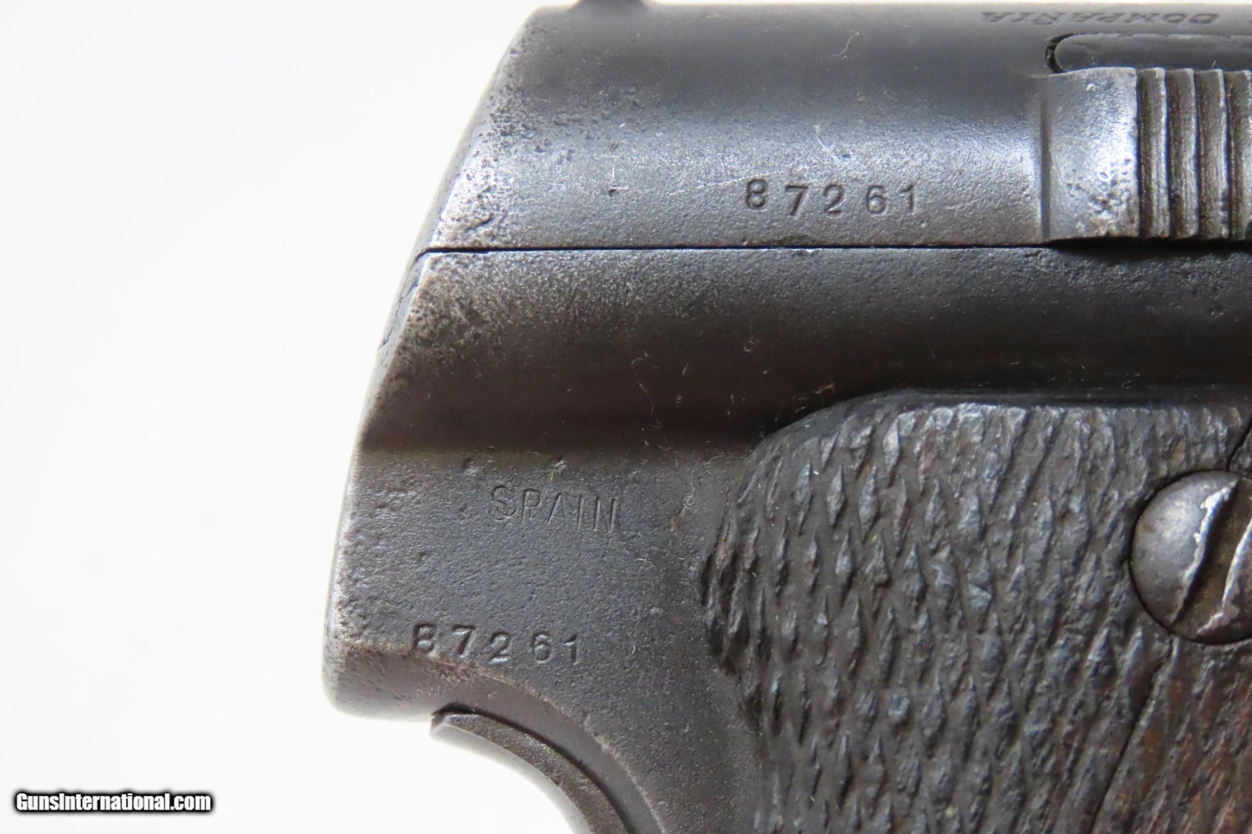 Description: Spanish ASTRA Model 1921/400 Semi-Automatic 9mm Caliber SPANISH ARMY Pistol SPANISH CIVIL WAR Era MILITARY Sidearm with BOX Here we present a C&R Spanish Astra Model 1921/400 Semi-Automatic Pocket Pistol chambered in 9mm Largo and made circa the 1930s. The Spanish War Ministry of King Alfonso XIII began tests in 1919 to replace the Campo Giro pistol as the standard military sidearm. The 9mm Largo Astra Model 400, patented by Pedro Careaga, was selected for the Spanish Army in August 1921, and was also adopted by other Spanish Armed forces. The Astra Model 400 was a Spanish service pistol produced by weapons manufacturer Astra-Unceta y Cia SA. as a replacement for the Campo-Giro 1913/1916, which had also been chambered in 9mm Largo. It was the standard issue sidearm in the Spanish Army during the Spanish Civil War and also saw service in Germany during World War II. The Spanish Navy, along with the German Luftwaffe and the Chilean Navy primarily used the smaller variant Astra 300 and the Wehrmacht later altered the Astra 400 into the Astra 600 to better handle the 9mm Luger. The Model 400 was considered heavy as in order to handle the power of the 9mm Largo round in a blowback action pistol. It gained fame among Spanish Civil War veterans as a strong very reliable pistol, especially under mud and sand conditions, thanks to its hidden hammer, sealing its mechanism from the external elements and its forged slide and frame construction. Underrated in the past by some American gun experts, who in general had a poor view on Spanish guns because of its origin and its “tubular” “water pistol” looks, the pistol is today an interesting collector piece, and much appreciated specifically among German collectors. In addition, it is also an accurate service pistol for target shooting, thanks to its low axis over the hand. A powerful pistol, original 9mm largo Spanish military loads were on a par with .38 Super factory loads. The overall condition is good. Refinished. The action is excellent. The bore is in good shape with strong rifling. The grips are dark and well-used. The numbers match. This firearm is classified as a Curio & Relic. Barrel is 6 inches. Caliber: 9mm Largo Overall condition as seen in photos. Very Fast. Very Safe. FREE SHIPPING. Will need to be sent to your local FFL or C&R licensee. This firearm is classified as a Curio & Relic. Guaranteed AUTHENTIC & Includes CERTIFICATE OF AUTHENTICITY. ancestryguns $1100 #220701 SOLD Curio/Relic: Yes |
