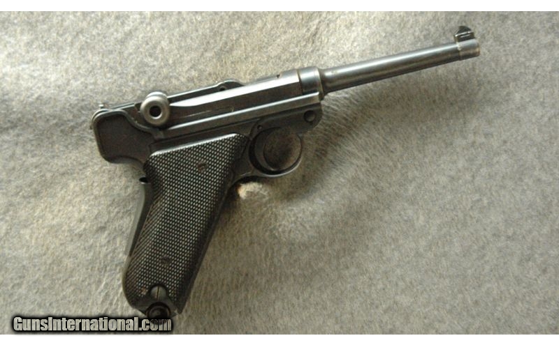 Description: Swiss Bern 1929Pattern Luger.30 Luger.The 1929 pattern luger is unique in that it has a straight grip frame and smooth safety lever, take down lever, magazine release and toggles. This particular model was made for the Swiss Military (serial number has no letter prefix) and chambered for the .30 Luger. It features matching serial numbers and has a correct magazine. 29,940 were made between the years of production of 1930 to 1947. SOLD Chambers: Semi-auto. Metal Condition: Very good, some finish wear, small nicks and scratches. Wood Condition: Grips are in very good condition. Barrels: 4 1/4". Triggers: Toggle link action with grip safety. Sights: Iron sights. Item Location: La Vista, NE |
