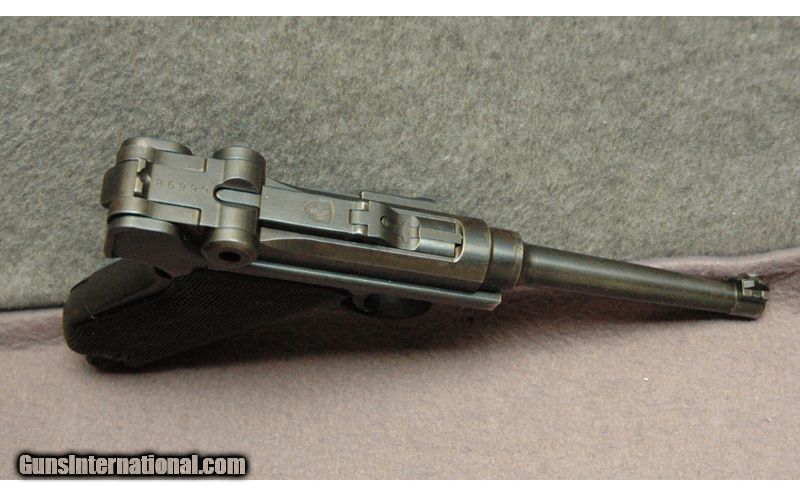 Description: Swiss Bern 1929Pattern Luger.30 Luger.The 1929 pattern luger is unique in that it has a straight grip frame and smooth safety lever, take down lever, magazine release and toggles. This particular model was made for the Swiss Military (serial number has no letter prefix) and chambered for the .30 Luger. It features matching serial numbers and has a correct magazine. 29,940 were made between the years of production of 1930 to 1947. .30 Luger/7.65mm Para. SOLD Curio/Relic: Yes Chambers: Semi-auto. Metal Condition: Very good, some finish wear, small nicks and scratches. Wood Condition: Grips are in very good condition. Barrels: 4 1/4". Triggers: Toggle link action with grip safety. Sights: Iron sights. Item Location: La Vista, NE |
