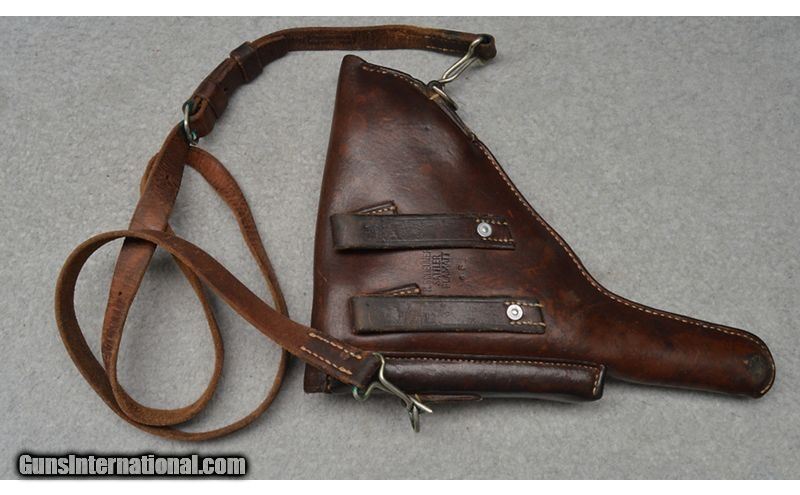 Description: Swiss Luger 1929 chambered in 7.65mm caliber is in good condition. It features a 4 3/4" barrel with fixed front and rear sights, a blued finish, and a checkered hard rubber grip panels and a grip safety. It retains approximately 85-90% finish, has some handling marks, and fine patches of pitting. It includes a leather holster with K. Scheuner stamped on the back. The holster shows signs of use as well. SN : 57370 .30 Luger/7.65x21 Parabellum SOLD Curio/Relic: Yes Metal Condition: Good Bore Condition: Clean and shiny Barrels: 4 3/4 Butt Pad: Checkered hard rubber grip panels Weight: 2 lb 1 oz Sights: Fixed Item Location: Fort Worth, TX |