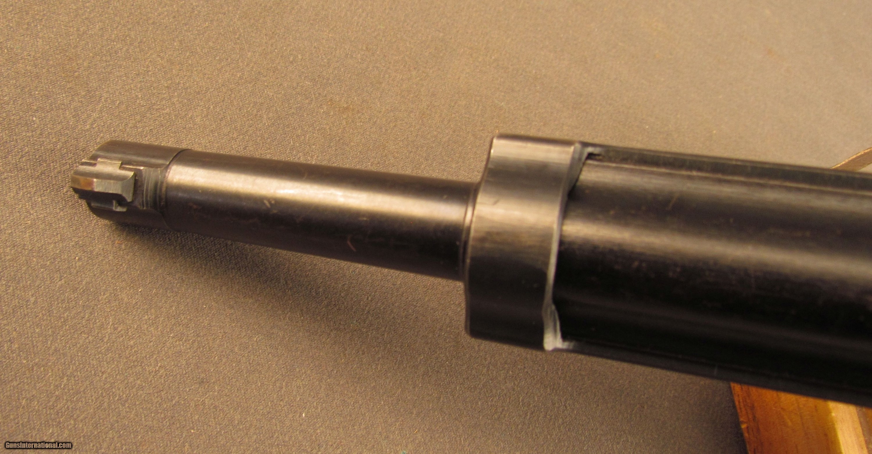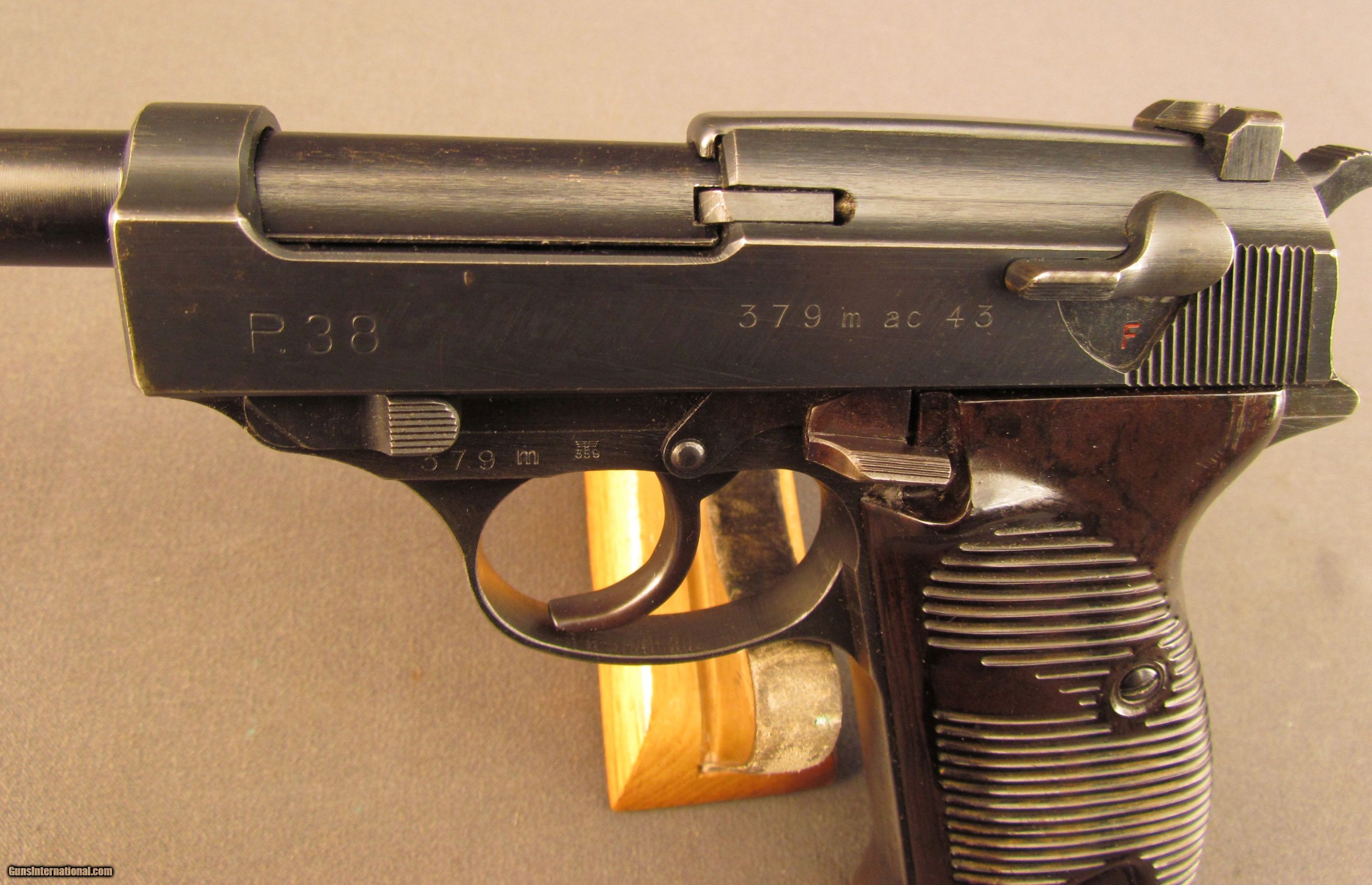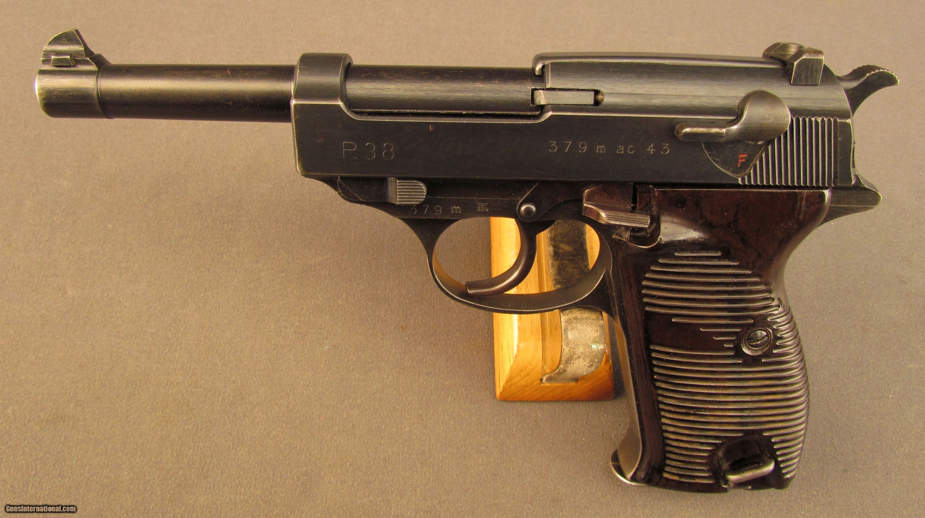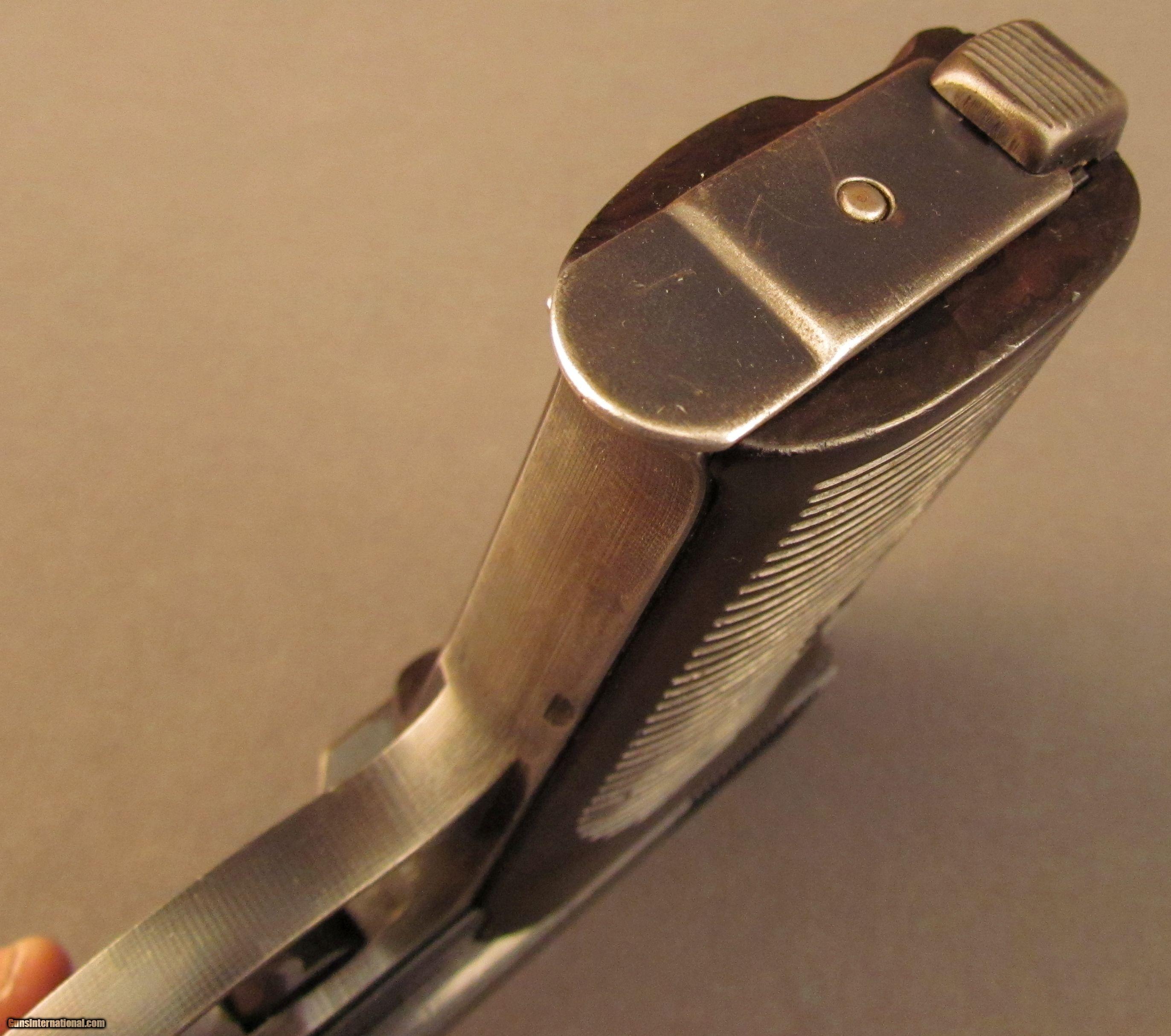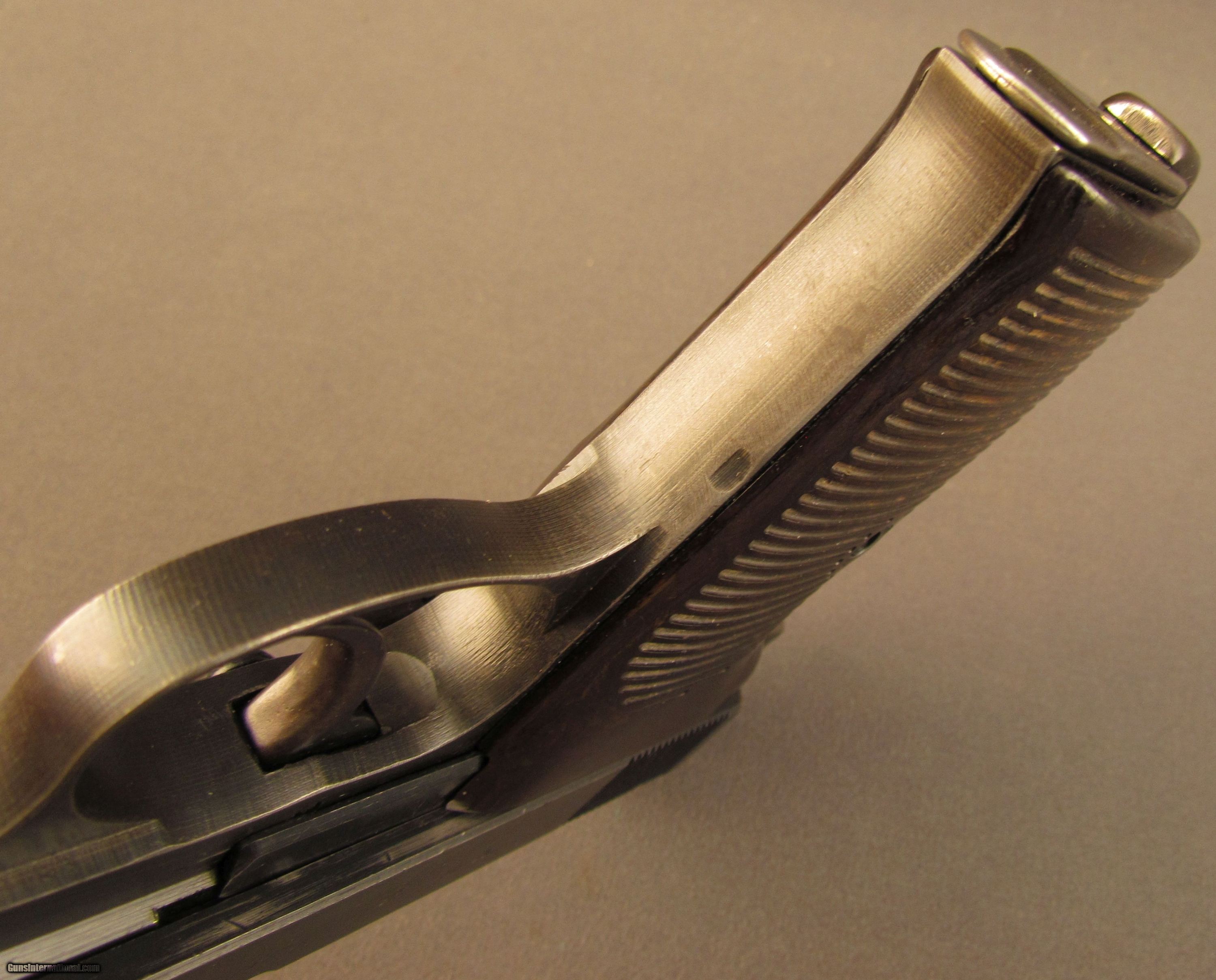 Description: Serial #378m, 9mm Para., 5” barrel with a fine, bright bore that has some mild freckling within the grooves. This is an “ac/43” coded pistol that has matching numbers on the frame, slide, barrel, and locking block with the metal retaining about 95-97% of the original blue that has faded slightly at the muzzle and projecting edges. The pistol is mechanically excellent and functions flawlessly, while the mottled dark brown phenolic resin grips are fine shape with only minor wear and negligible surface scratches presenton either side. The pistol comes with a single Waffenamt marked magazine which matches the condition of the pistol. This is a nice wartime P.38 that looks good and is in fine-near excellent overall condition. FFL or C&R SOLD Curio/Relic: Yes Manufacturer: German Model: P.38 Serial Number: 378m Caliber Info: 9mm Gauge Info: 9mm |