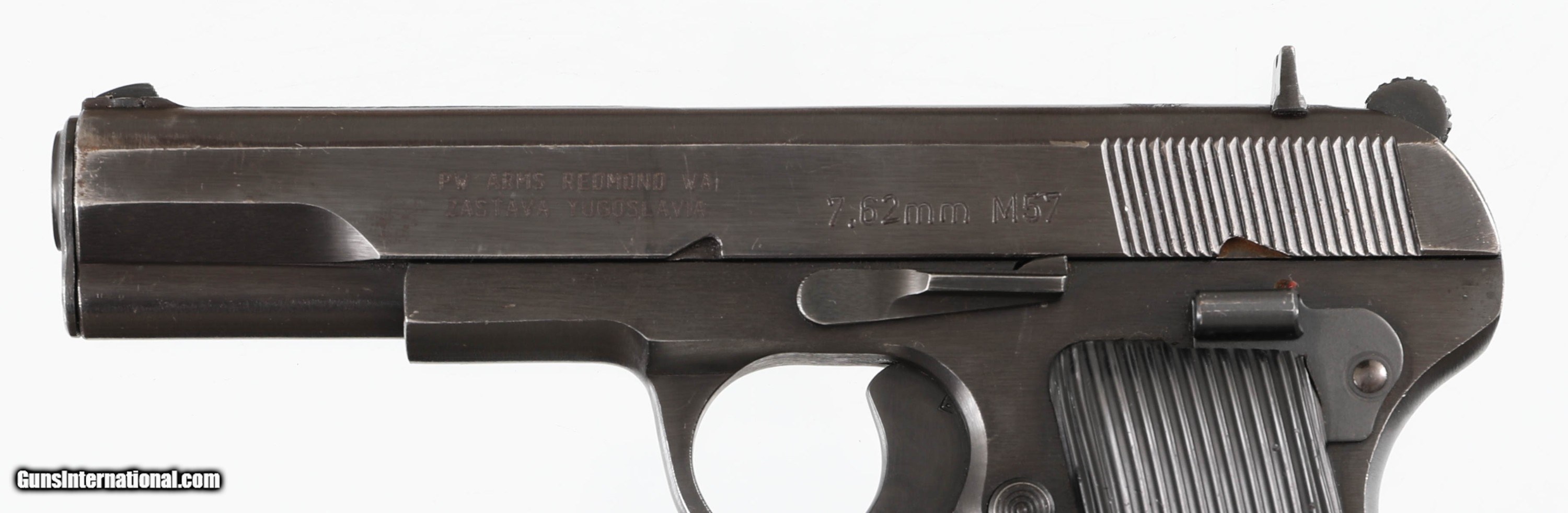 SOLD Handgun Caliber: 7.62x25mm Tokarev Manufacturer: ZASTAVA Model: M57 Serial Number: 1-2293?? Barrel Length: 4 1/2 Condition: VERY GOOD |