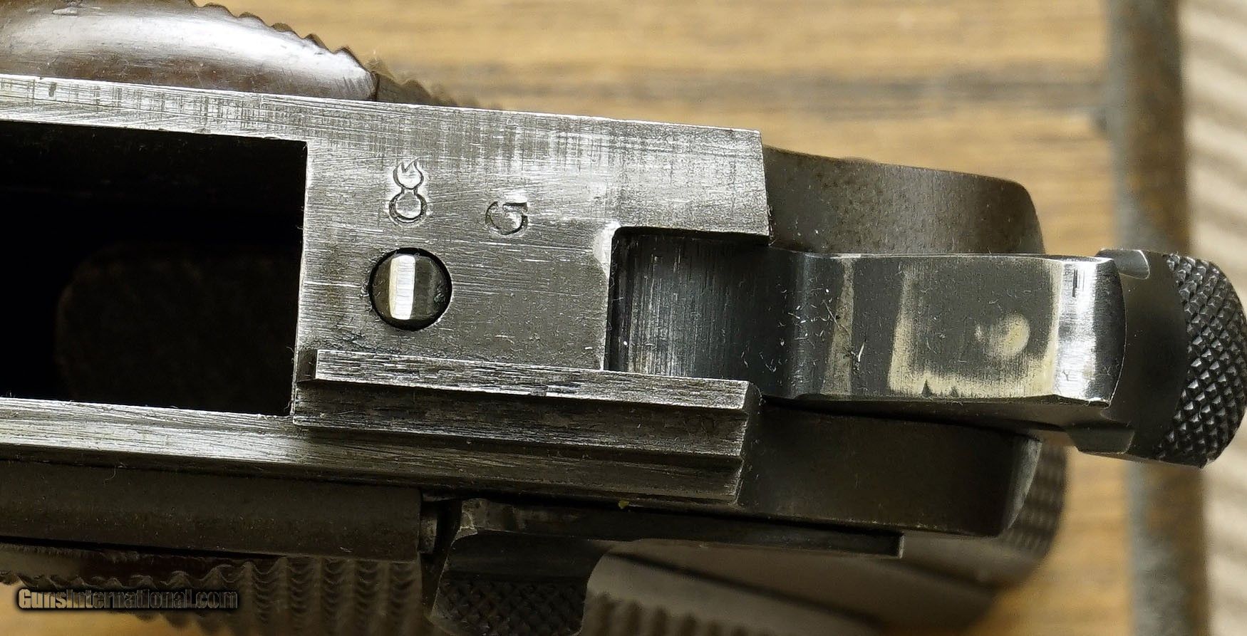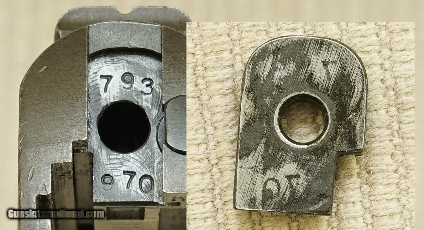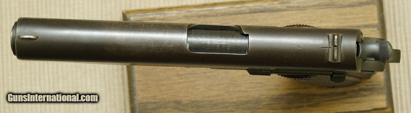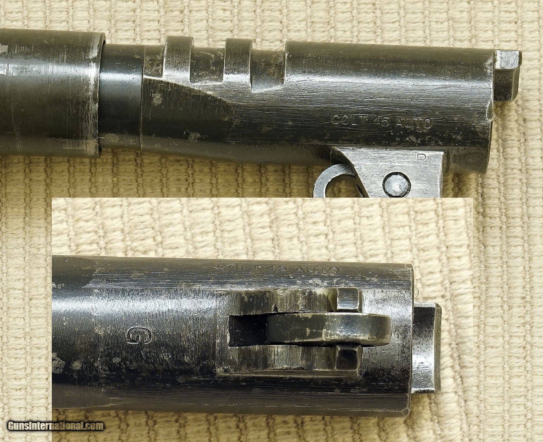 Description: For sale is a Colt pistol delivered on July 24, 1942 to the US Navy Supply Depot in Oakland, CA in support of the Pacific War. See attached Colt letter for shippment details. Pistol has matching numbered slide and receiver. Correct Colt large G barrel and checkered small parts. Flaming bomb emblem and G stamped on receiver near disconnector hole. Coltwood grips with hollow back and mold numbers. Colt magazine unmarked with pinned base. Original parkerized finish showing some patina.. High edge wear consistent with holstering in M1916 style holster. This is an original condition WWII Navy that has not been modified or mismatched (slide & receiver) during the last 80 years. See pics for details and judge it for yourself. Email or call/text for additional info or photos. See my other listing for a very nice 1945 Boyt M7 USMC shoulder holster. Need FFL or C&R license to ship SOLD Curio/Relic: Yes Handgun Caliber: .45 ACP (.45 Auto) Manufacturer: Colt Model: M1911A1 Condition: Very good |
