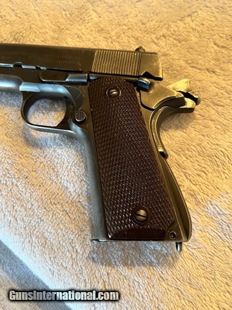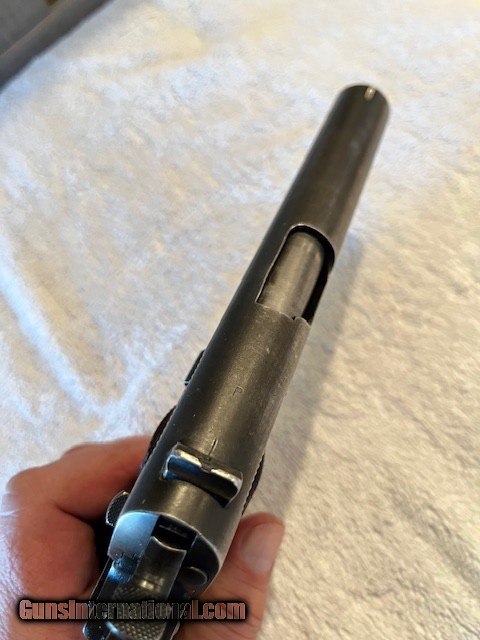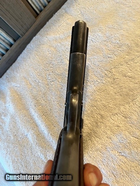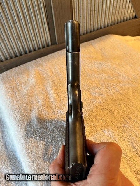 SALE PENDING Description: Very good shape and all original, I'd say the finish is about 80% showing high edge wear, front strap wear and some thinning at different spots. Barrel is correct and marked Colt 45 auto, slide is not numbered, but had stopped numbering them in serial number range. Grips are original as well as all small parts, mag is a replacement, but I hope to find the original before I ship. No pitting just finish wear and some light scratches. $25 shipping FFl to FFL Zelle, Cashiers, USPS MO, Credit/Debit add 3% Handgun Caliber: .45 ACP (.45 Auto) Price: $2,495.00 Shipping: $25.00 Contact Seller |