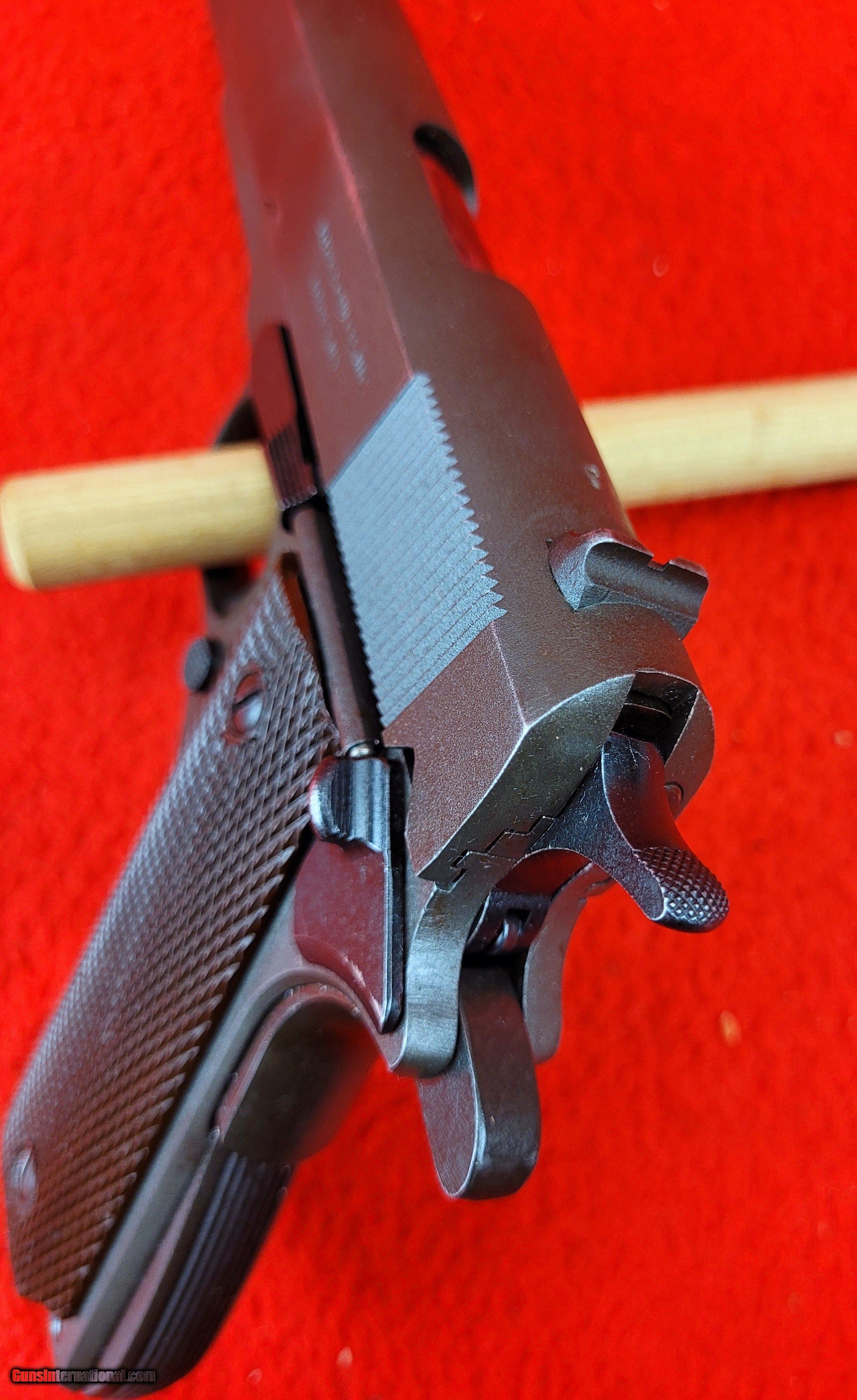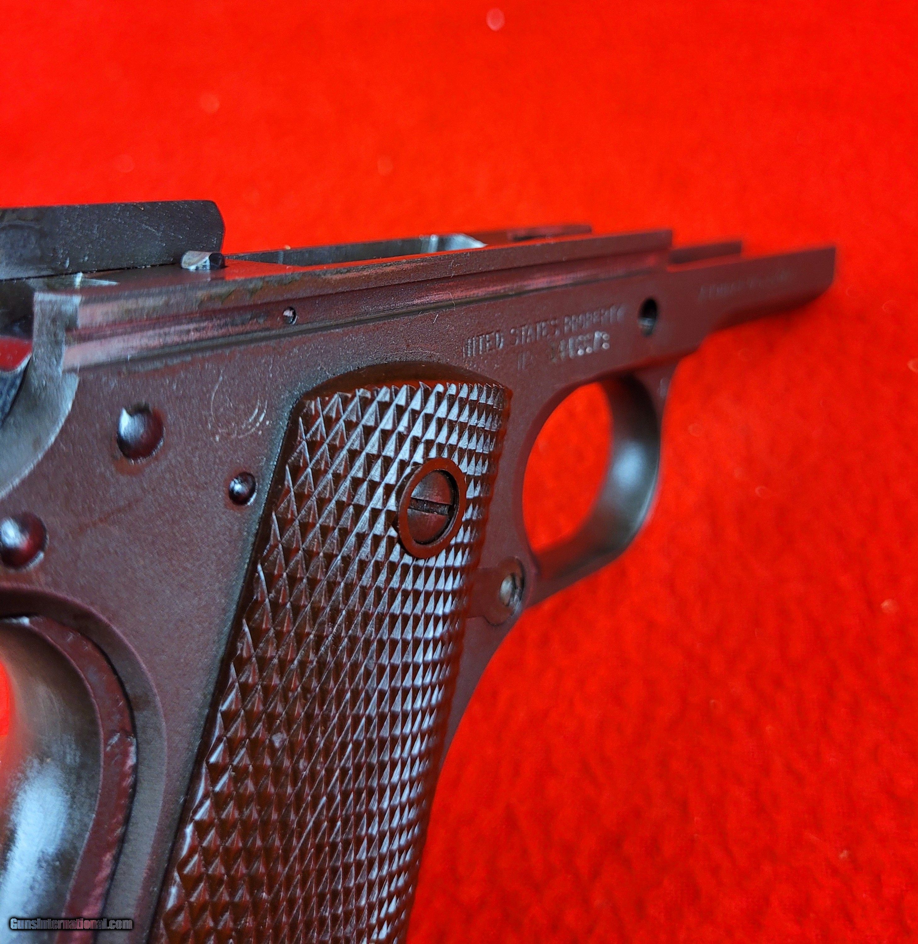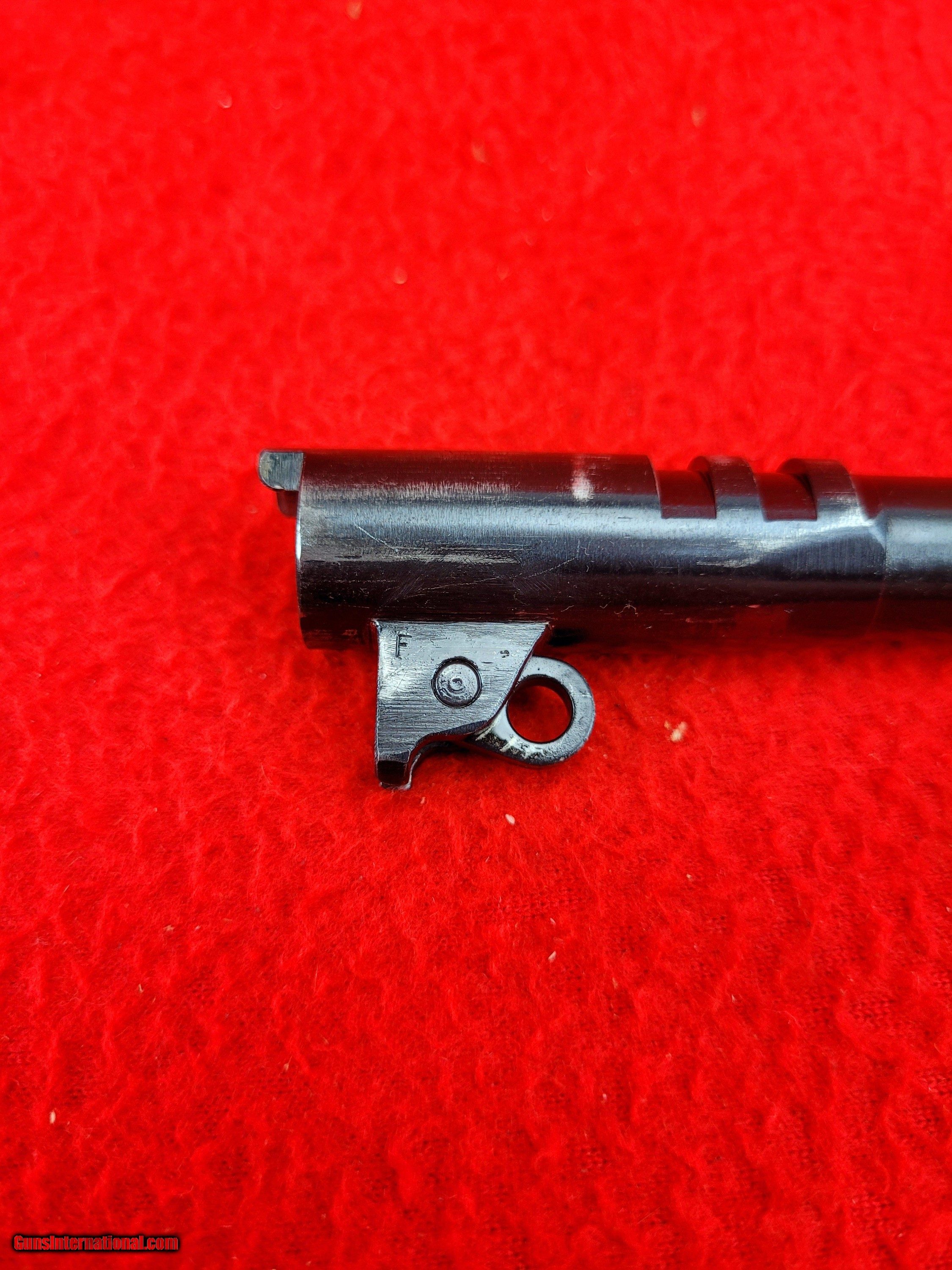 Description: United States Property 1911A1 Ithaca May 1944 Production – Serial Number 1445573 For your consideration is an all original and matching Ithaca 1911 A1 Manufactured in May of 1944. This pistol was shipped to either Ogden Arsenal or Benicia Arsenal in Army Point, CA. Overall condition is very good with some moderate holster wear and some wear just forward of the rear sight. Parkerized finish rates 90%+ All small parts are Ithaca production, and the matching early Flannery barrel has mirror wear patterns in the barrel bed and frame. This pistol has been together for its entire life judging from wear pattern. Slide and frame also have matching “Flaming Bomb” inspectors marks. This would make an excellent collector piece and investment. Please reach out for additional pictures and information. Price - $2600 + Shipping Payment By Personal Check, Bank Certified Funds, Money Orders SOLD Manufacturer: Ithaca Model: 1911A1 Serial Number: 1445573 |