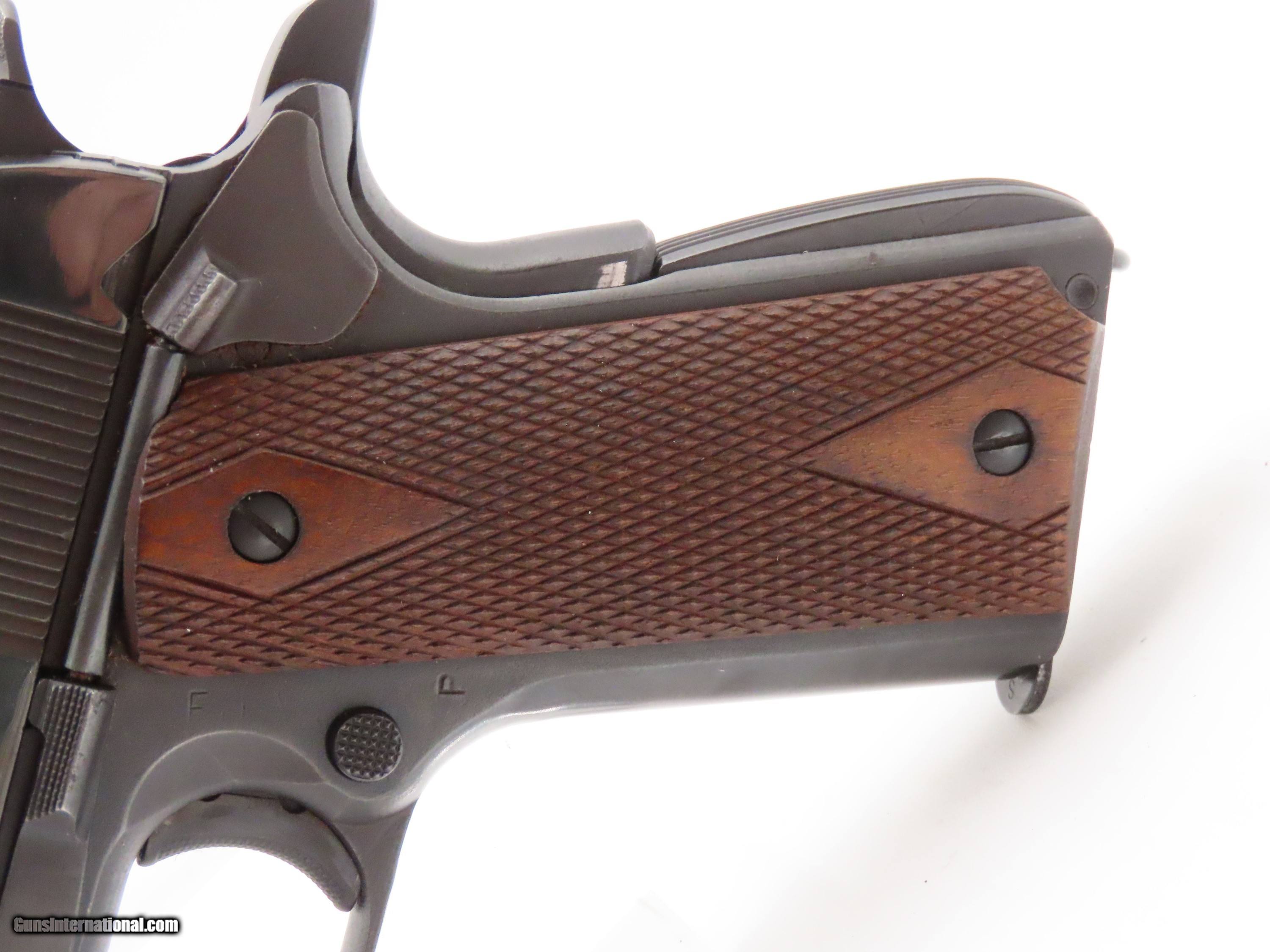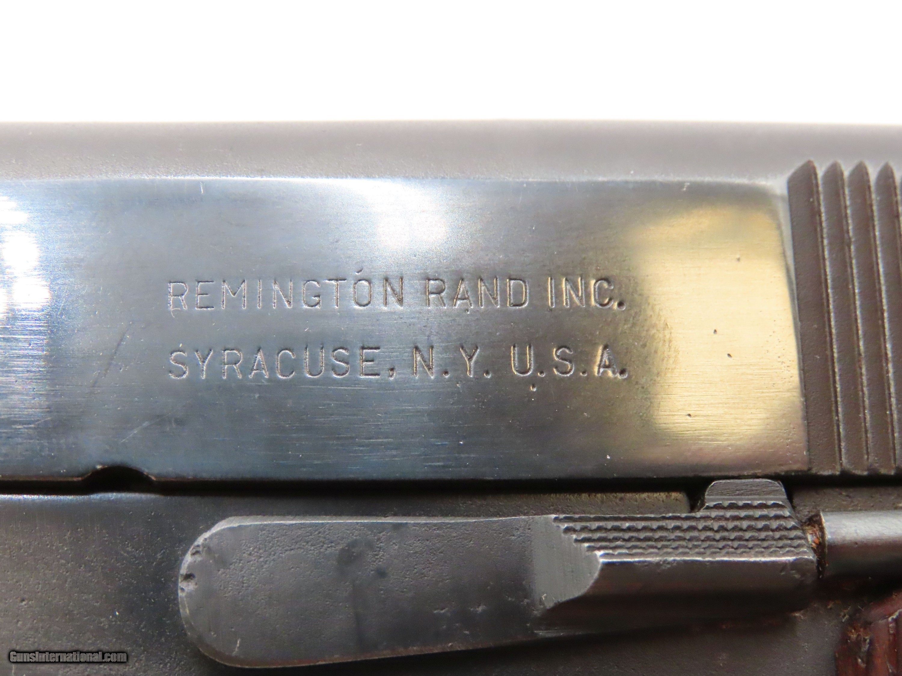 Description: 1944 mfr. World War II U.S. PROPERTY REMINGTON-RAND M1911A1 ARMY Pistol C&R UNITED STATES ARMY Model Chambered in .45 ACP Here we present a C&R Remington-Rand Model of 1911A1 U.S. Army Pistol, made in 1944 in Syracuse, New York. John Moses Browning’s famous pistol was adopted by the U.S. government in 1911 and attained iconic status throughout both World Wars, Korea, Vietnam and beyond. This one was made in the middle of World War II. The Model 1911 series of pistols is one of the most successful small arms designs of the 20th century, and in all of modern warfare history, for that matter. The handgun has been produced in quantity in the United States, Argentina, and Norway (the latter two under license production as the M1914 and the M1927 respectively) and was fielded in both World Wars and many of the major and minor conflicts of the century, eventually becoming a commercial success. The Model 1911 continues service in many forms today and is still a favorite among sporting, security, and casual gun lovers all over the world. When World War II broke out, Remington-Rand had been a typewriter company for 55 years. Nevertheless, the United States needed war material and many manufacturers were pressed into service building things that they had never built before for the war effort. But why didn’t Uncle Sam get Remington Arms to build the pistols? The answer is really pretty simple. The War Department needed Remington Arms to do what it did best and that was to produce ammunition. Other folks could crank out the pistols. Remington Rand was awarded its first order on March 16th, 1942, for a total of 125,000 1911A1 pistols. The company had no experience building pistols at the time it was awarded the contract. Remington Rand formed a new division to take charge of building the pistols. The division formed was designated Remington Rand “C” Division. After winning the contract, they converted a vacant plant once used for building typewriters to the production of M1911A1 pistols. The old plant was located on Dickerson Street in Syracuse, N.Y. By March of 1945 they were building the lowest price pistol in the war effort and quality was considered second to none. By the end of the war Remington Rand had produced over 875,000 pistols, almost twice as many as Colt and Ithaca combined. The overall condition is very good. Nicely refinished in blue. The action is excellent. The bore is bright with good rifling. The stocks are solid with nice checkering. FJA inspection markings on the frame along with “RIA” under the serial number. Own the original. This firearm is classified as a Curio & Relic. Barrel is 5 inches. Caliber: .45 ACP Overall condition as seen in photos. Very Fast. Very Safe. FREE SHIPPING. Will need to be sent to your local FFL or C&R licensee. This firearm is classified as a Curio & Relic. Guaranteed AUTHENTIC & Includes CERTIFICATE OF AUTHENTICITY. $2950 #257012 Curio/Relic: Yes Price: $2,950.00 Buy Now Pay with ![]() Contact Seller |
