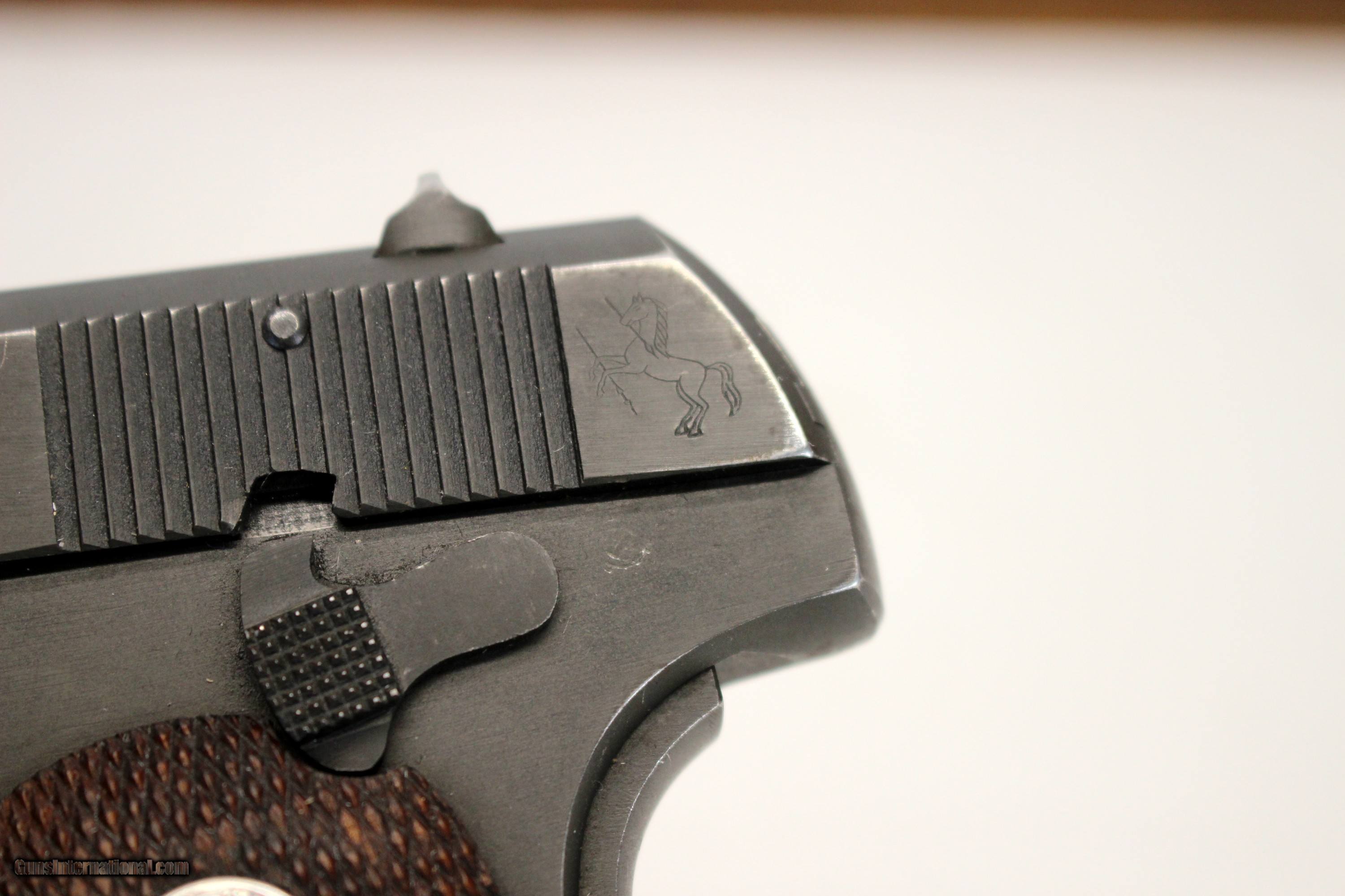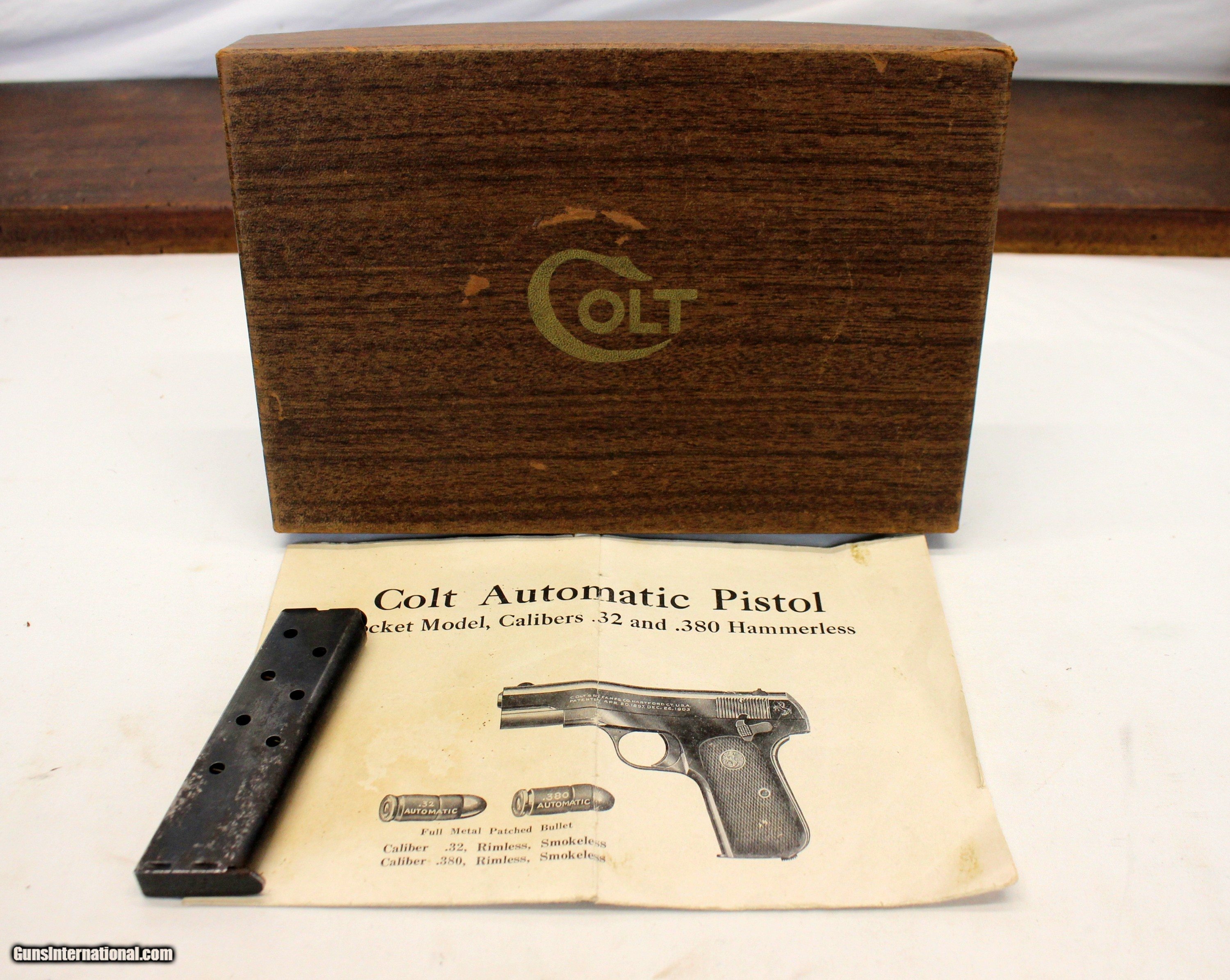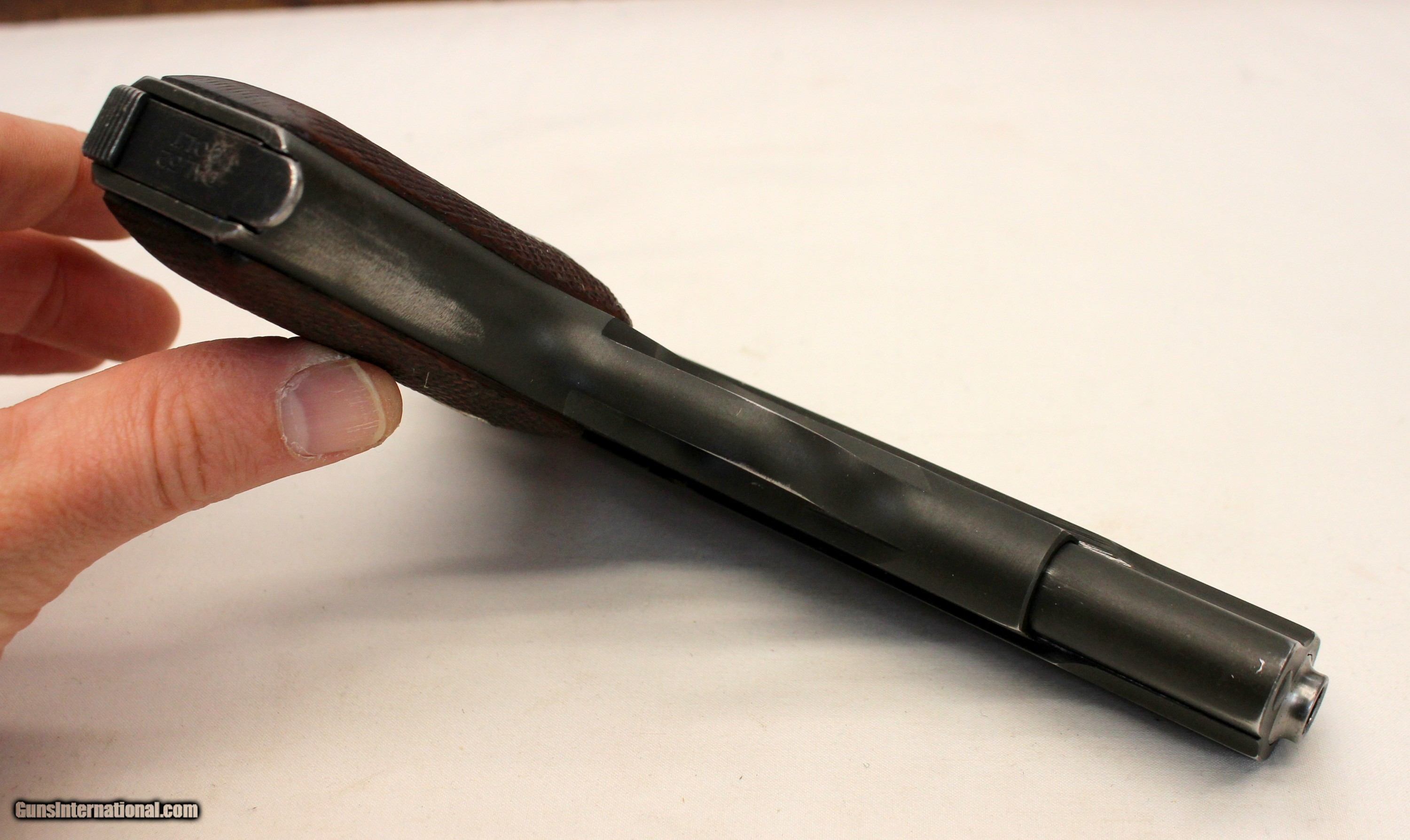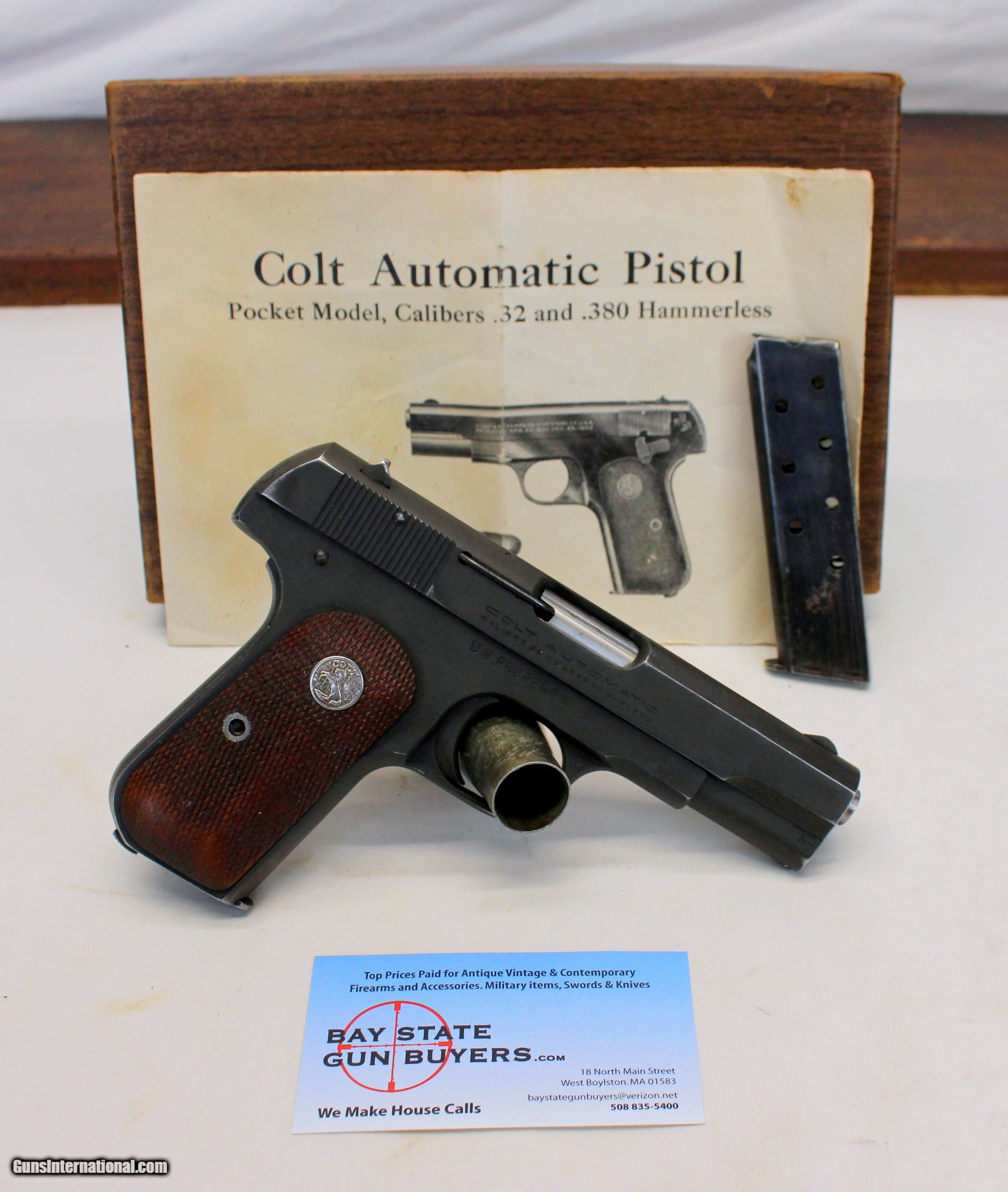 Description: We are offering a very collectible example of a rare Colt Model 1903 that was made in 1945 and issued to the U.S. military. It is accompanied by an original Colt 1903 manual, extra magazine and vintage Colt box. The gun remains in very good condition. Bore is bright with excellent rifling. Crisp Rampant Colt on slide with crossed cannons mark on frame underneath. Gun functions flawlessly without issue. Original grips are very good without damage. Gun comes with (2) original magazines, one in better condition than the other which shows some previous oxidation wear. Original manual good with age toning. Box is not original to the gun but it an early example. PLEASE SEE ALL PHOTOGRAPHS. Ships via USPS Priority for $29.95 **** PLEASE NOTE: WE ONLY ACCEPT MASTERCARD AND VISA AS PAYMENT OPTIONS (please note we charge a non-negotiable 3% CC fee) **** **** WE TAKE CREDIT CARD PAYMENT OVER THE PHONE. **** PLEASE LOOK AT ALL PHOTOGRAPHS FOR CONDITION Please know the legality of any weapon in your state before . If a gun can’t be transferred to you we will charge a 15% re-stocking fee. We are in the shop MODAY, WEDNESDAY, THURSDAY, FRIDAY and SATURDAY 8am-4pm EST. We will be in touch within 24 hours of your purchase. Please be ready to provide CC information. Please have your FFL email a copy of their license to: . No Face To Face Transfers! Please note: Clicking "buy" does not guarantee that this gun is yours, However clicking “Buy” will reserve this gun for you, if it hasn’t been sold in store. We will try to do our best to remove the posts as efficiently as possible, but sometimes delays may ensue. “Buy” is your safest bet to reserve a gun. Also please add 6.25% MA state sales tax (if from MA) and 3% credit card shop courtesy fee for all out of state buyers Before calling with concerns read these conditions and meet them accordingly. Curio/Relic: Yes Price: $4,896.00 Shipping: $24.95 Buy Now Contact Seller |