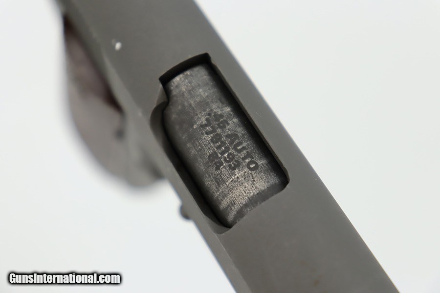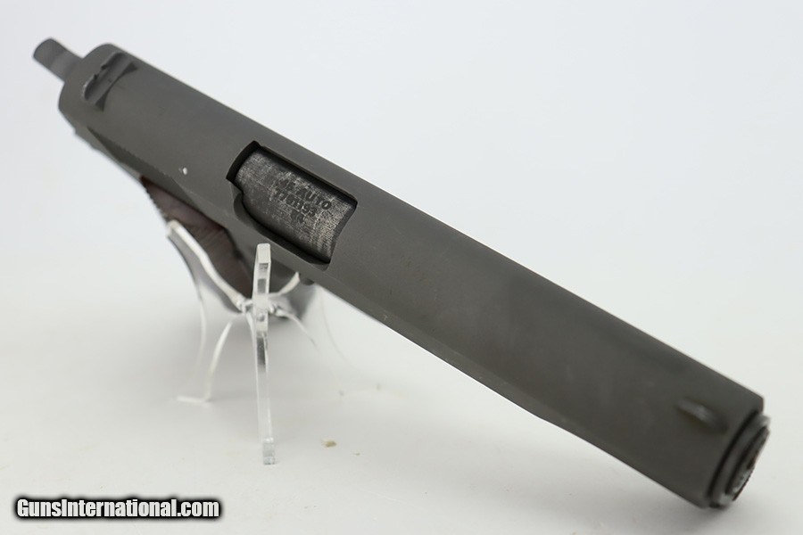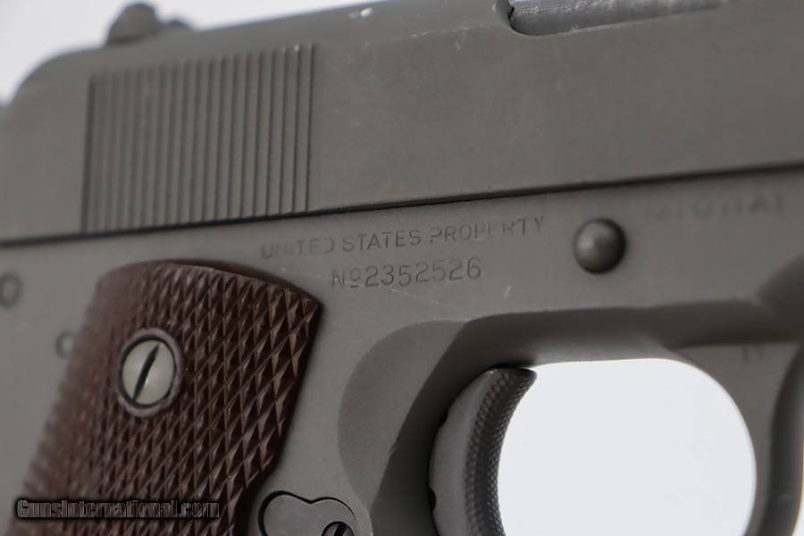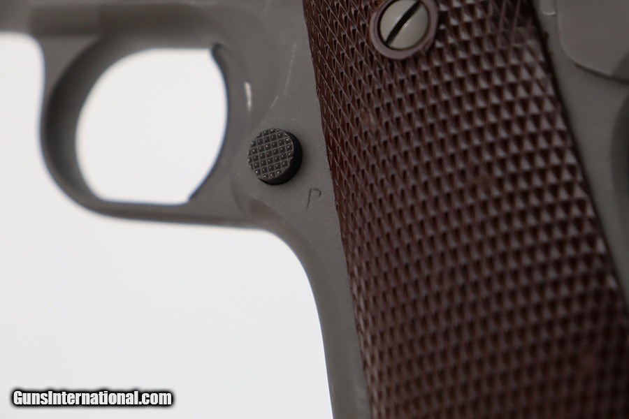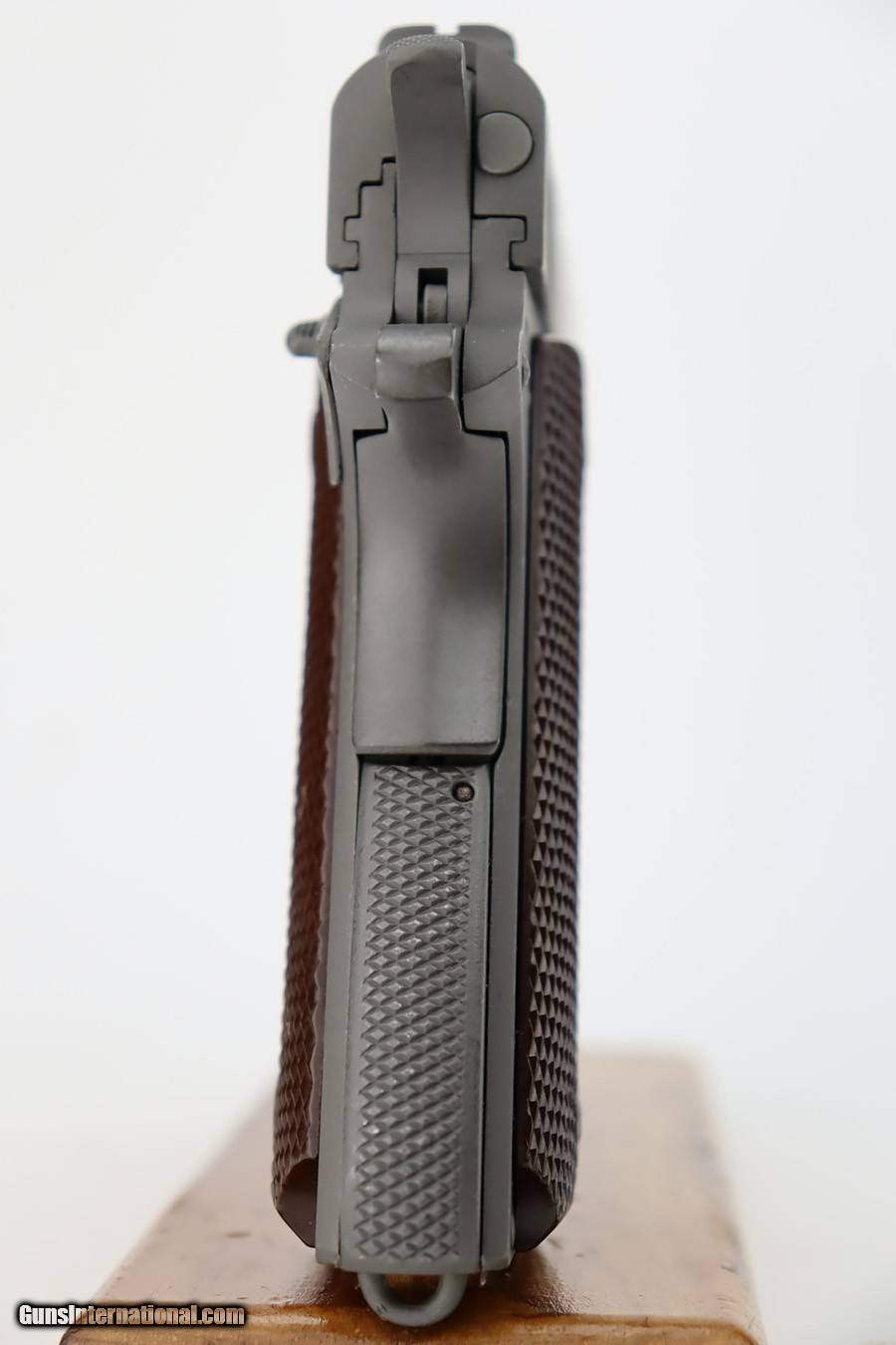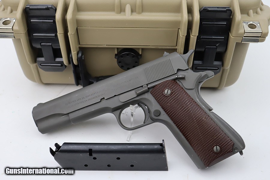 Description: This is a minty example of a Colt 1911A1 issued to the US military in 1945. It was restored and sold to the American public through the Civilian Marksmanship Program (CMP). It comes with its original CMP Certificate of Authenticity, owners manual, CMP Pelican-style case, and one post-war magazine. The gun itself has retained nearly all of its finish with just some tiny scuffs and handling marks here and there. Fitted with period-correct reddish plastic grips. Replaced barrel. The bore is mint. SOLD Curio/Relic: Yes Handgun Caliber: .45 ACP (.45 Auto) |