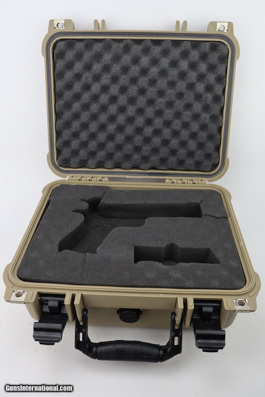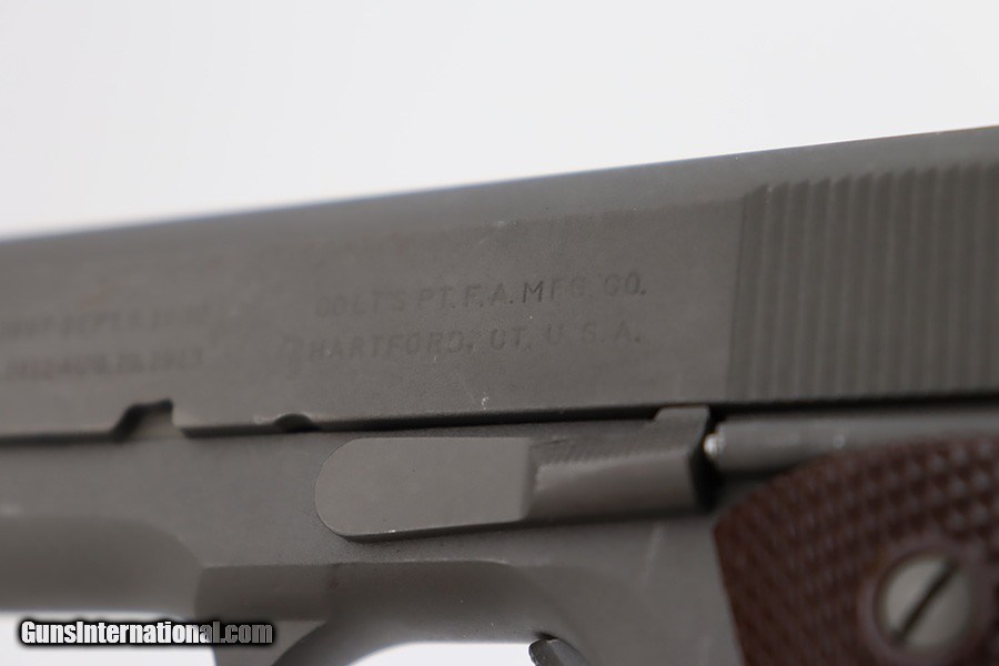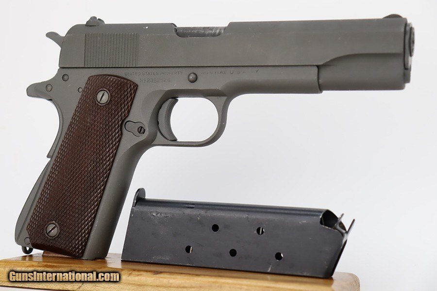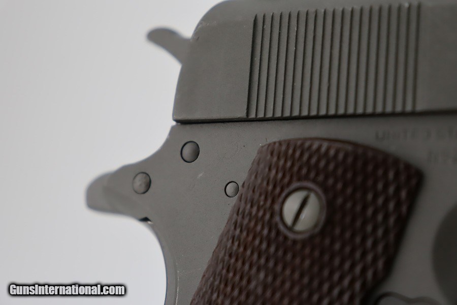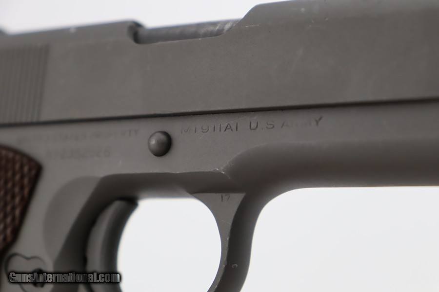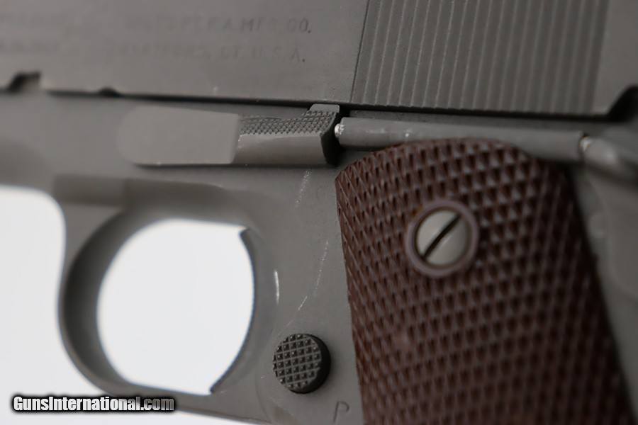 Description: This is a minty example of a Colt 1911A1 issued to the US military in 1945. It was restored and sold to the American public through the Civilian Marksmanship Program (CMP). It comes with its original CMP Certificate of Authenticity, owners manual, CMP Pelican-style case, and one post-war magazine. The gun itself has retained nearly all of its finish with just some tiny scuffs and handling marks here and there. Fitted with period-correct reddish plastic grips. Replaced barrel. The bore is mint. SOLD Curio/Relic: Yes Handgun Caliber: .45 ACP (.45 Auto) |
