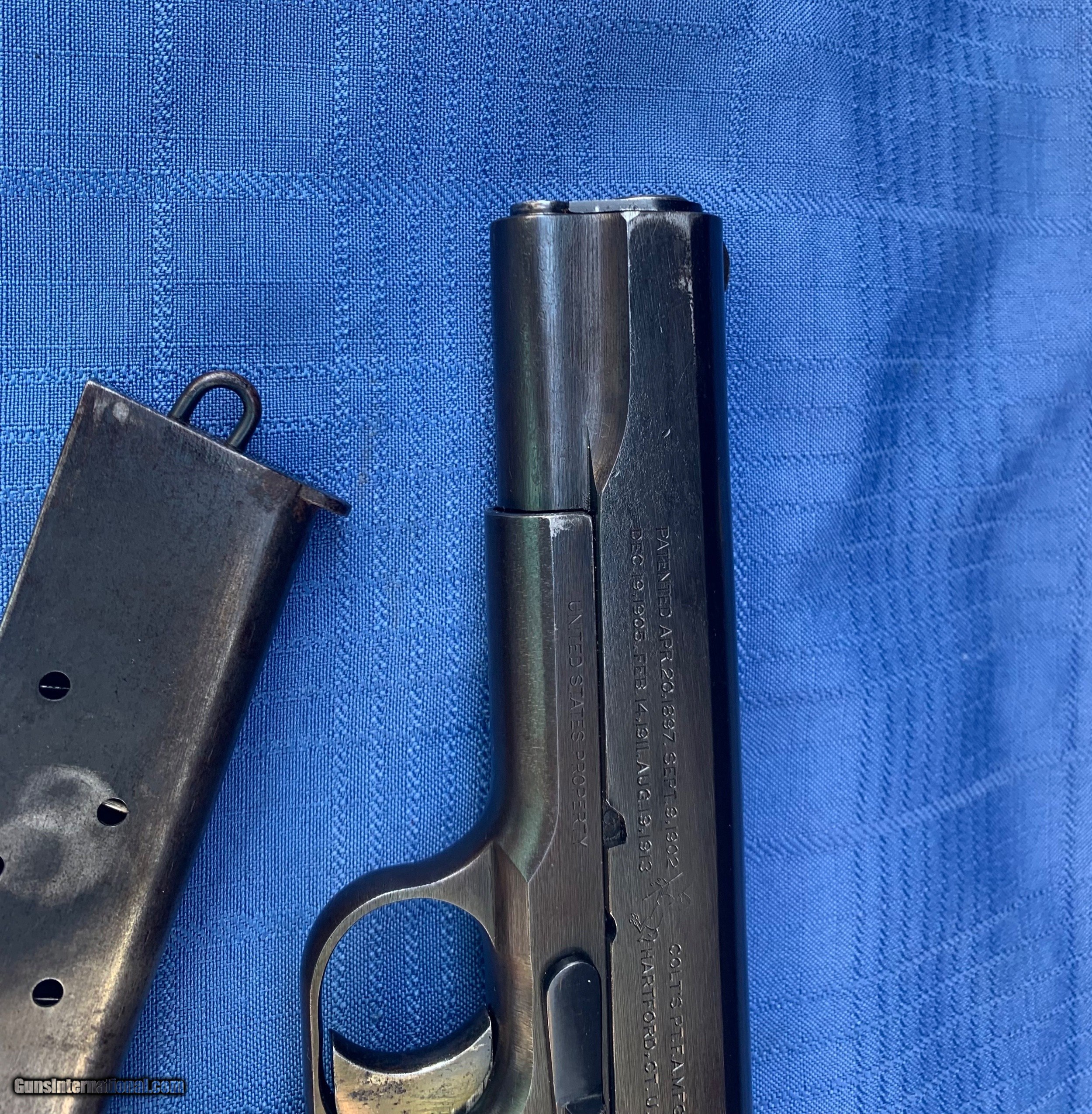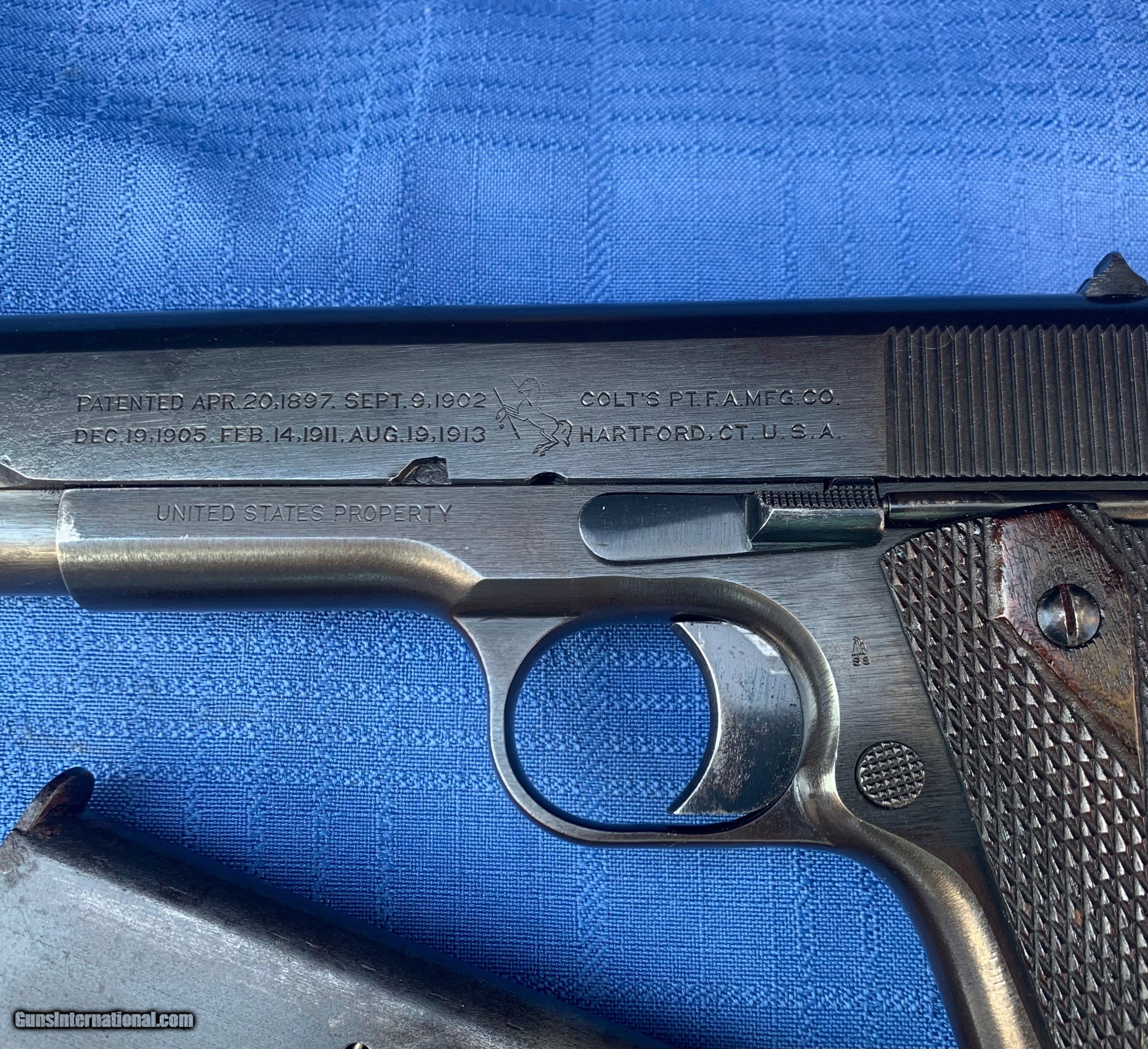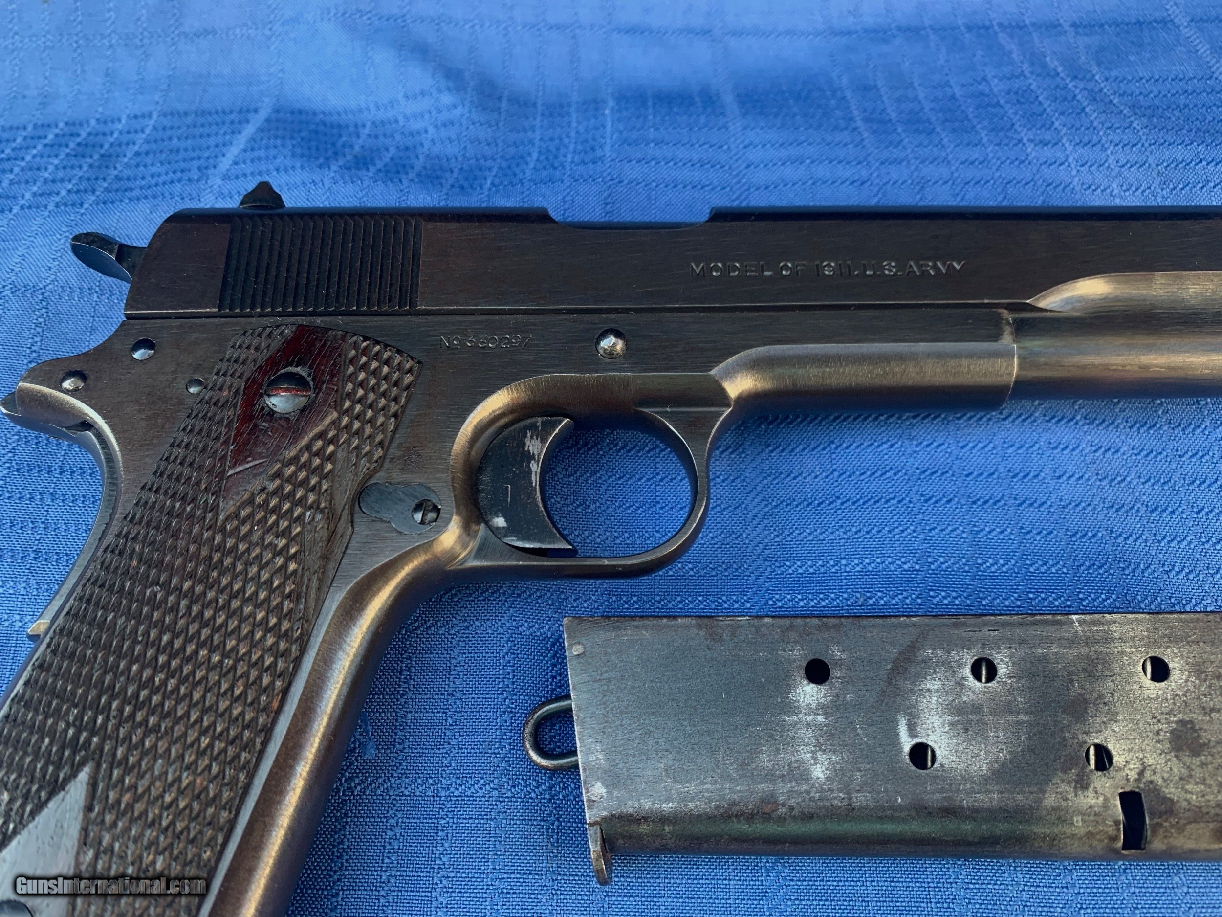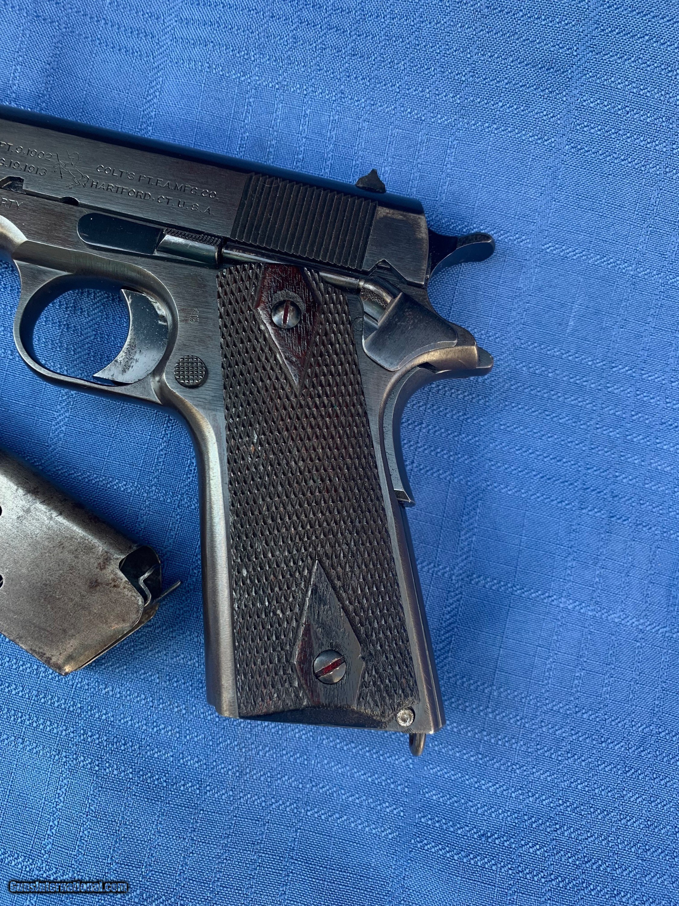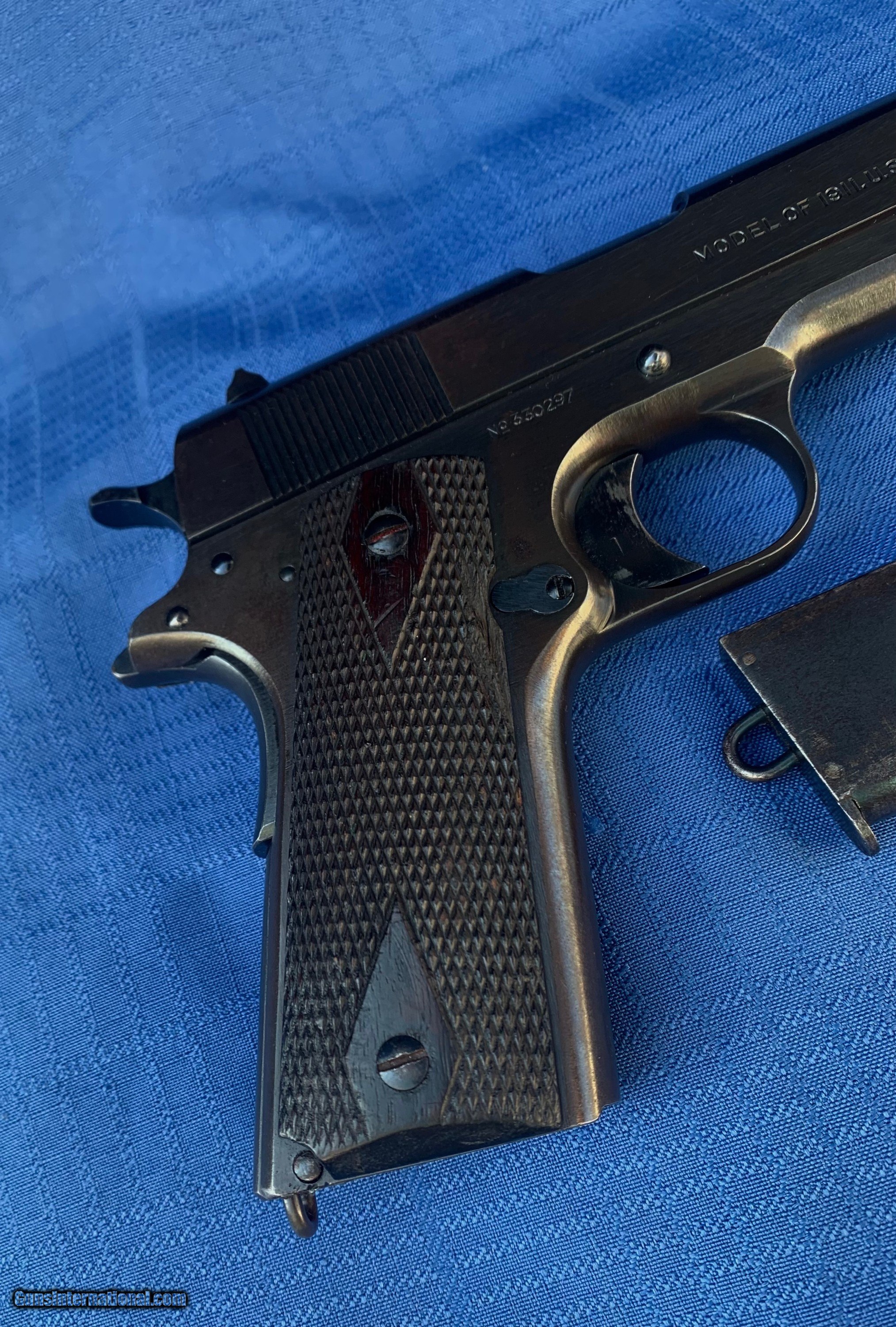 Description: Here's a Excellent Example of a Colt 1911 Black Army. Serial number 330,297 . Very sharp gun with all the correct parts ! Gun has most all of its original black army finish still remaining wit some loss due to use . All markings are very sharp . Gun has original sights . Factory wood grips are in excellent condition. Bore and mechanics are in excellent condition. Gun locks up tight and is in excellent working condition. Please review my photos and please email me with any questions ? 3 day inspection as allways! Thank you for looking, Little Jo SOLD Curio/Relic: Yes Handgun Caliber: .45 ACP (.45 Auto) Manufacturer: Colt Model: 1911 Serial Number: 330297 Condition: Excellent |