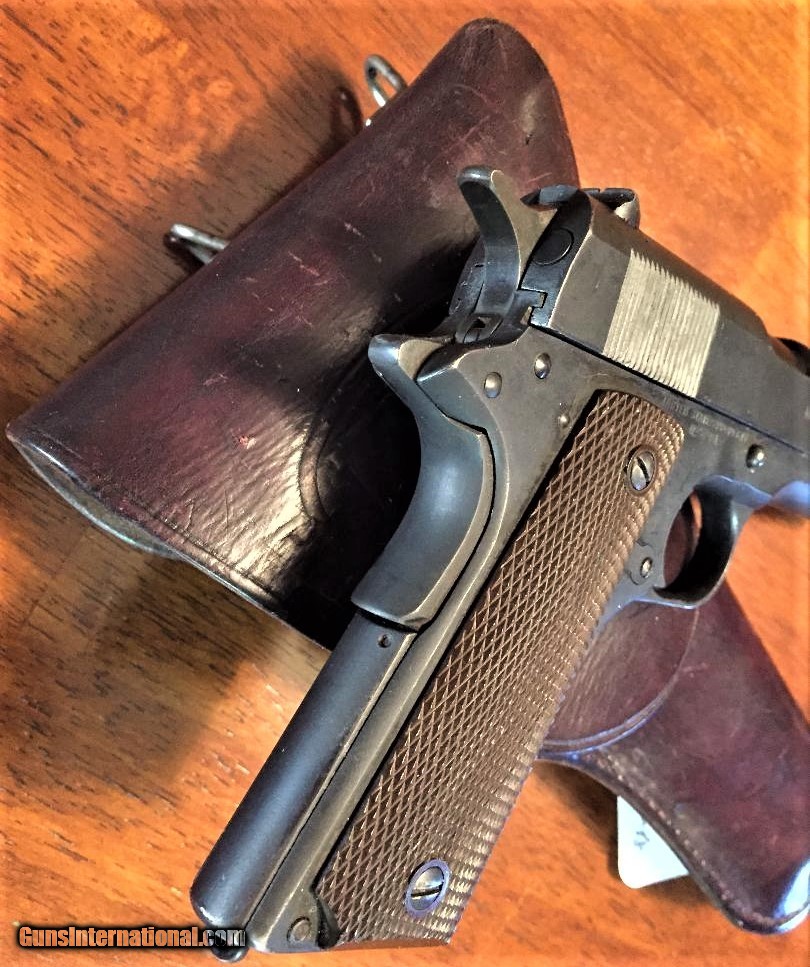 Description: Colt 1911 1919 MFG. U.S. Property Marked, Rebuild for WW-2 Augusta Arsenal marked. parkerized finish. heart cut frame. Majority of its parkerized finish, usual wear on the high edges and muzzle.Good grips. Nice period boyt holster. FFL / C&R required. $2100.00 $20.00 shipping lower 48. credit card please add 3% SOLD Curio/Relic: Yes Manufacturer: COLT Model: 1911 Serial Number: 579816 Caliber Info: 45acp Bore: good Condition: Very Good |