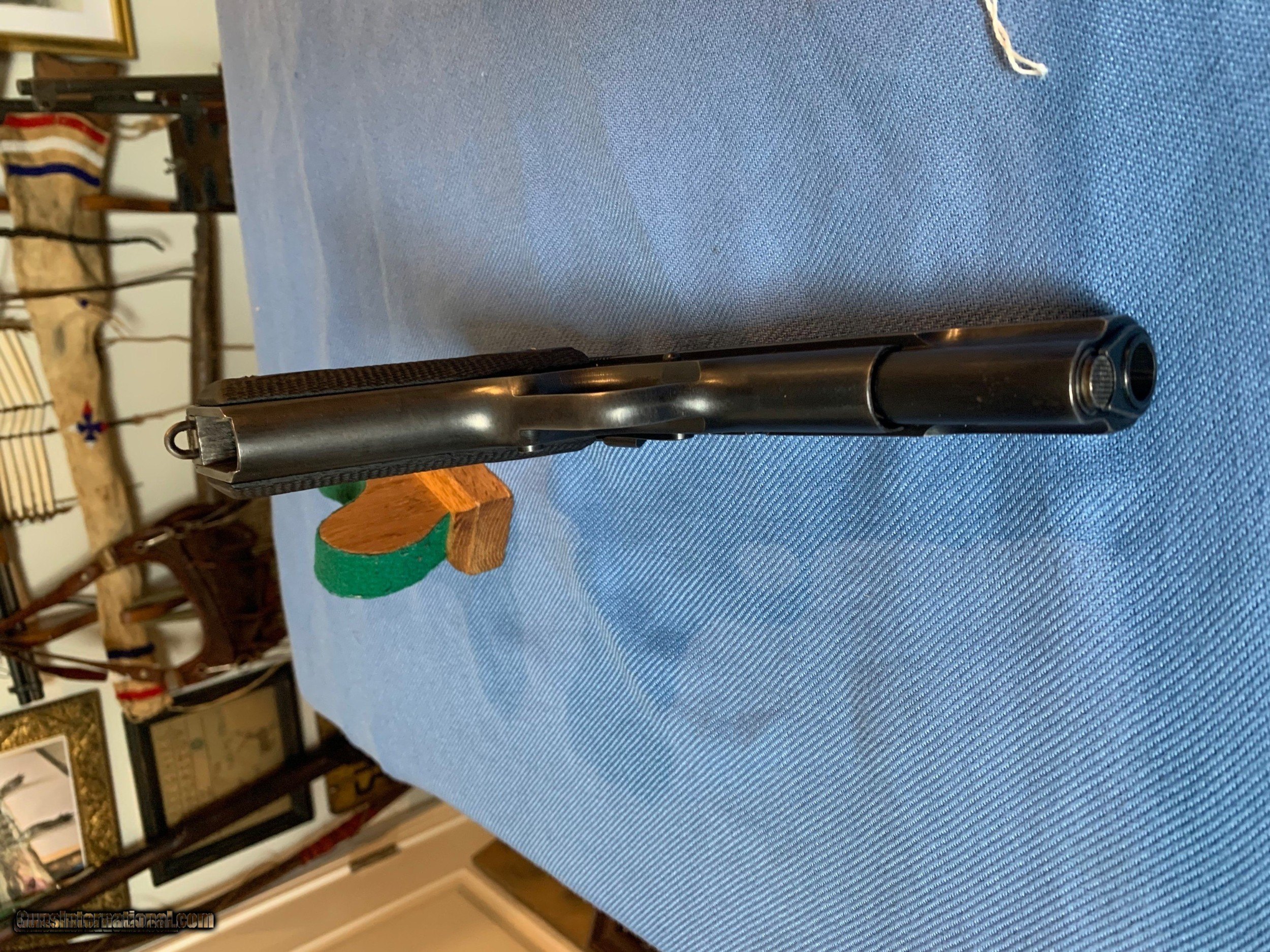 Description: EXCELLENT EXAMPLE OF A WW1 U.S. NAVY CONTRACT 1911 WITH COLT FACTORY LETTER. SHIPPED ON FEB. 11, 1918. GUN HAS MOST ALL OF ITS ORIGINAL SOLID BLUE FINISH STILL REMAINING WITH SOME THINNING TO FINISH AND SOME EDGE WEAR. GUN WAS USED BUT NOT ABUSED ! FOR A NAVY CONTRACT GUN ITS IN EXCELLENT ORIGINAL CONDITION ! GUN HAS ALL THE ORIGINAL CORRECT PARTS . BORE AND MECHANICS ARE EXCELLENT. GUN IS IN EXCELLENT WORKING ORDER. SUPER NICE NAVY CONTRACT COLT 1911 . PLEASE REVIEW MY PHOTOS AND PLEASE EMAIL ME WITH ANY QUESTIONS ? 3 DAY INSPECTION AS ALLWAYS. THANKYOU FOR LOOKING , LITTLE JO SOLD Curio/Relic: Yes Handgun Caliber: .45 ACP (.45 Auto) Manufacturer: COLT Model: 1911 Serial Number: 233,398 Condition: EXCELLENT Bore Condition: EXCELLENT |