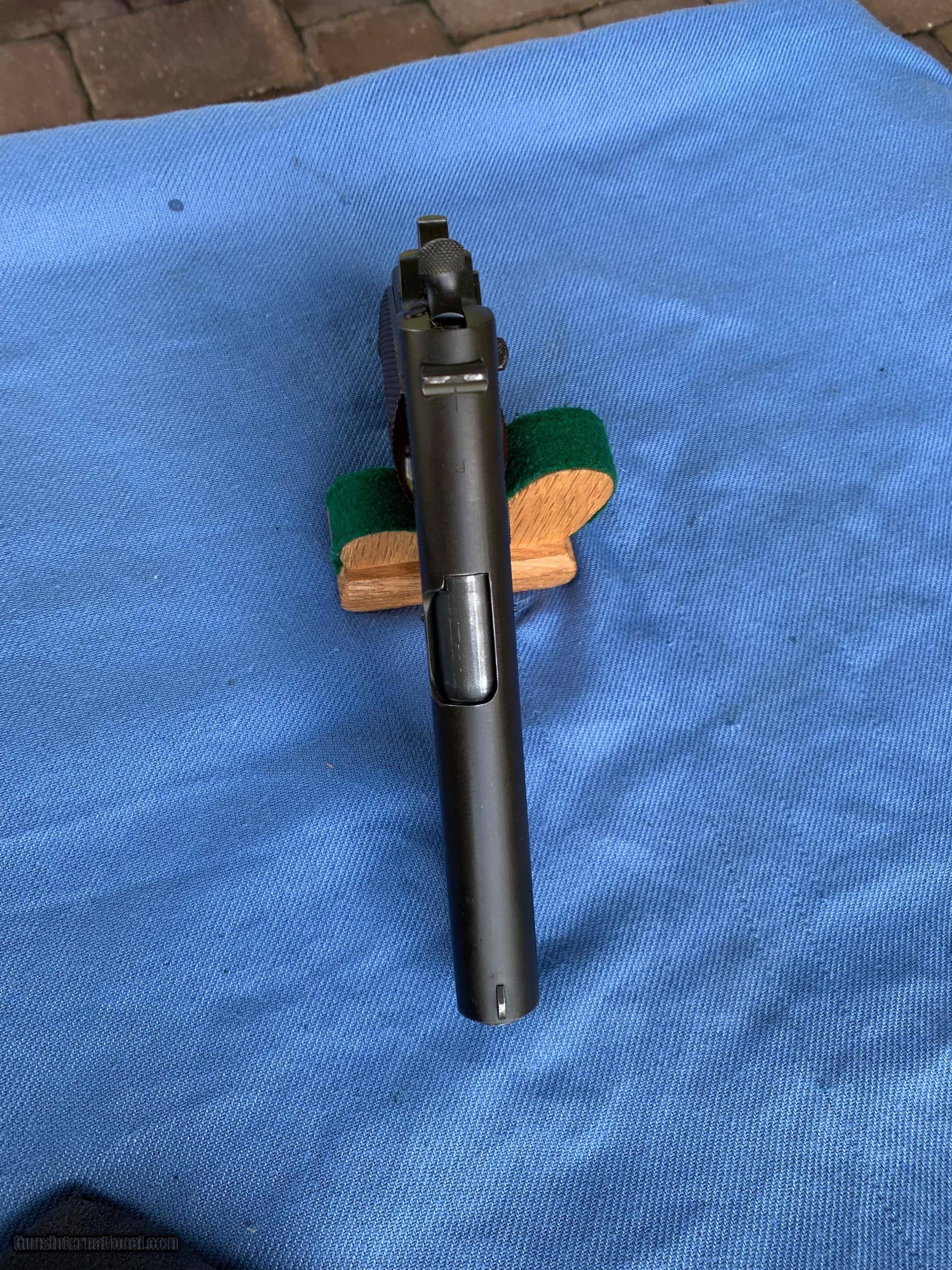 Description: Excellent Example of a WW2 Colt 1911A1 ! Serial number 1184433 . All correct and matching number gun ! 100 percent all original . All correct and matching ! Gun has most all of its original finish still remaining thinning. Gun has handling and holster wear . Sharp markings. Gun has correct Colt magazine . Bore and mechanics are in excellent condition! Excellent working condition. Locks up tight . Original grips are in excellent condition. Overall a handsome WW2 Colt 1911A1 ! Please review my photos and please email me with any questions ? 3 day inspection as allways ! Thank you for looking, Little Jo SOLD Curio/Relic: Yes Handgun Caliber: .45 ACP (.45 Auto) Manufacturer: Colt Model: 1911a1 Serial Number: 1184433 Condition: Excellent |
