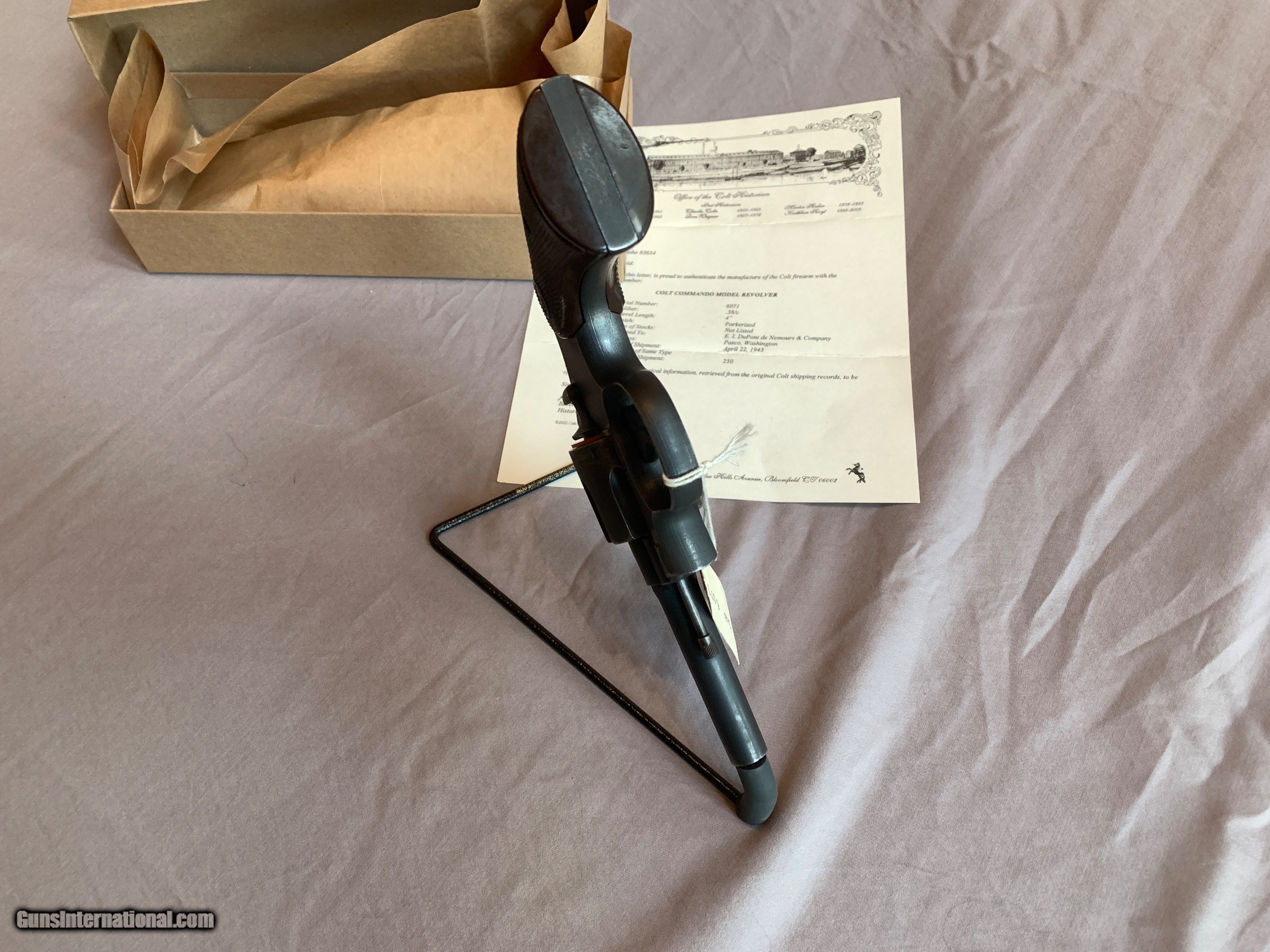 Description: ** 24 HOUR SALE ** A RARE example of the Colt Commando with provenance, a lower 4 digit serial number of 6071 and Flaming Bomb proof. This particular revolver was purchased by DuPont and used at the Hanford Nuclear Facility. DuPont "Designed, constructed and operated a plutonium plant for the Manhattan Project, which would be used in Allied attacks on Hiroshima and Nagasaki in 1945." Please see all photos for normal wear. Entire revolver appears factory including the grips. The original Colt letter is unfolded and supplied to the buyer. Please email or leave a voice mail for contact. This comes with the Unfilded Colt Archive letter, reproduction numbered Colt box and paperwork as pictured ($200 value). Shipping $65 insured to the Continental US. Must be sent to an FFL or directly to you if C&R. I encourage you to research this historical gun, DuPont and the time frame. Many of these guns are seen, VERY few are lettered and have any war time connection. Please contact by email or phone message. Best regards. ://dupont/about/our-history.html SOLD Curio/Relic: Yes Handgun Caliber: .38 Special Manufacturer: Colt Model: Commando Serial Number: 6071 Barrel Length: 4 Condition: Good |