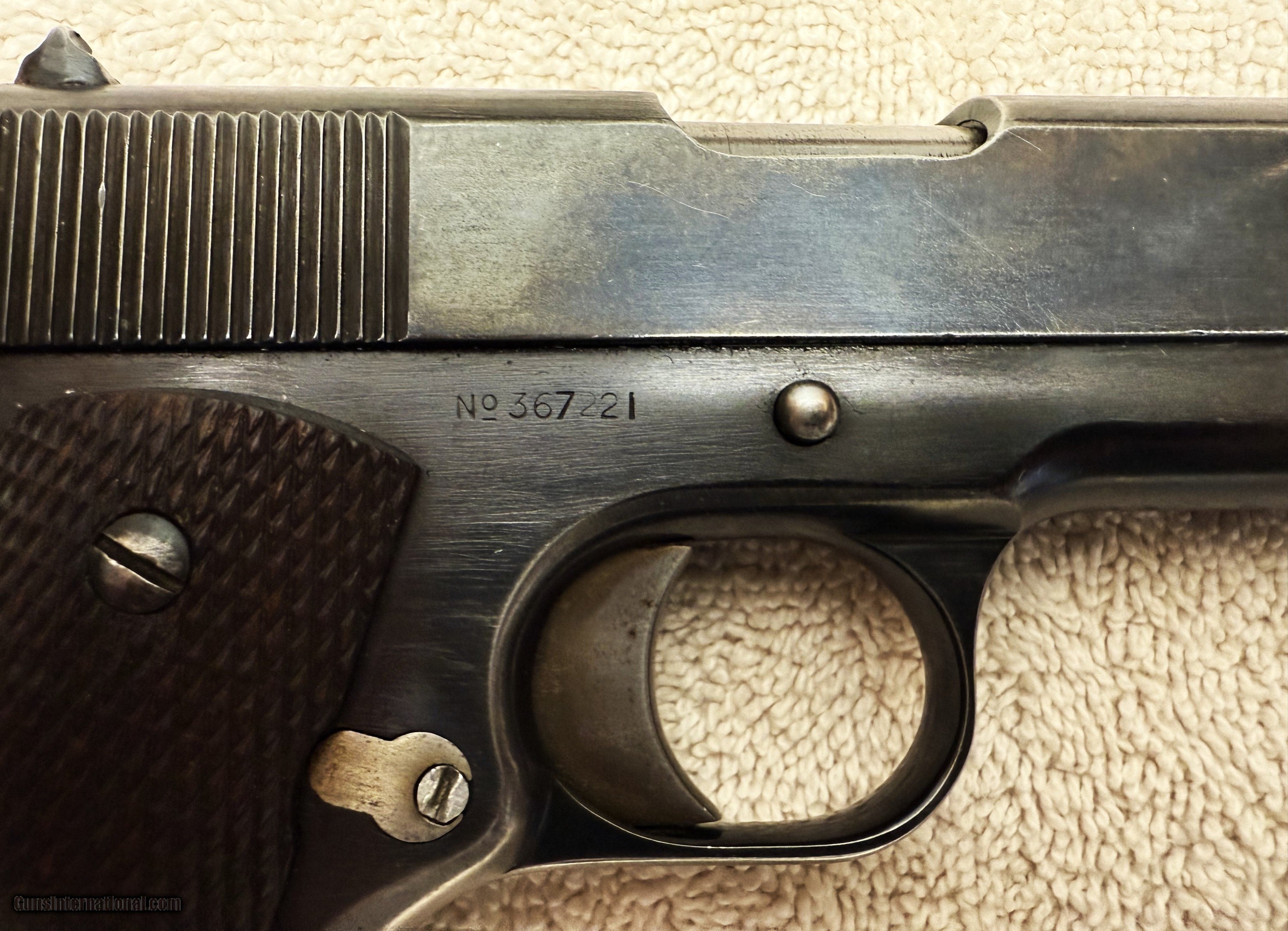 Description: COLT M 1911, 45 ACP, 5" Barrel, VG bore. Remington Rand slide assy, Commercial mag. 85% finish. Frame made in 1918. S/N 36722X. C&R Curio/Relic: Yes Handgun Caliber: .45 ACP (.45 Auto) Price: $1,089.00 Contact Seller |