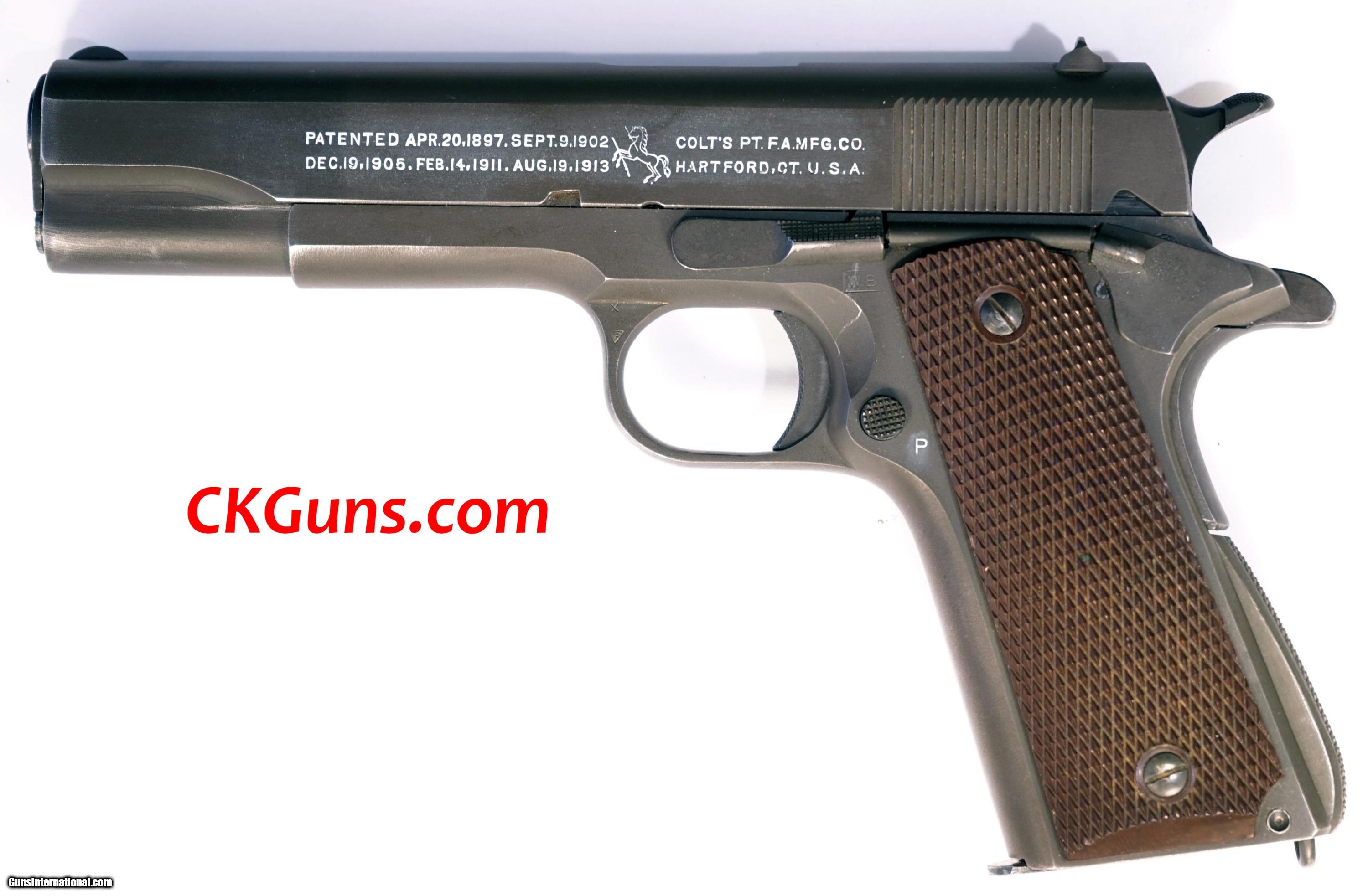 Description: Inv. 5971 Colt U.S. Mdl. 1911 A1, Ser. 7685XX (Mfg. 1942). Just outstanding. All parts match. The slide number behind the firing pin plate and the frame match. All parts are correct for the gun. The finish remaining is easily 97+%. There is some slight sharp edge and muzzle silvering and a couple of small slide and rub marks. Additionally, there is a small holster rub mark on the left front of the frame and some very small surface flakes on the top of the slide. The grips straps have not grayed. The top of the slide and left side of the frame have the proper "P"" proof and inspector's stamp, "WB" in a box. The grips are the correct small ring type and flawless. No chips, splits or flattened points. The grip screws are unmarred. The barrel is stamped "Colt.45 Auto". The bore is as new as the gun. Mirror bright with razor sharp rifling. Just a beautiful example of an America military Icon. Should be a pleasure at the range and the pride of your collection......$3295. To purchase this firearm or if you want to request more information contact us at: Email ckgunsymail Phone 201-512-0002 Cell 201-575-6838 FAX 201-215-4759 We accept most major credit cards. Prices shown are Discounted 3% for Cash or Check. The buyer must be familiar with all the laws governing the purchase and the ownership of firearms in their own city and state. The Yankee Armorer, Inc is not responsible for any failure to comply with or observe these laws. The Yankee Armorer, Inc will only ship after full payment and receipt of all required documents. Shipping: Add $35.00 for handguns, $45.00 for long guns. New Jersey buyers are subject to a 7% sales tax. The Yankee Armorer, Inc offers a 3 day inspection period with full refund upon return of intact firearm and in the original condition. The Yankee Armorer, Inc offers a no interest lay away program - 25% down; 25% in 30 days; 25% in 60 days; and full payment in 90 days. Any violation of this policy is subject to restocking and forfeiture of all payments. Any variation from this policy must be agreed to in advance. Unshipped Cancelled sales are subject to a 20% restocking fee. Be advised that all firearms sold by The Yankee Armorer, Inc. or the Gun Exchange, LLC (SELLER) are sold as collector’s items. They have not been fired or tested for safety and must be examined by a license gunsmith prior to use. By purchasing any item from the (SELLER), you are agreeing to hold the (SELLER) free from any damages or lawsuits of any nature. Any item left for transfer or storage will be charged to $25.00 per month, per item from the day of its receipt. Any variation from this policy must be agreed to in advance. Store hours 10:00 am to 5:00 pm Tuesday -Saturday. It's always best to call for appointment. Store 201-512-0002, cell 201-575-6838. SOLD Curio/Relic: Yes Manufacturer: Colt Model: 1911-A1 Serial Number: 7685XX Caliber Info: .45 ACP |