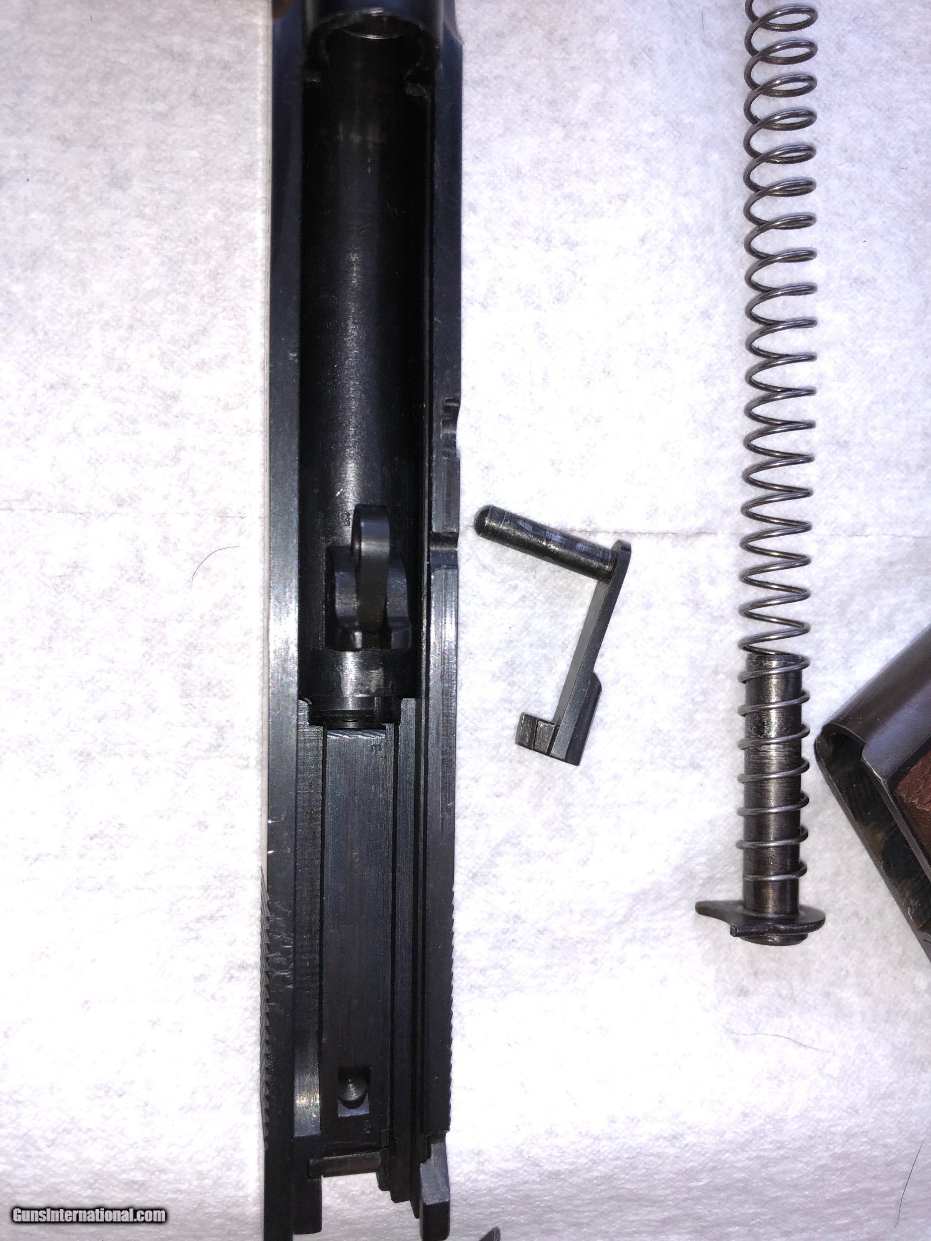 Description: DESCRIPTION: Early Production Colt U.S. Army Model 1911 Automatic Pistol Colt M1911 Pistol that was part of a lot of 500 shipped to the Benica Arsenal on January 23, 1913. The pistol has the original Colt polished blue finish and checkered walnut stocks. The pistol features the early pattern, round top, rear sight, short hammer, and Type 3, two-tone, magazine with lanyard loop. The blued barrel has a brush blue finish on the chamber and is marked with a gothic "H" inspection mark stamped vertically on the top of the chamber lip. The pistol frame has the serial number "No 21589" located on the right side behind the slide stop hole. "UNITED STATES PROPERTY" is marked in roman letters (serifs) on the left side of the frame in front of the trigger guard. The "WGP" monogram of Ordnance Inspector MAJ. Walter G. Penfield is stamped just above the magazine release. The right side of the slide is marked: "MODEL OF 1911.U.S.ARMY" in gothic letters ahead of the ejection port. The opposite side of the slide has the Colt 1897-1911 patent dates in a two-line block followed by the two-line Hartford address. The Rampant Colt motif is stamped behind the serrations on the left side of the slide. A gothic "H" provisional inspection mark is stamped on the back of the slide above the firing pin stop. A "H" and "6" are stamped on the top of the receiver in front of the disconnector hole. CONDITION: Excellent. The pistol retains nearly 95% of the original Colt polished blue finish. The finish on the grip strap and main spring housing is thinning slightly.. The finish on the right side of the slide below the ejection port is also somewhat thin. The balance of the frame and slide retain more than 95% of the blue finish. The barrel has more than 98% of the brush blue finish on the chamber. The bore has some dark areas but is generally excellent. All of the markings on the slide and frame are crisp and clear. The walnut grips are in excellent plus condition and exhibit only very minor handling wear. The magazine is in very fine condition and retains approximately 85% of the two-tone blue and case-hardened finish. This is an outstanding example of a hard-to-find early production M1911 pistol in excellent condition. I purchased this Colt from a known Collector in 2014 for $12,000. SOLD Curio/Relic: Yes Manufacturer: Colt Model: U.S. Army 1911 Serial Number: 21589 Caliber Info: 45 Condition: Excellent Metal Condition: 95% Blue Bore Condition: Excellent Action: Semi-automatic Finish: Brushed Blue Manufacture Date: 1913 |