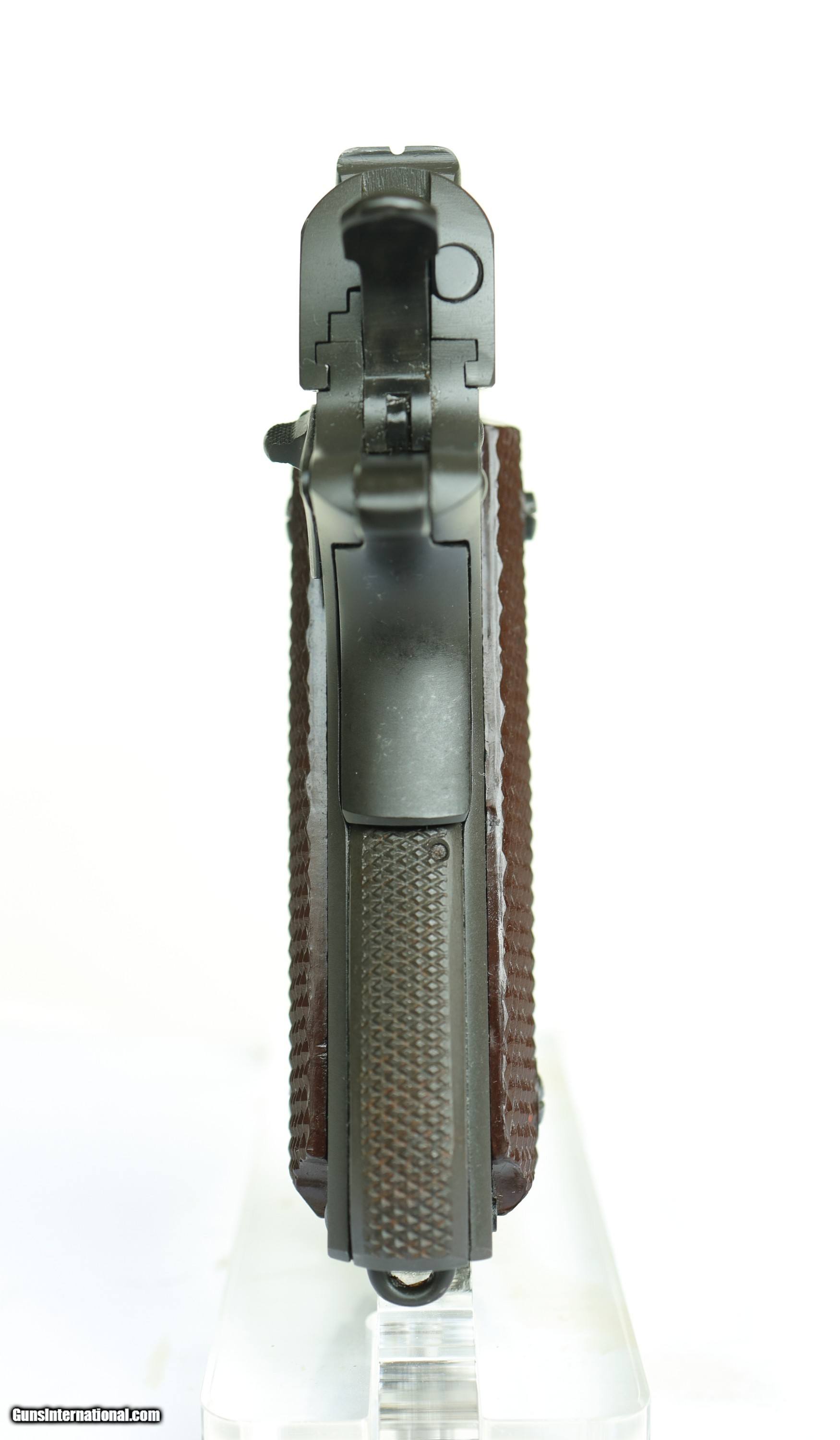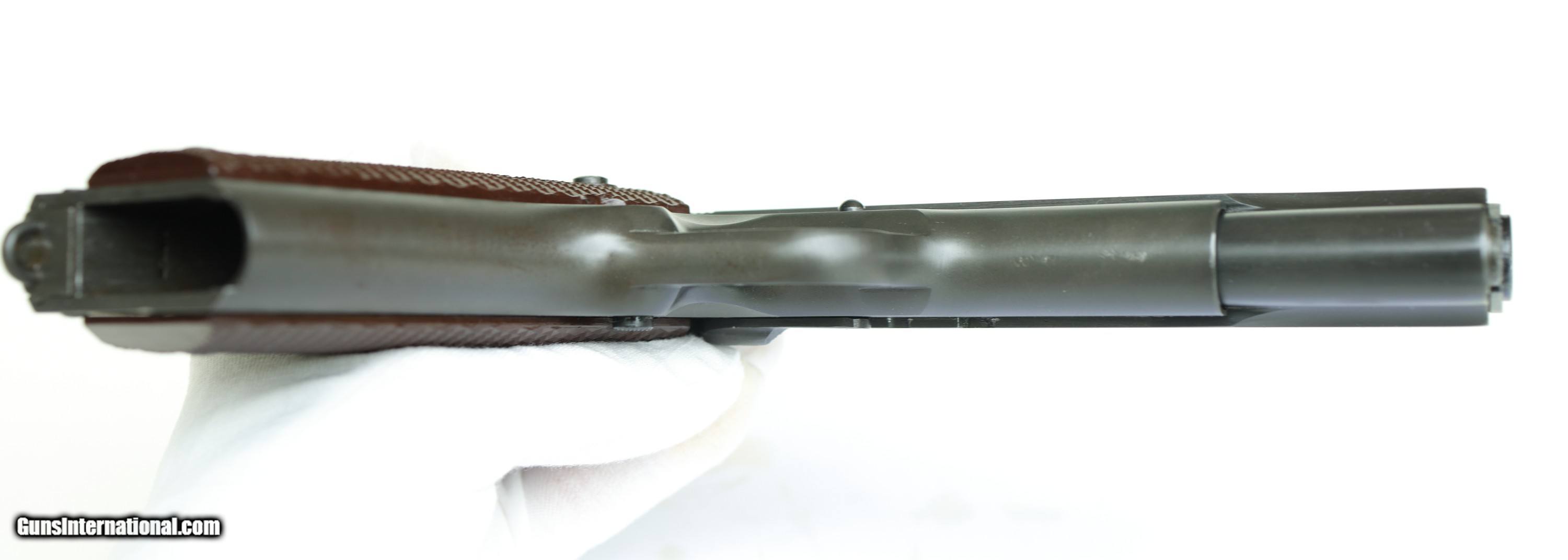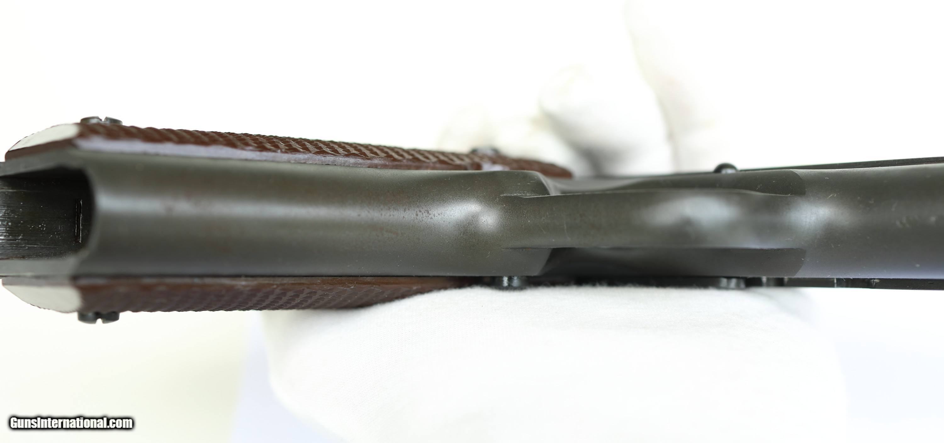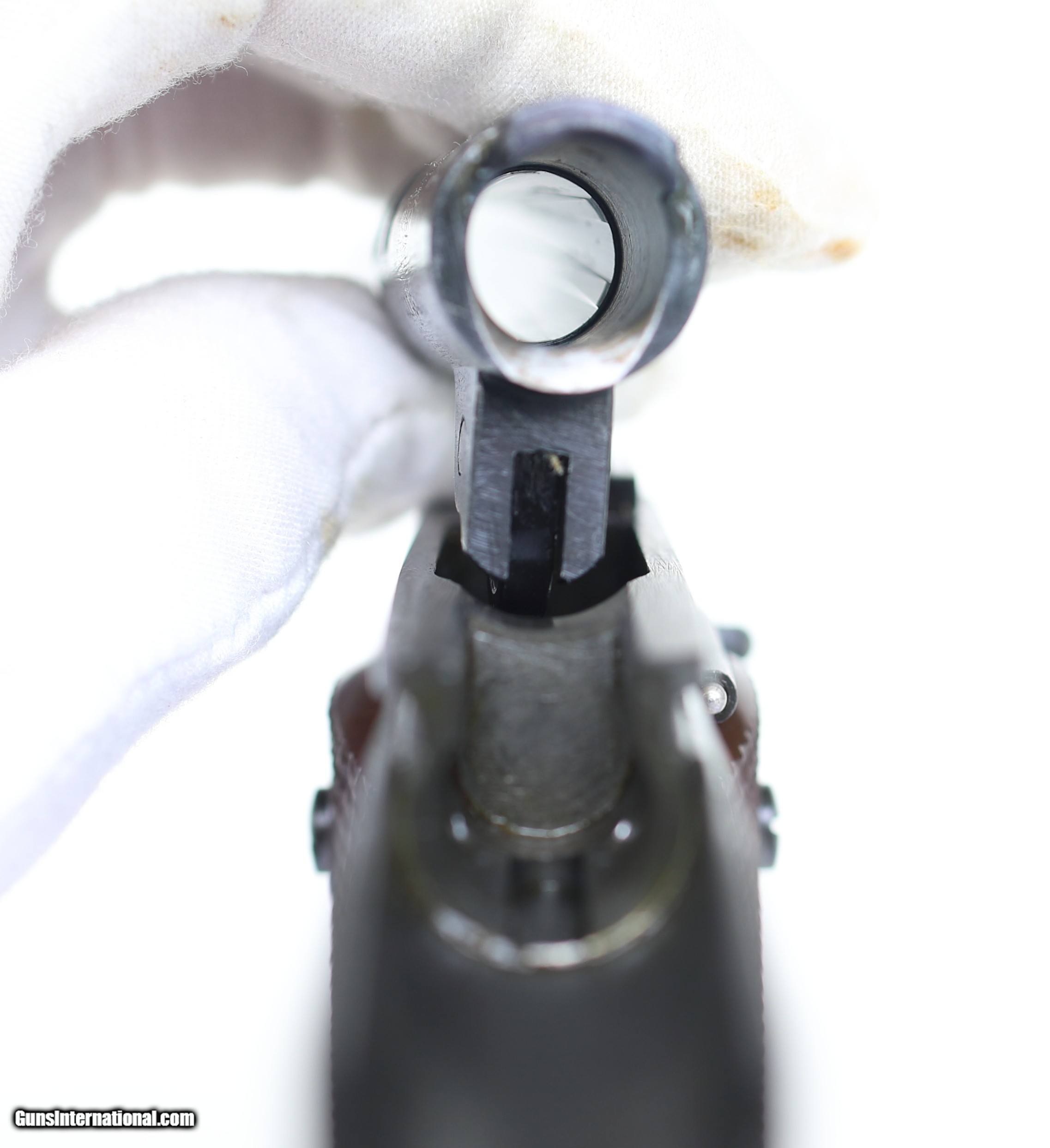 Description: For sale is an excellent Colt M1911A1 made in early 1943. Serial number 859333. Slide has matching serial number with the frame. There is a ton of original finish on this pistol, call it 99%. Early small GHD cartouche and ord wheel are clearly stamped through the finish. There is very little, if any, edge wear. The only demerit for this one is some freckling on the front grip strap and trigger guard. Barrel is marked Colt 45 Auto on the left side above the lug and S with serifs on the bottom in front of the lug. Barrel is excellent retaining almost all of the original factory blued finish. Wear marks on the breech face and barrel breech match marks inside the slide and frame indicating this is the original barrel. The serrifed S barrel mark is a Colt commercial marking and is correct for pistols in this serial number range (see Clawson page 200). Slide stop is early 1911 type which is also correct for this serial number range. Bore is super bright and clean. Feedramp is in the white. Grips are excellent late Coltwood type with wide reinforcing rings and reinforcing ribs with mold numbers. Grip screw bushings are in the white which is another indicator that this gun has never been refinished. Comes with a very nice S/CS blued Colt magazine. This gun is super clean and would be an excellent addition to any collection. Price is $4250 plus $75 shipping and insurance. Offered with three day inspection (from date of receipt) non-firing return policy. Buyer pays return shipping. Firing this pistol or damage of any kind, including but not limited to scratches and take down marks, voids return. By on or buying this item, you accept and acknowledge the terms of sale posted in the listing. Please know and respect the law for your state and locality. Credit card purchases add 4%. Kansas residents add 9.95% sales tax. Please call or email for a link to a bunch more pictures. Questions welcomed. Thanks for looking. Terms of Sale II. State and Local Laws It is the responsibility of the buyer to know and respect the state and local laws where you reside. Firearms laws for each state can be found here: ://atf.gov/firearms/state-laws-and-published-ordinances-firearms-34th-edition III. Waiver of Liability By purchasing this item, buyer/ acknowledges and agrees to this waiver of liability and hold harmless clause, and accepts as a term of sale. 1. RELEASE, WAIVE, DISCHARGE AND COVENANT NOT TO SUE, Kansas Military Firearms LLC, Olathe, KS, its principal, or employees (hereinafter referred to as RELEASEES) from any and all liability, claims, demands, actions and causes of action whatsoever arising out of or related to any loss, damage, or injury, including death, that may be sustained by Buyer/, or any of the property belonging to buyer/, WHETHER CAUSED BY THE NEGLIGENCE OF THE RELEASEES, or otherwise, while participating in such use. 2. Buyer/ acknowledges havingon and purchased a used firearm. Buyer/ is fully aware of the potential risks involved and hazards connected with any kind of use of such firearm, and buyer/ agrees to have said firearm examined by a competent gunsmith before attempting to fire or in any way use said firearm. Buyer/ VOLUNTARILY ASSUMES FULL RESPONSIBILITY FOR ANY RISKS OF LOSS, PROPERTY DAMAGE OR PERSONAL INJURY, INCLUDING DEATH, which may be sustained by buyer/, or any loss or damage of property owned by buyer/, as a result of any kind of use of this firearm, WHETHER CAUSED BY THE NEGLIGENCE OF RELEASEES OR OTHERWISE. 3. Buyer/ hereby AGREES TO INDEMNIFY AND HOLD HARMLESS the RELEASEES from any loss, liability, damage or costs, including court costs and attorney fees, that may incur due to use of said firearm by buyer/, WHETHER CAUSED BY NEGLIGENCE OF RELEASEES or otherwise. 4. It is the express intent of buyer/ that this Waiver of Liability and Hold Harmless Agreement shall bind the members of buyer/'s family and spouse, if buyer/ is alive, and buyer/'s heirs, assigns and personal representative, if buyer/ is deceased, and shall be deemed as a RELEASE, WAIVER, DISCHARGE AND COVENANT NOT TO USE SUE the above-named RELEASEES. I hereby further agree that this Waiver of Liability and Hold Harmless Agreement shall be construed in accordance with the laws of the State of Kansas and specifically, Johnson County. IV. Return Policy This item is sold with a three day non-firing return. Three day period begins with receipt at /buyer's designated delivery address. Disassembly is allowed. Buyer pays return shipping. Discharge of this firearm i.e. shooting, and/or damage of any kind including but not limited to scratches, take down marks, dents, etc. caused by but not limited to buyer, buyer's friends, relatives, or associates, and not readily identifiable in listing photos voids return, as does substitution or removal of any part whatsoever. V. Shipping and Insurance Shipping cost does not include insurance unless specifically stated. We strongly advise insuring your purchase for a minimum of the purchase price. In the case of a firearm lost or damaged in shipment, buyer/ is responsible for retaining all packaging, obtaining pictures of damaged item and packaging, and for notification of loss or damage to Kansas Military Firearms LLC within 48 hours of receipt or intended delivery time at buyer/'s designated delivery address. Filing and administering any and all claims with the delivering carrier is the responsibility of buyer/. Kansas Military Firearms LLC will promptly assist buyer/ with said claim to the very best of our ability. SOLD Curio/Relic: Yes Handgun Caliber: .45 ACP (.45 Auto) Manufacturer: Colt Model: 1911A! Serial Number: 859333 Barrel Length: 5 Condition: Excellent Metal Condition: Excellent Bore Condition: Excellent Manufacture Date: 1943 |
