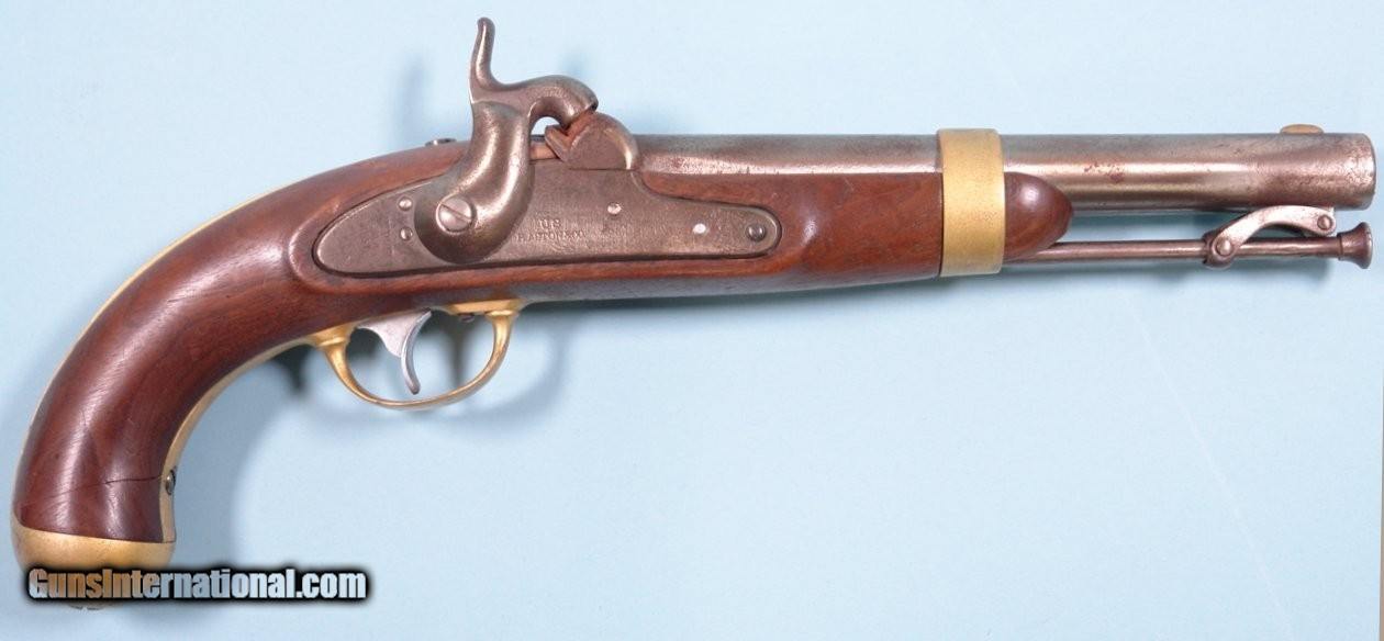 H. ASTON U.S. MODEL 1842 PERCUSSION .54 CAL. SINGLE SHOT CAVALRY PISTOL DATED 1851.