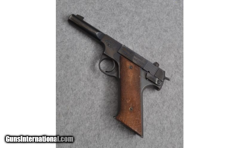 Description: SOLD Manufacturer: 1948 Caliber Info: .22 LR Metal Condition: Average with handling marks. Shows bluing wear in places, but no rust or pitting. Wood Condition: Scuffed and worn in several places. Bore Condition: Good rifling, bright and shiney. Barrels: 4.5 Inches. Weight: 2 Lbs 2 Oz Sights: Front: blade, Rear: adjustable square notch Extras: Includes 1 magazine. Item Location: Lone Tree, CO |